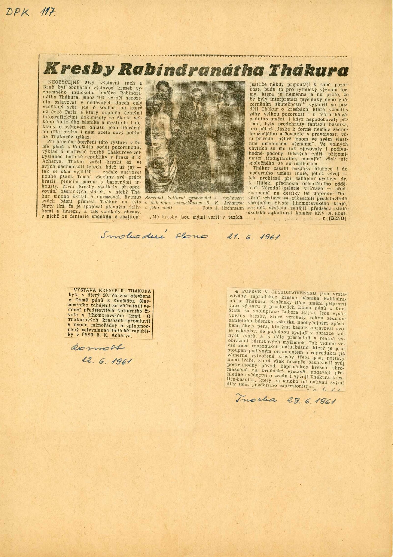 strojopis textu pro rozhlas, seznam vystavených děl, fotografie z vernisáže, provozní korespondence, pozvánka na literárně–hudební večer