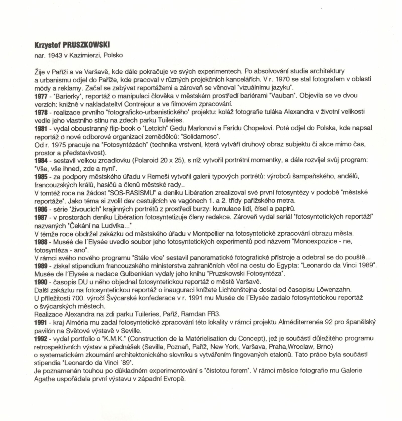 Krzysztof Pruszkowski. Fotografie: Dům umění města Brna 7. 9. – 10. 10. 1993. - Brno: DUmB, - 4 s. Životní data, výstavy, fotografie ve veřejných sbírkách DU 950