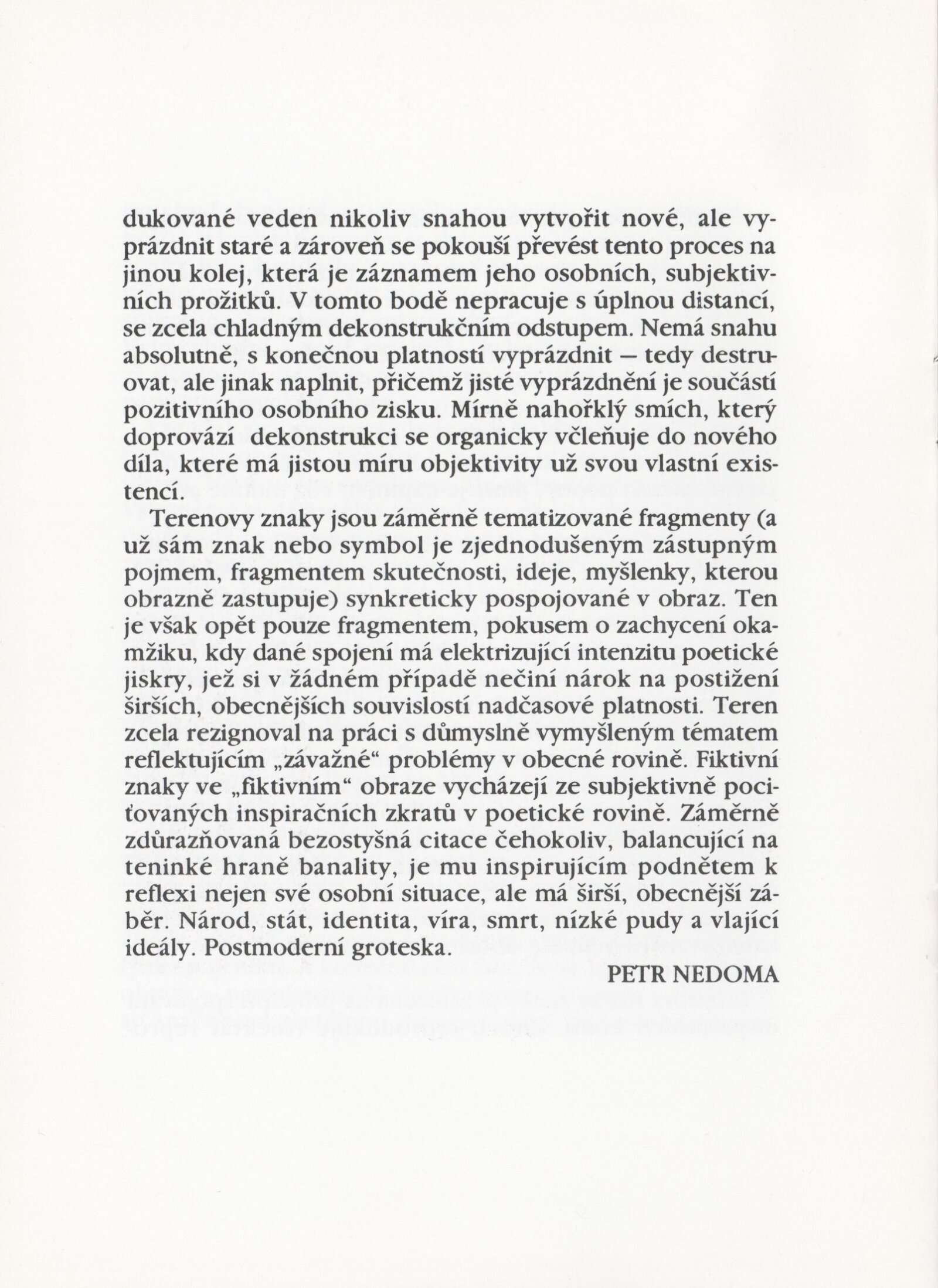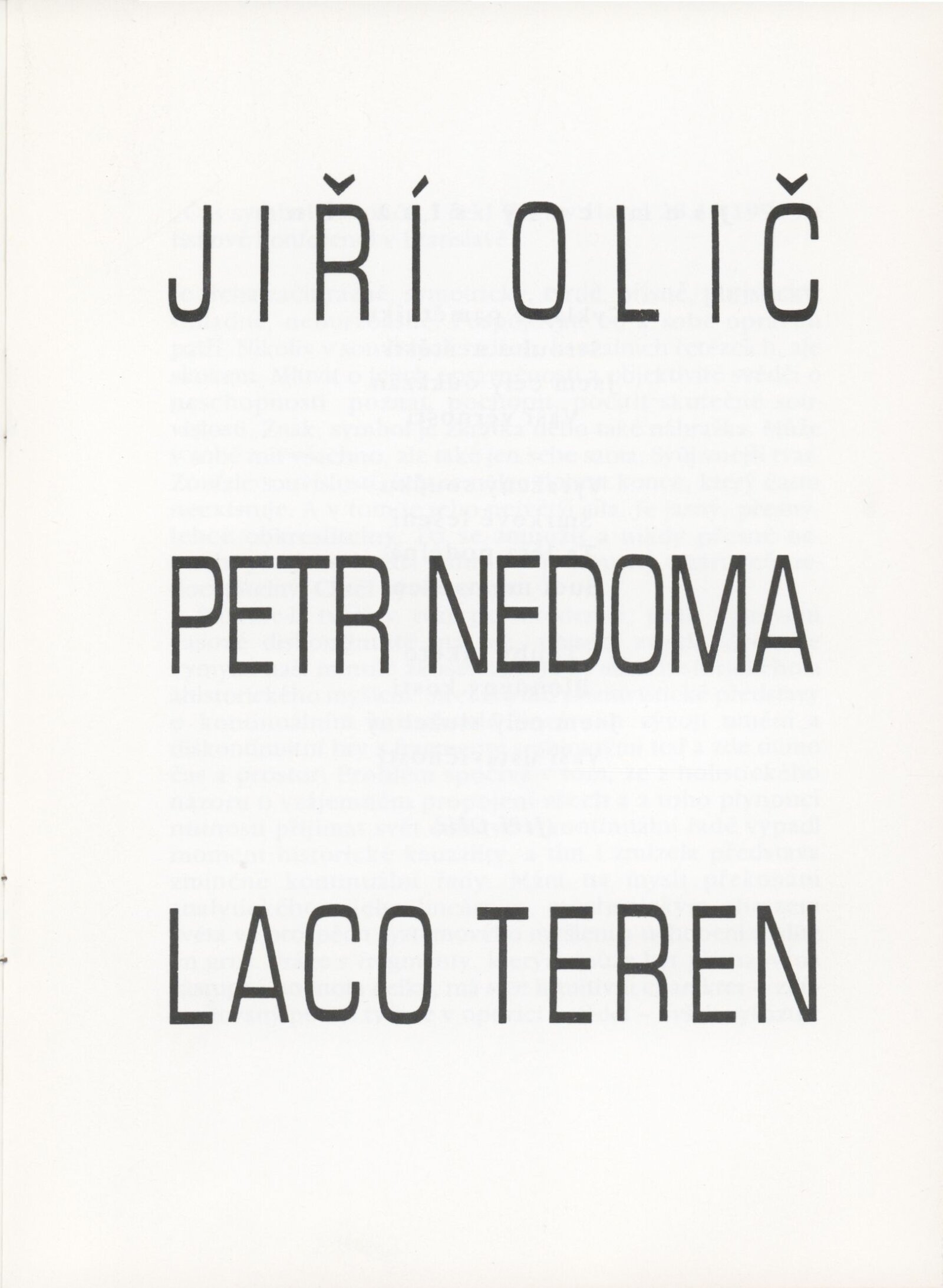 Laco Teren: Dům umění města Brna, Galerie Jaroslava Krále, 29. 11. 1991 – 5. 1. 1992 / K výstavě použit tisk: Jiří Olič. Petr Nedoma. Laco Teren. – B. m. n. r. – [10] s., obr., obsahuje báseň Jiřího Oliče, text Petra Nedomy, DU 914