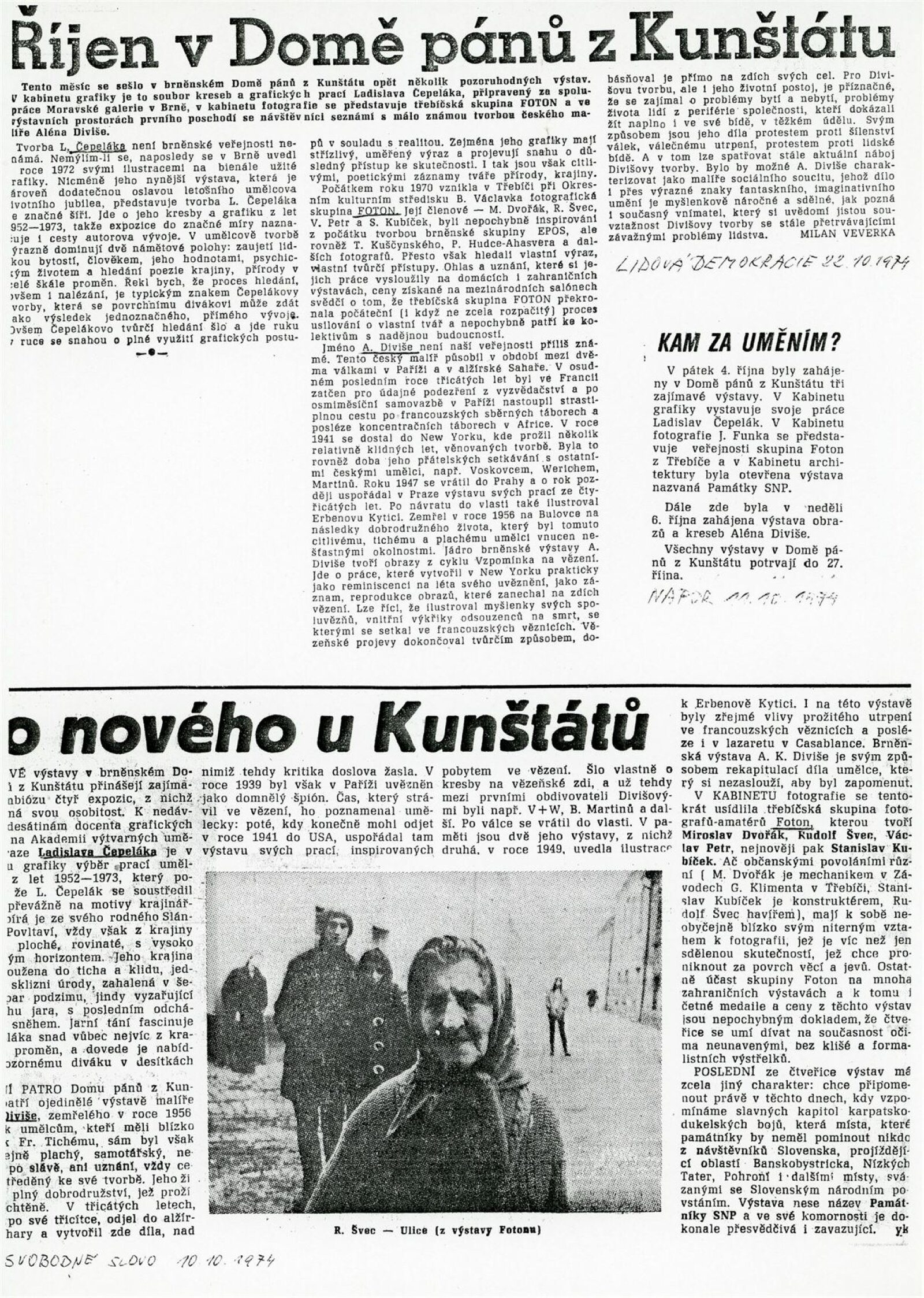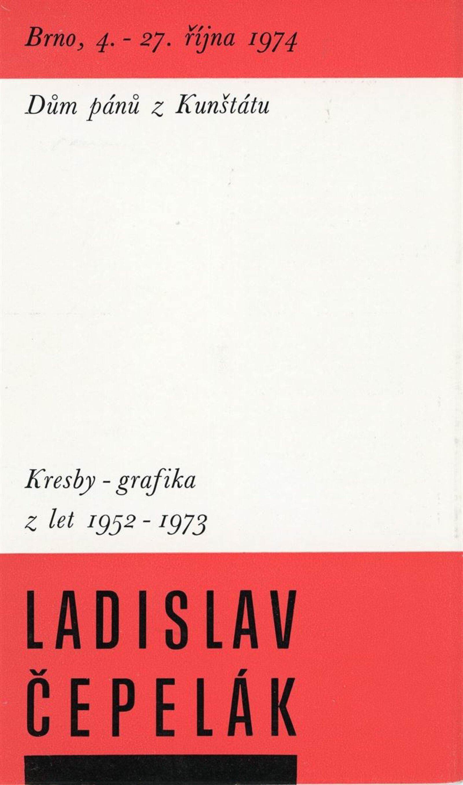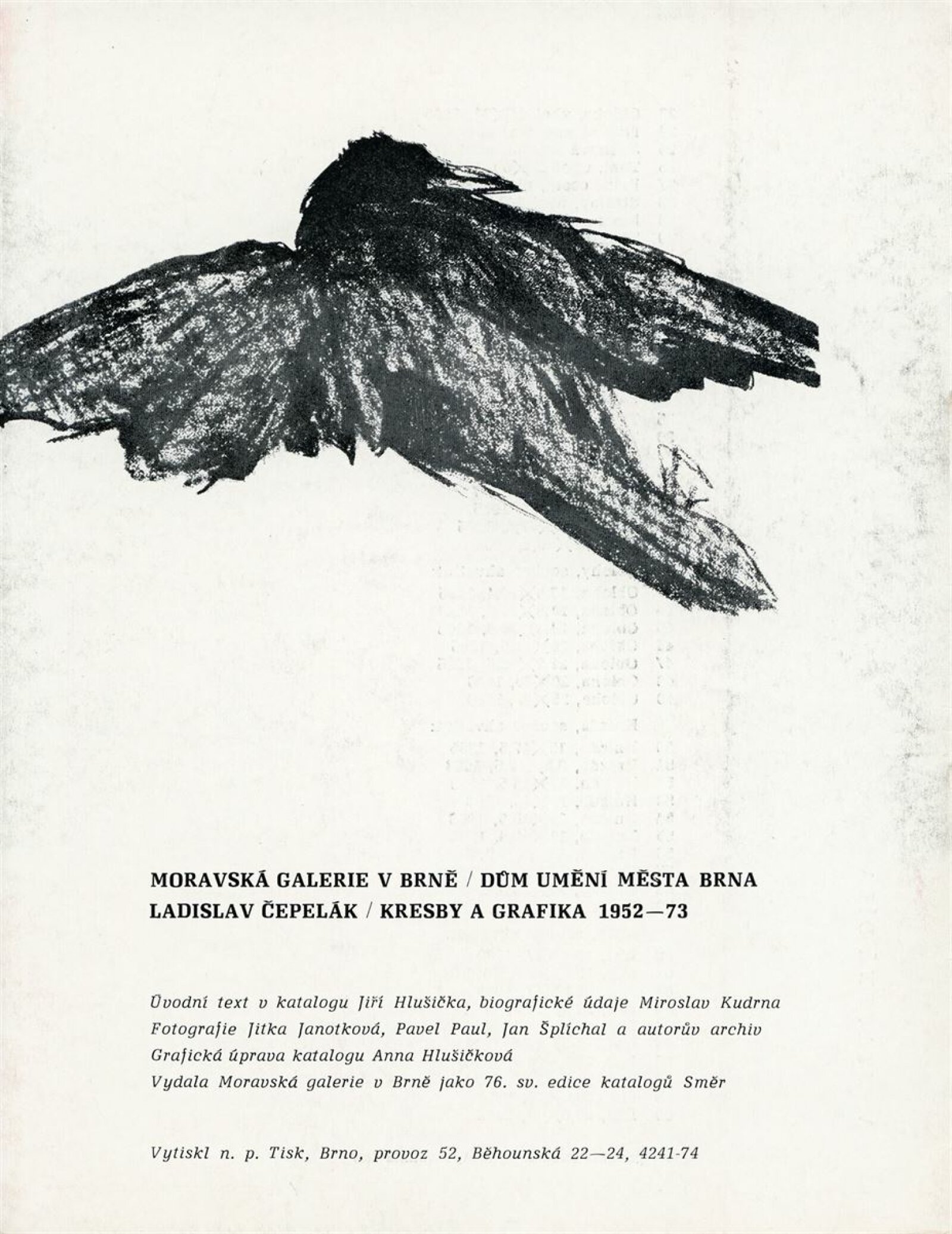 Ladislav Čepelák. Kresby, grafika z let 1952–1973: Dům umění / Dům pánů z Kunštátu, 144. výstava Kabinetu grafiky, 4. 10. – 27. 10. 1974 / Text: Jiří Hlušička, biografické údaje Miroslav Kundrna. – Brno: Moravská galerie, 1974. – 12 s., obr., DPK 574. – MMB