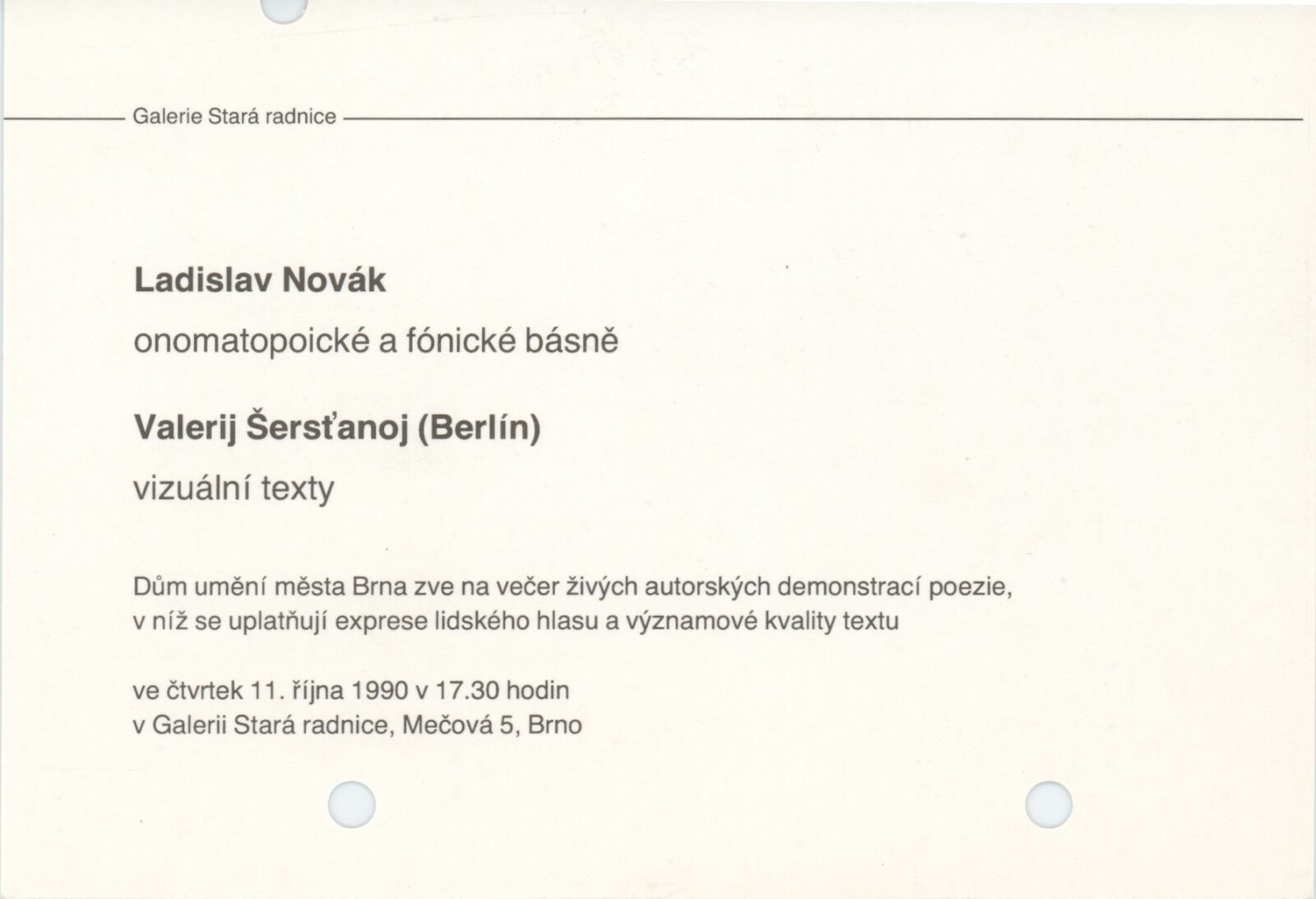 pozvánka, pozvánka na autorský večer s Valerijem Šersťanojem, katalog recenze v tisku (viz GSR 79)
