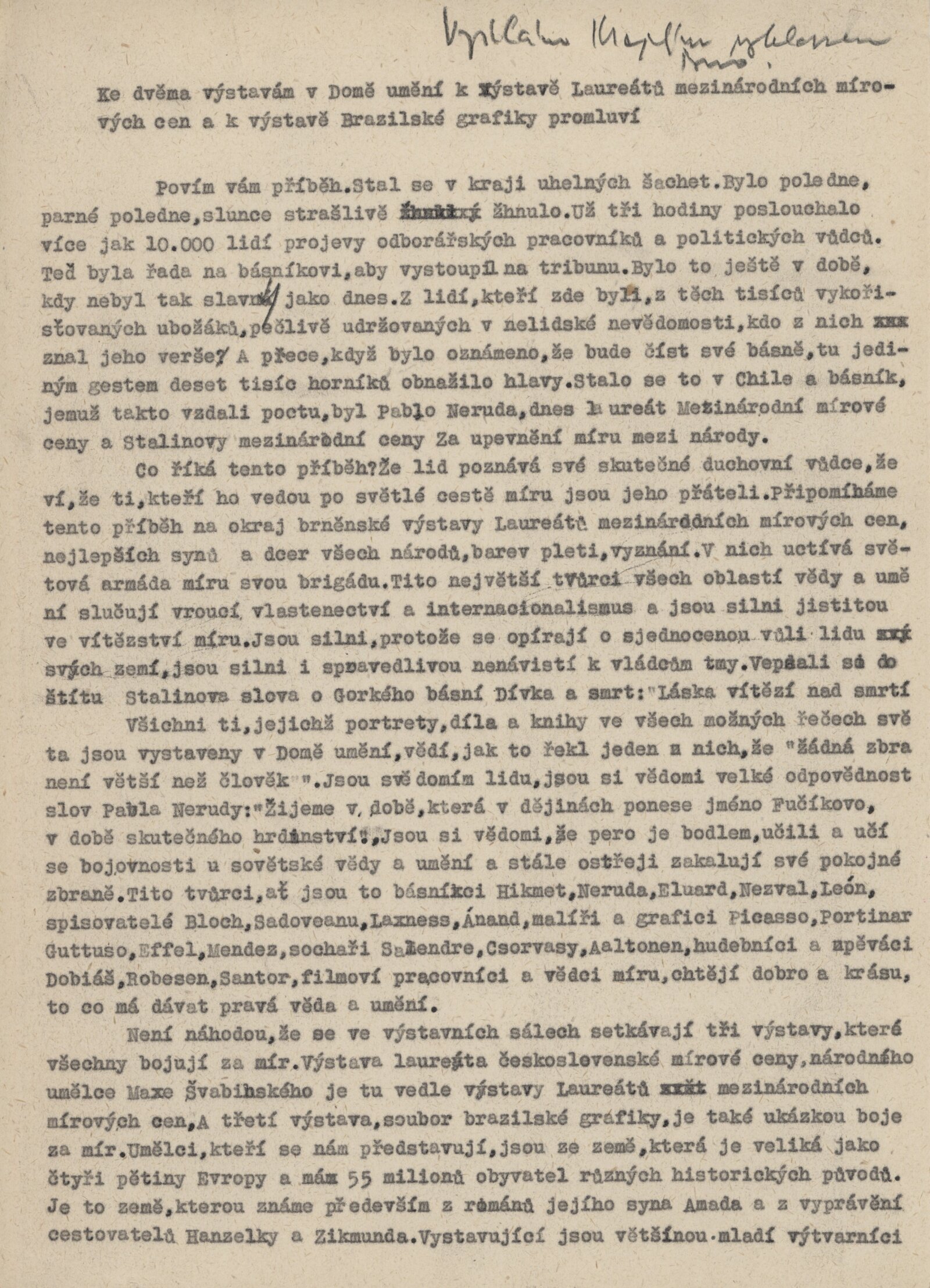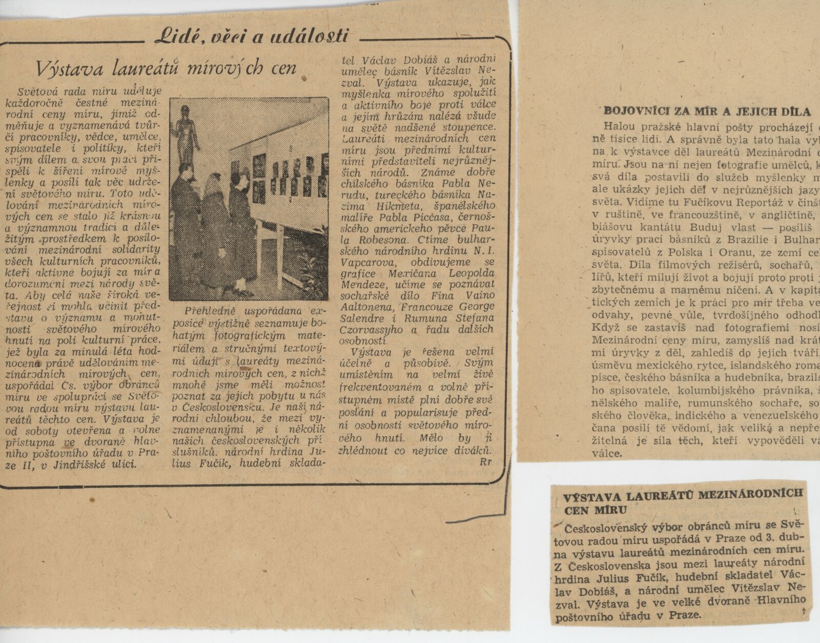 Laureáti mezinárodních cen míru: Dům umění, 5. 9. – 3. 10. 1954 / Převzatý katalog. Laureáti mezinárodních cen míru: dvorana Hlavní pošty v Praze, 1953 / Praha: n., 1953. – 8 s., DU 200