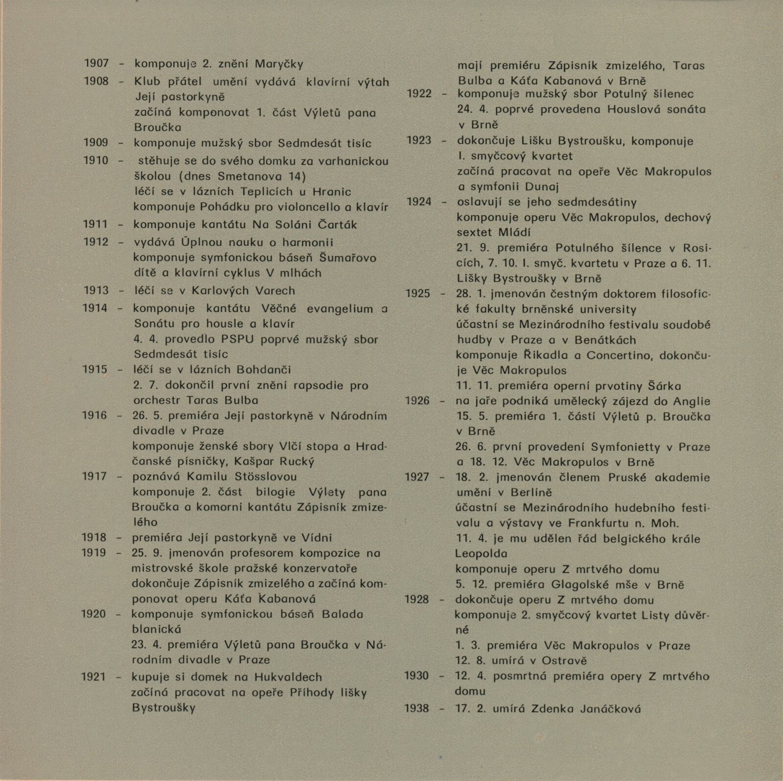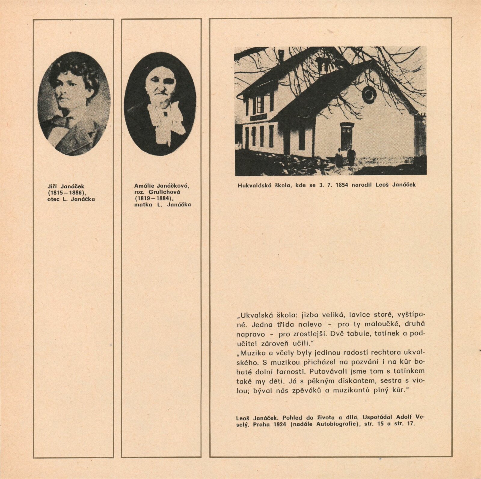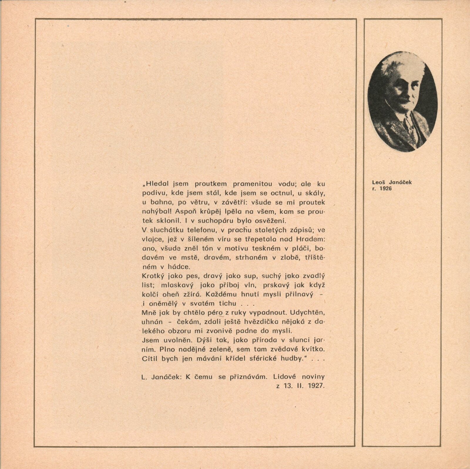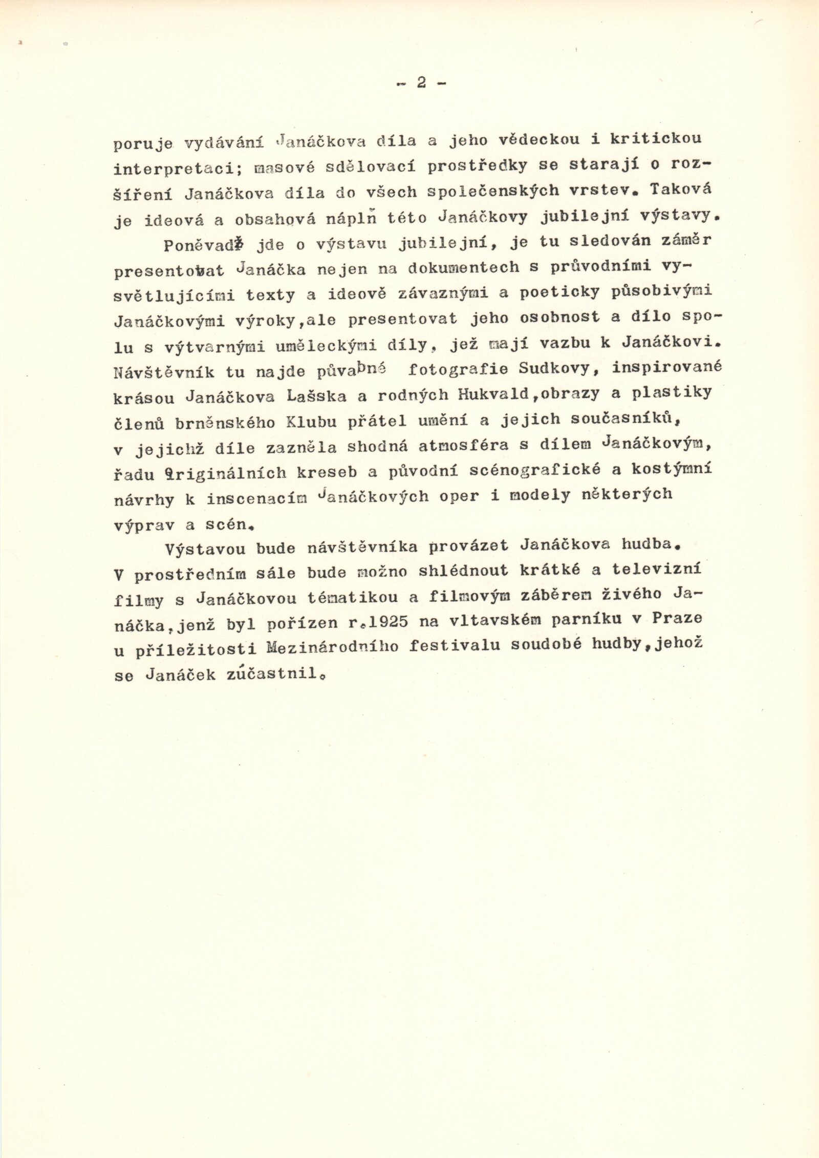 pozvánky, katalog, plakát, program festivalu Leoše Janáčka (1978), strojopis textu k výstavě, provozní korespondence, zprávy tiskových konferencí, žádost o povolení výstavy, recenze v tisku