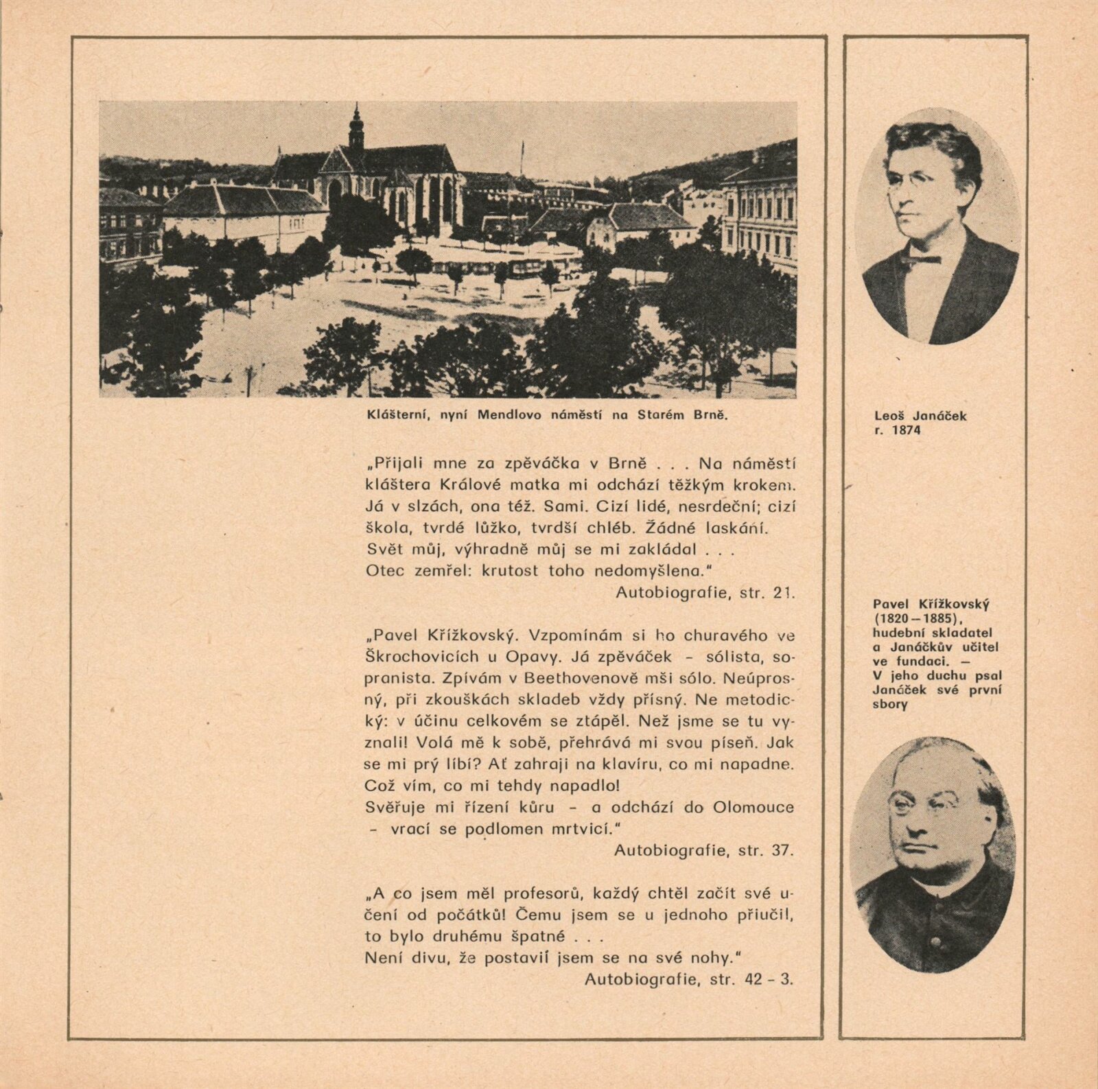 Leoš Janáček. Osobnost a dílo. Katalog stejnojmenné výstavy uspořádané k 50. výročí úmrtí a 125. výročí narození: Dům umění města Brna 29. 9. – 30. 11. 1978 / Text Theodora Straková. - Brno: Moravské muzeum - 16 s., obr. DU 681; MZK