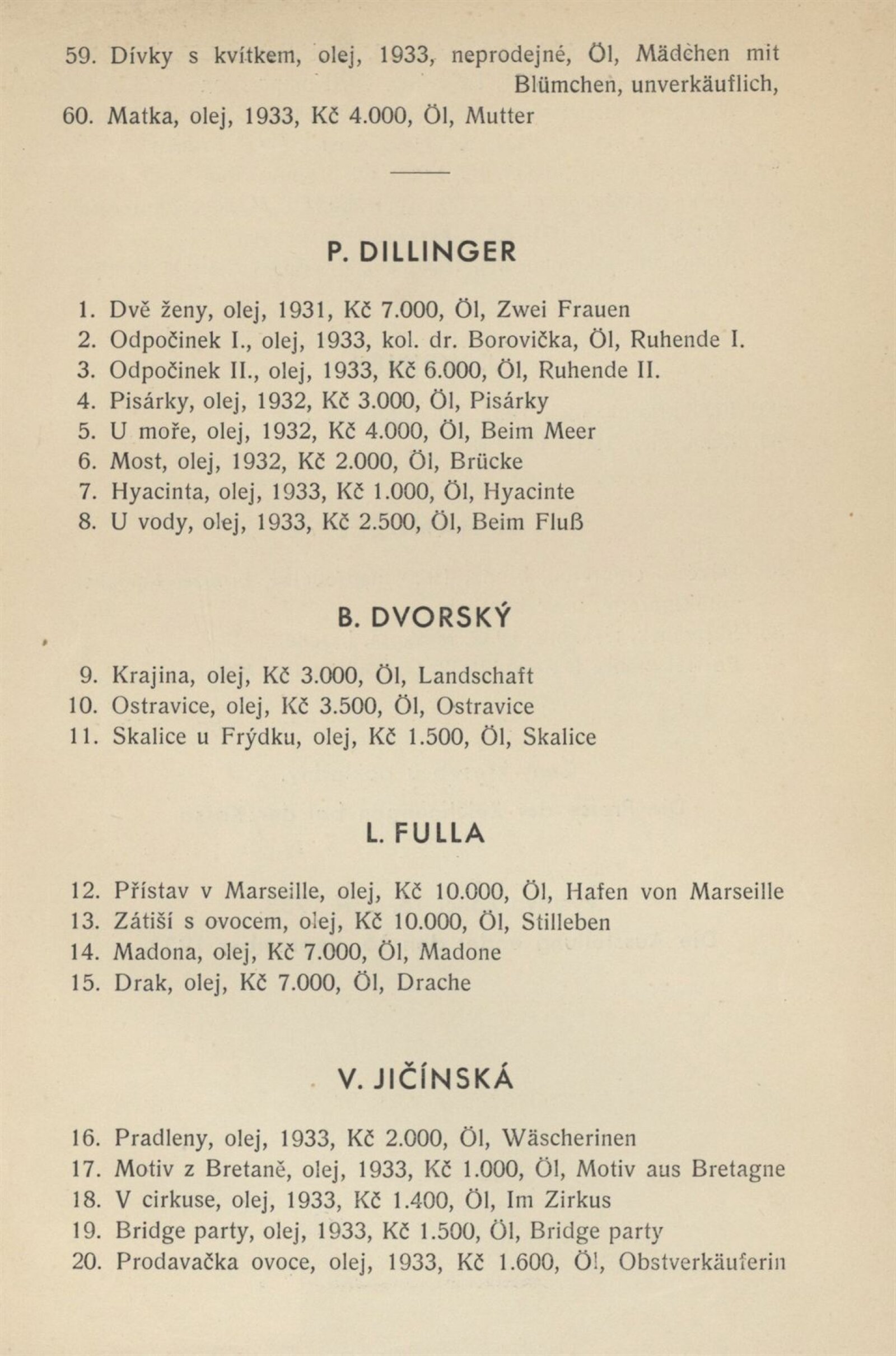 P. Dillinger, B. Dvorský, L. Fulla, A. Handzel, V. Jičínská, F. Kaláb, J. Král, J. Krejčí, F. Malý, A. Procházková, Linka Procházková, F. Reichentál, A. Rosová-Vokálková, J. Sládek, F. Srp, F. Süsser, J. Weiner