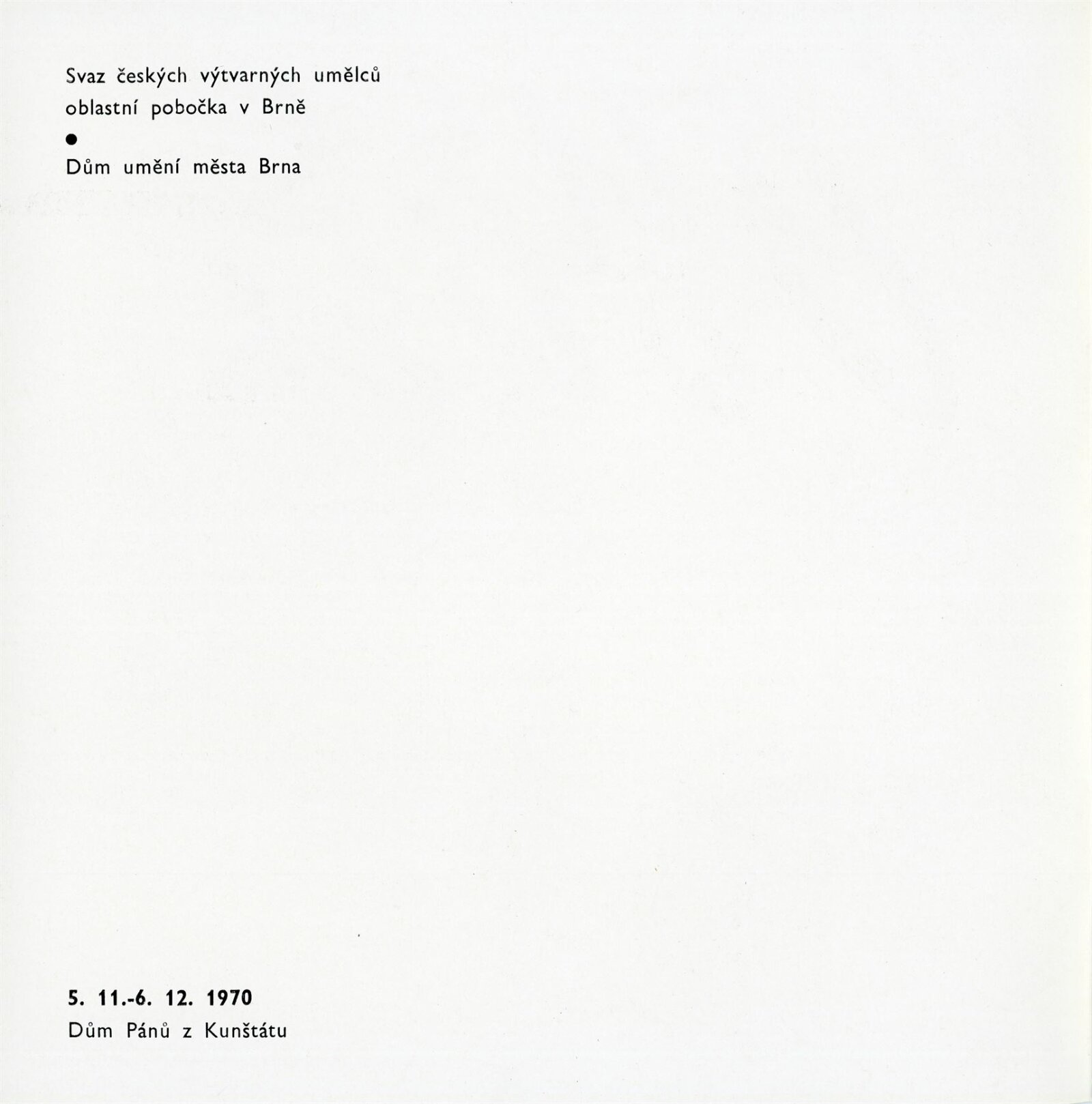 pozvánka, katalog, strojopis, fotografie instalace a vernisáže, negativy, plakát, úvodní slovo, provozní korespondence, recenze v tisku