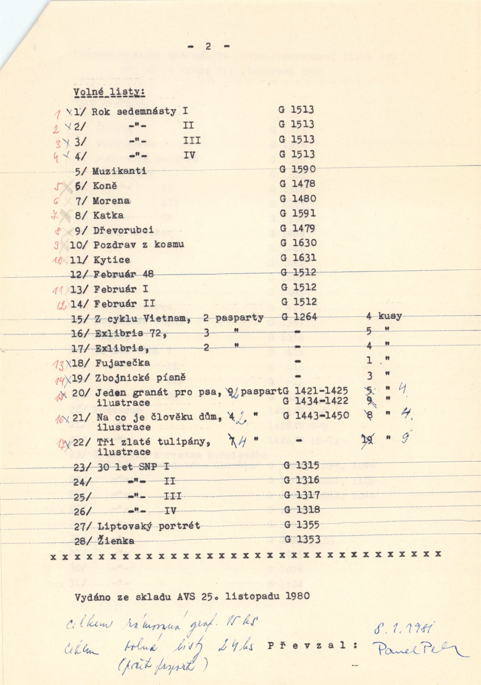 pozvánka + strojopis, katalog, seznamy děl, smlouva o uspořádání výstavy Armádního výtvarného studia, výstavy AVS na rok 1978, provozní korespondence, recenze v tisku