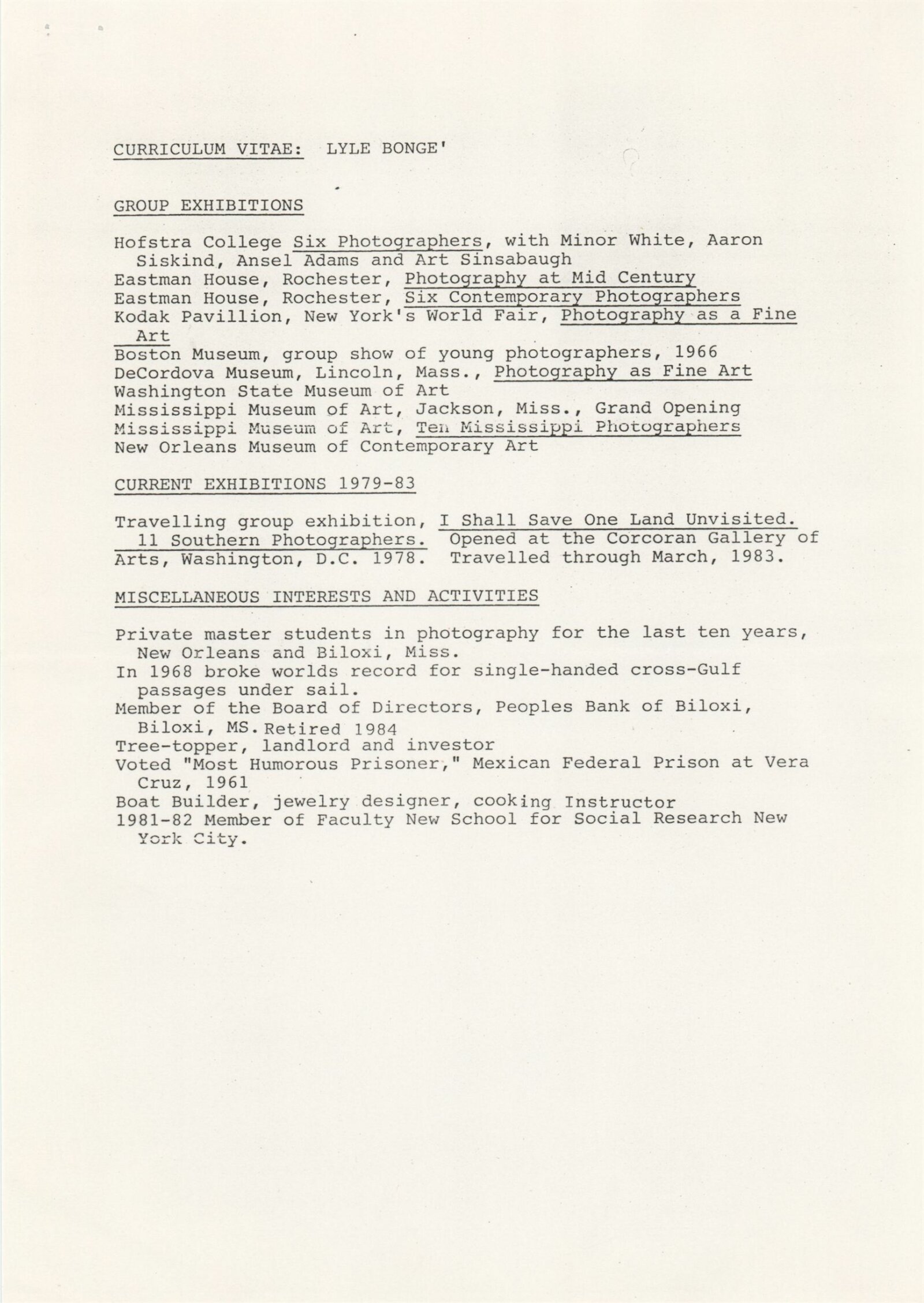 Lyle Bonge (USA) – fotografie