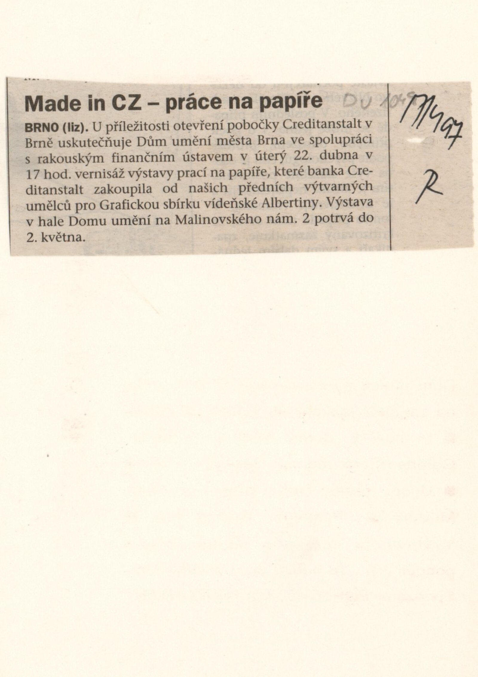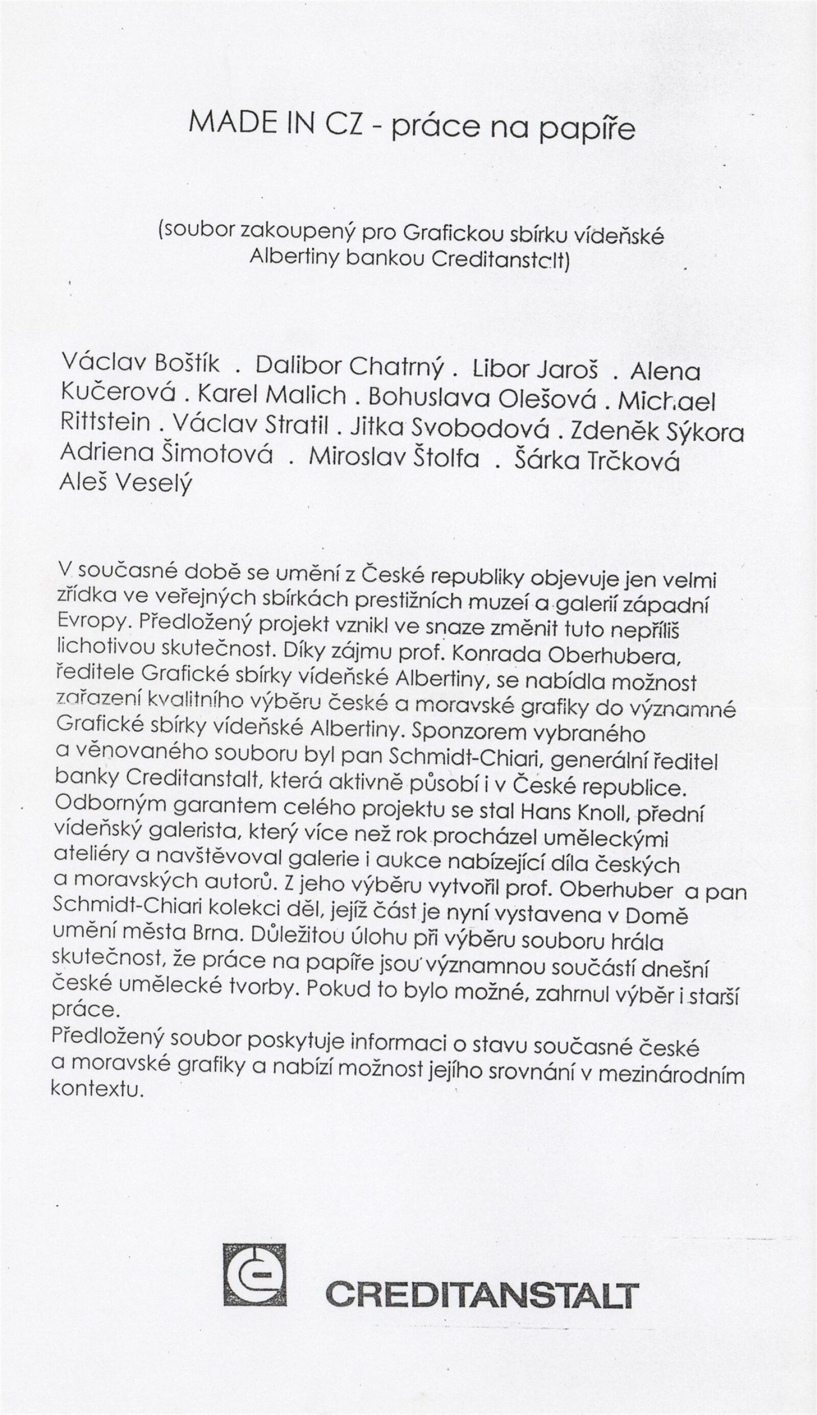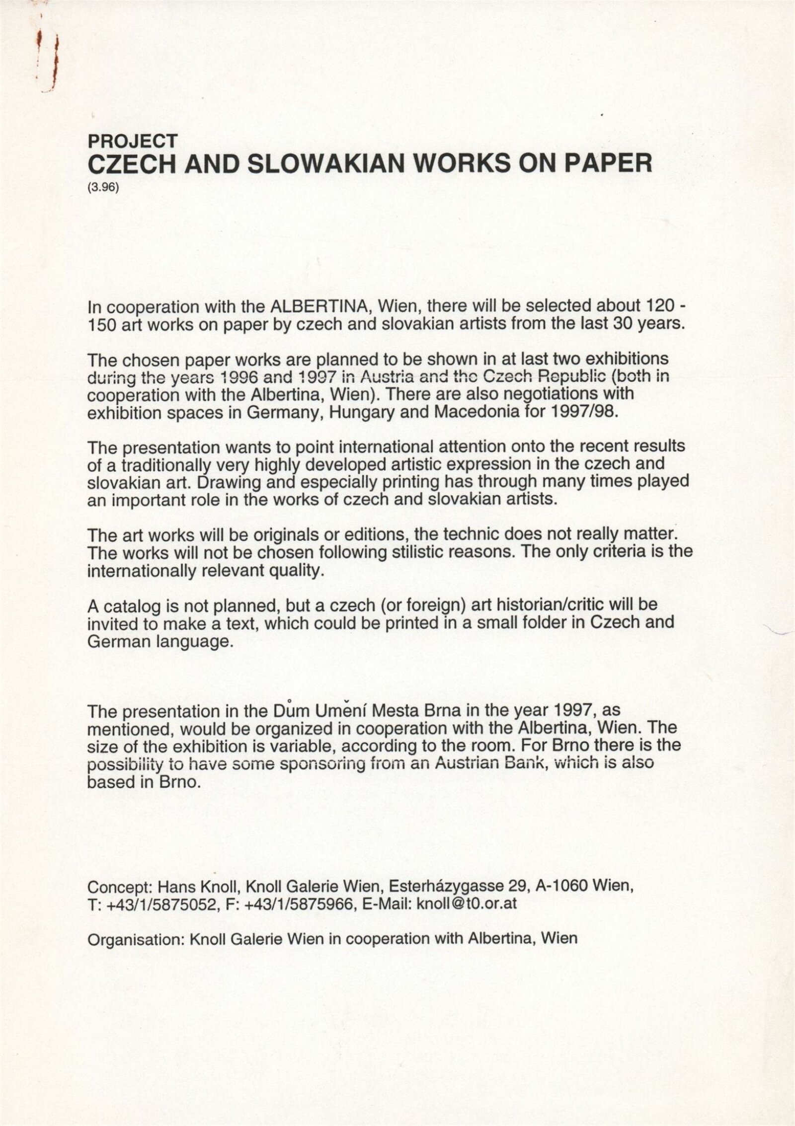 pozvánka, podklady pro pozvánku, text k výstavě, fotografie vernisáže, korespondnce o realizaci výstavy, provozní korespondence, recenze v tisku, poznámky