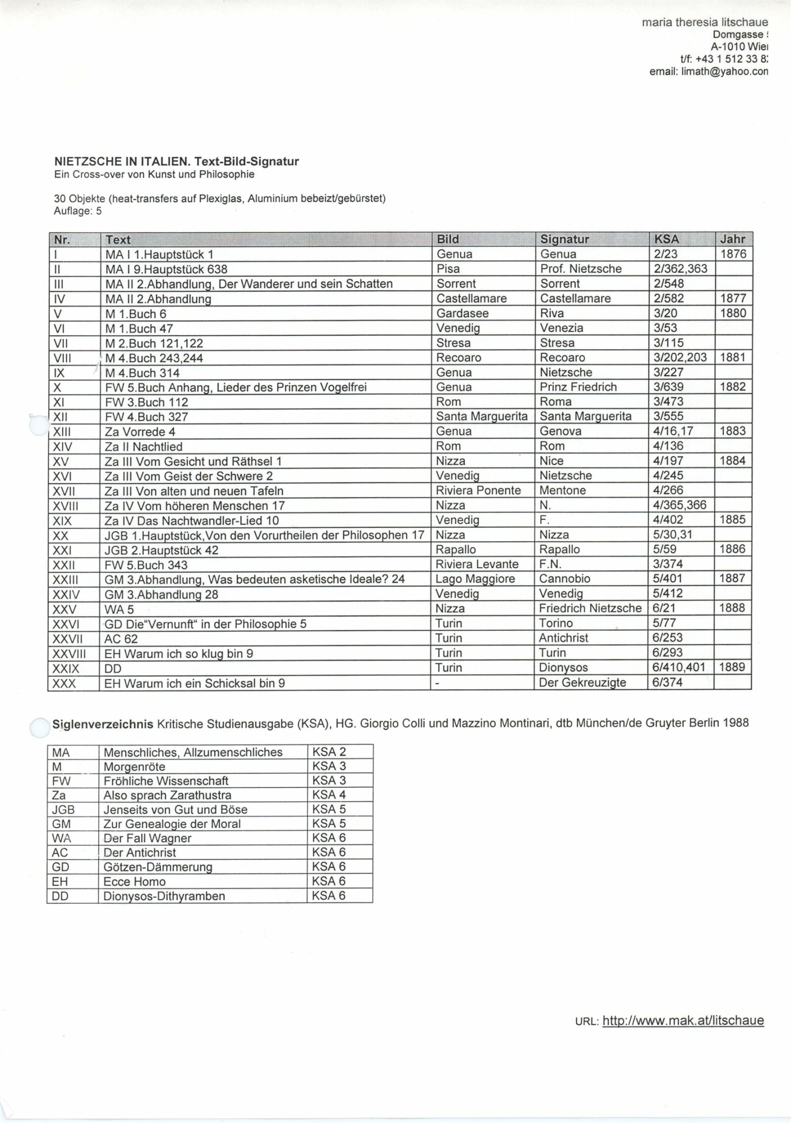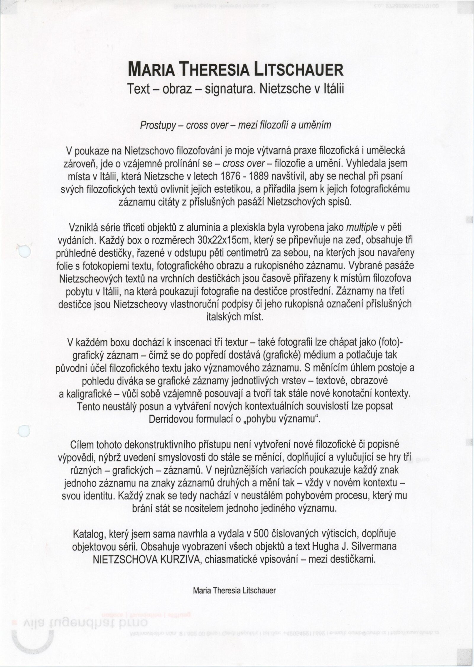 Maria Theresia Litschauer (Rakousko) Nietzsche in Italien – Fotografische Objekte