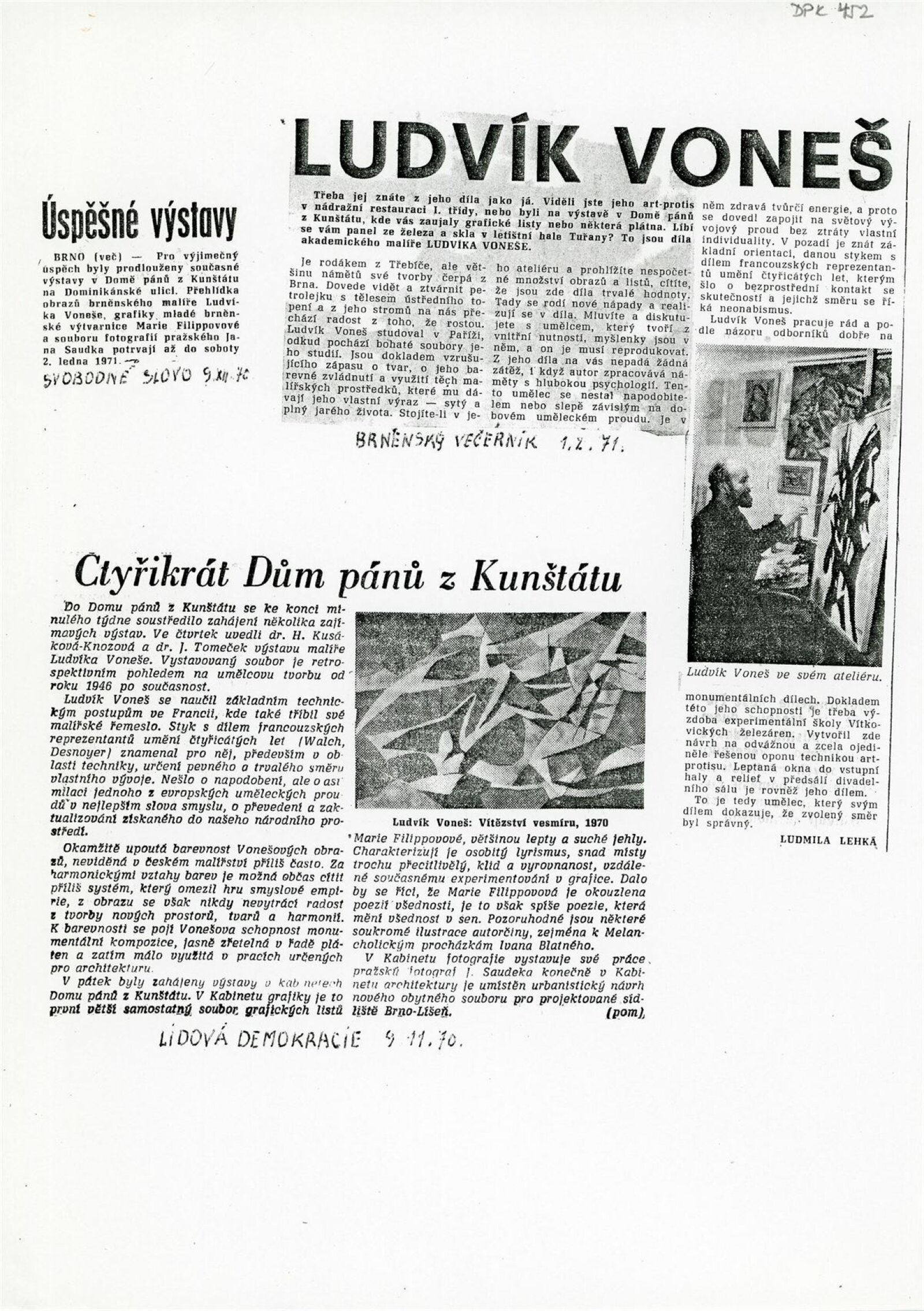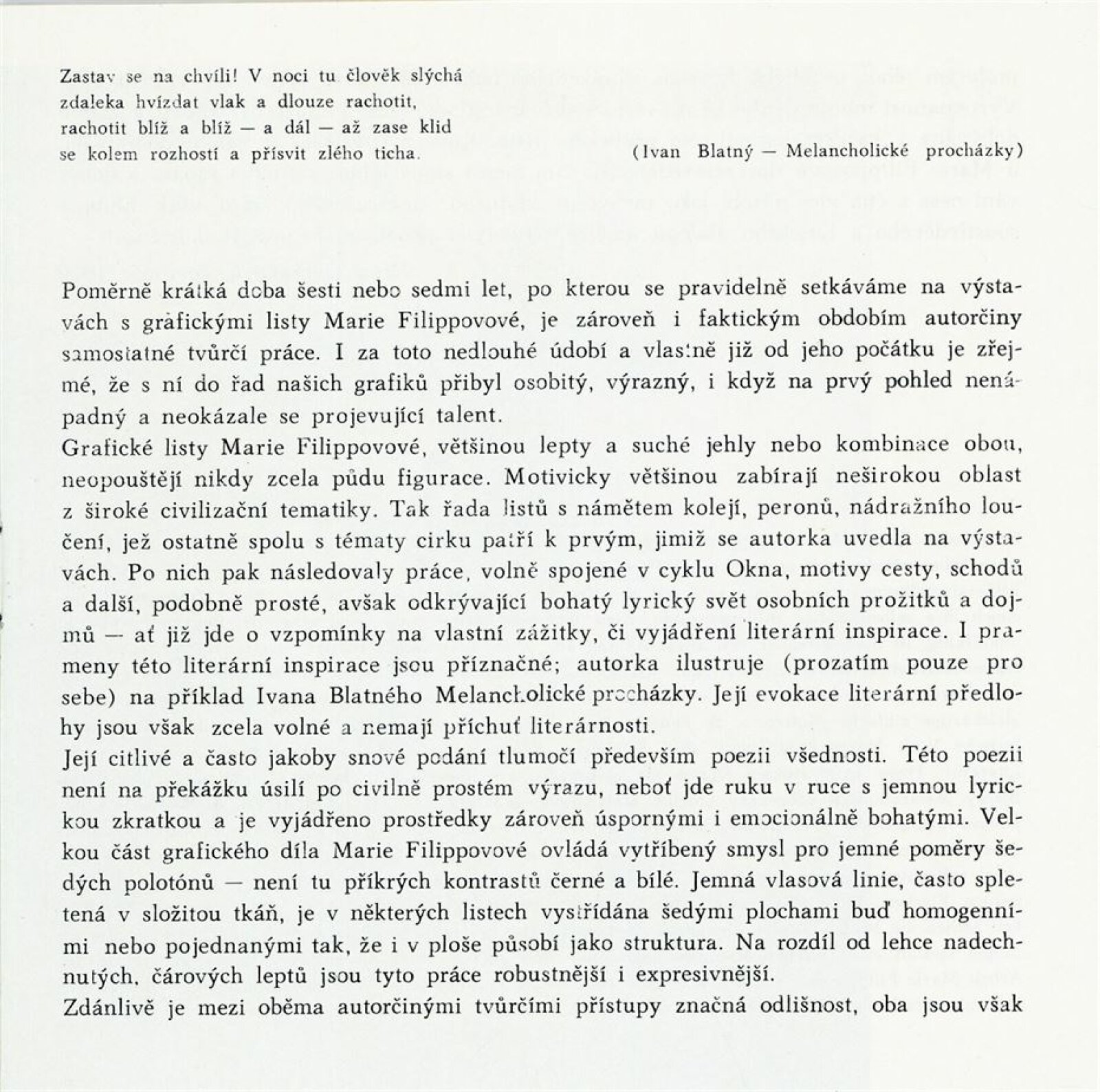 Marie Filippovová 1965–1970: Dům umění města Brna / Dům pánů z Kunštátu, Kabinet grafiky, 6. 11. – 29. 11. 1970 / Text: Nina Dvořáková. – Brno: DUmB, 1970. – 12 s., obr., životní data, výstavy, DPK 452. – MZK; MG; MMB