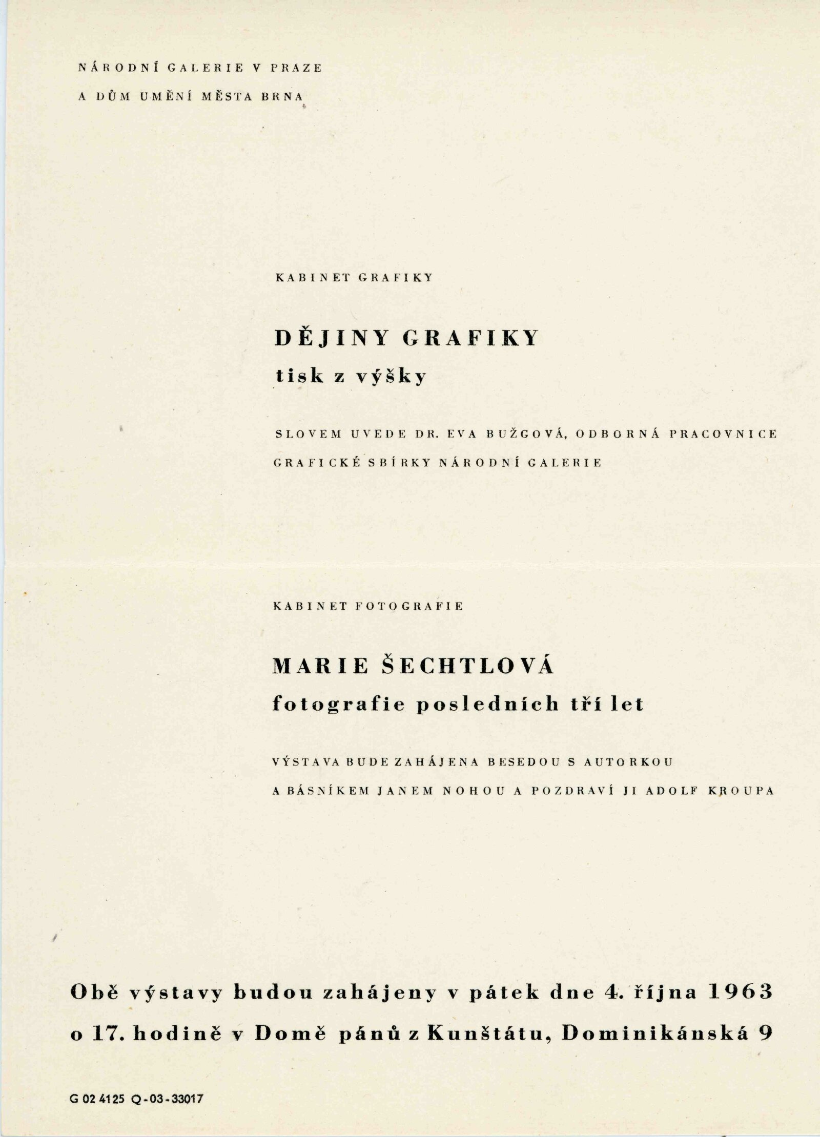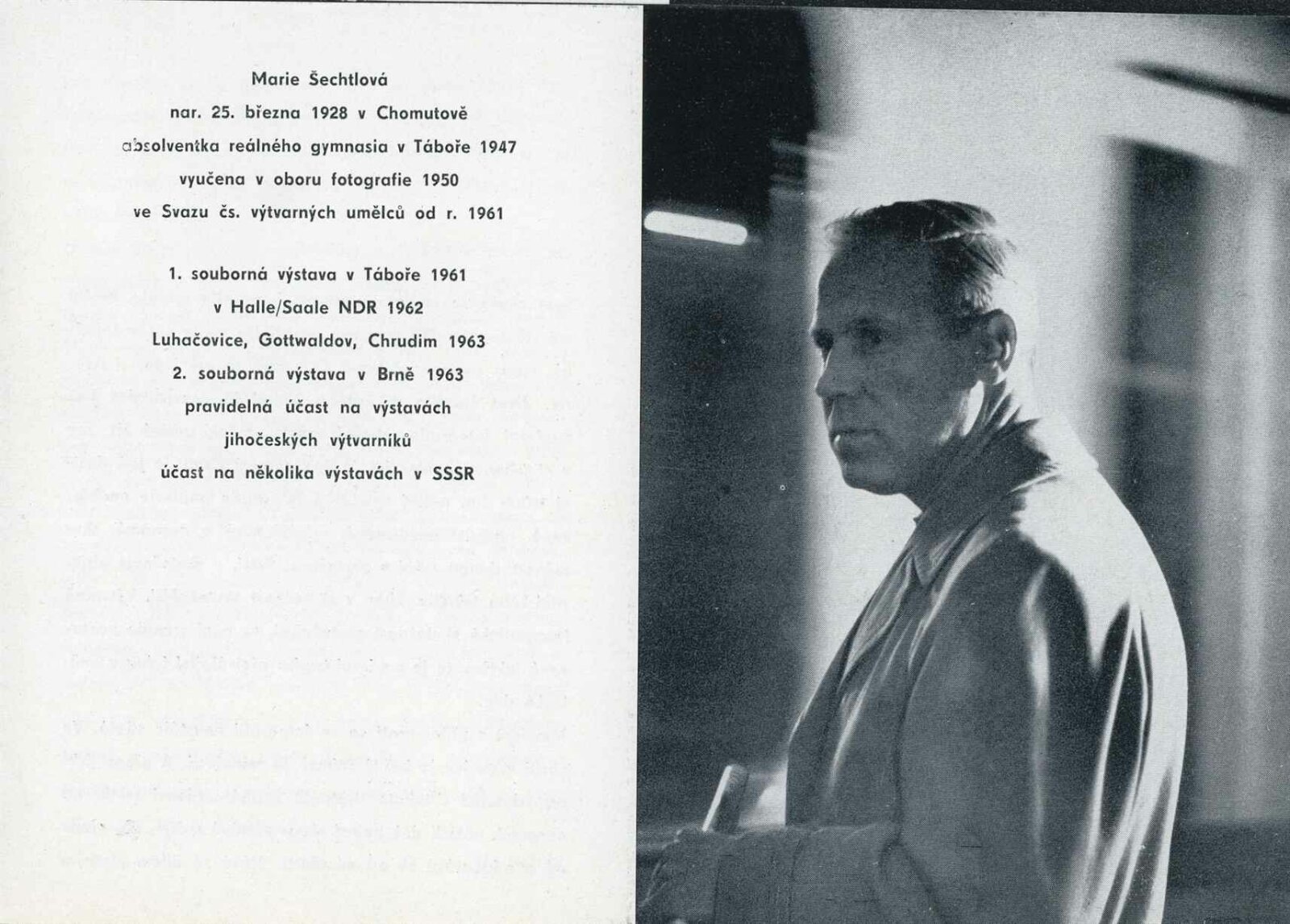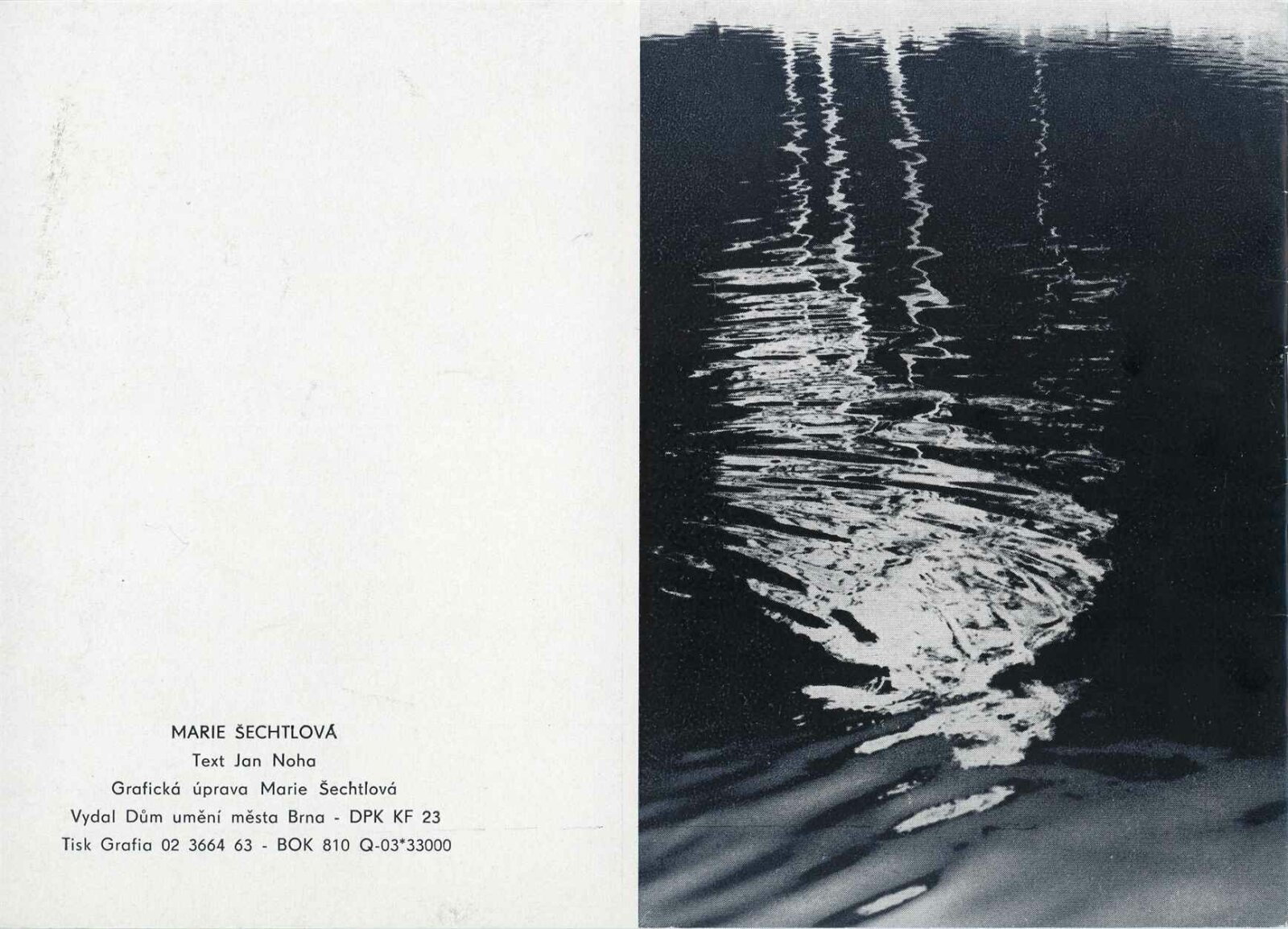 Marie Šechtlová. Fotografie posledních tří let: Dům umění města Brna / Dům pánů z Kunštátu, 48. výstava Kabinetu fotografie Jaromíra Funka, 4. 10. – 3. 11. 1963 / Text: Jan Noha. – Brno: DUmB, 1963. – 16 s., obr., životopis, DPK 206. – MZK; MG