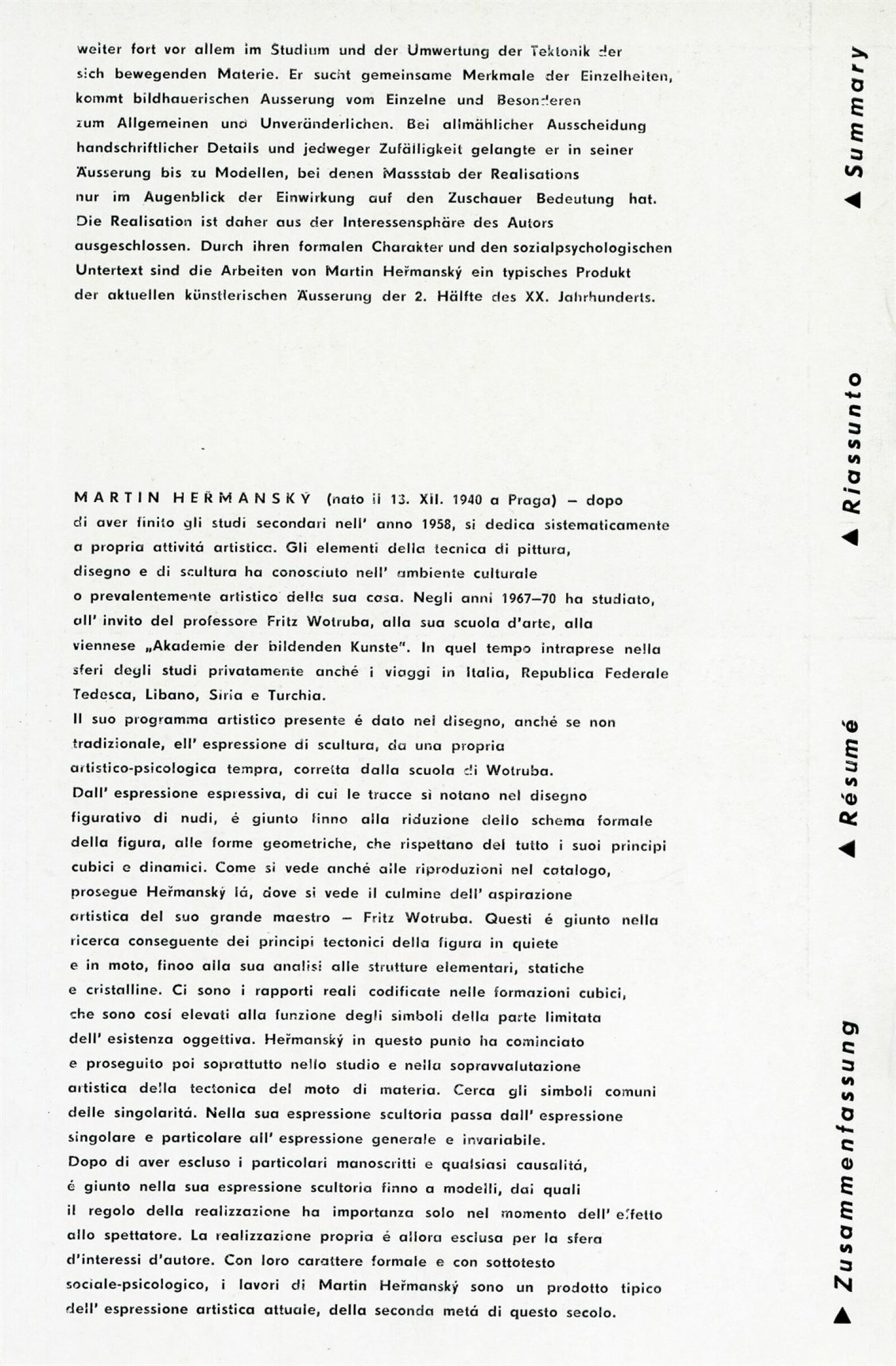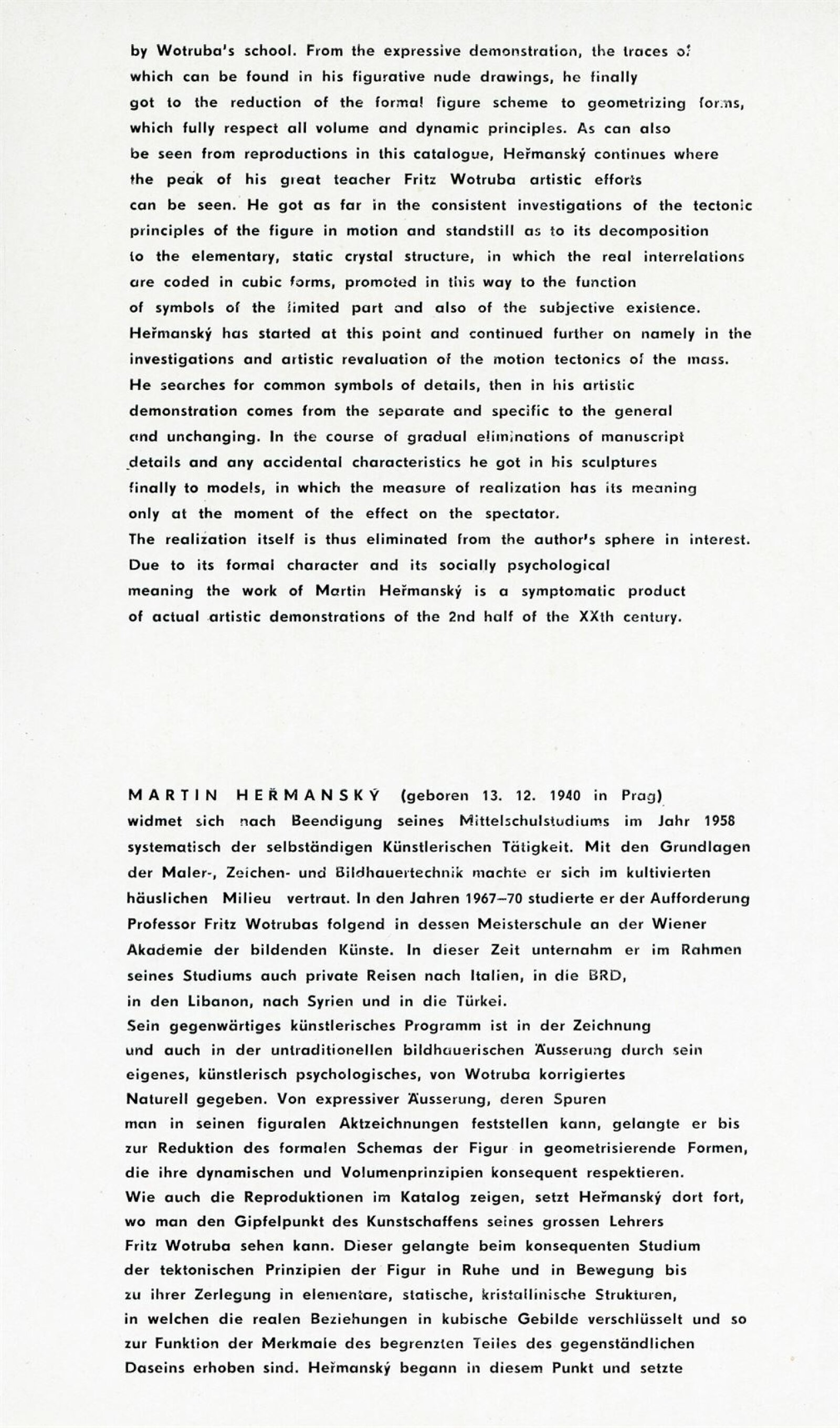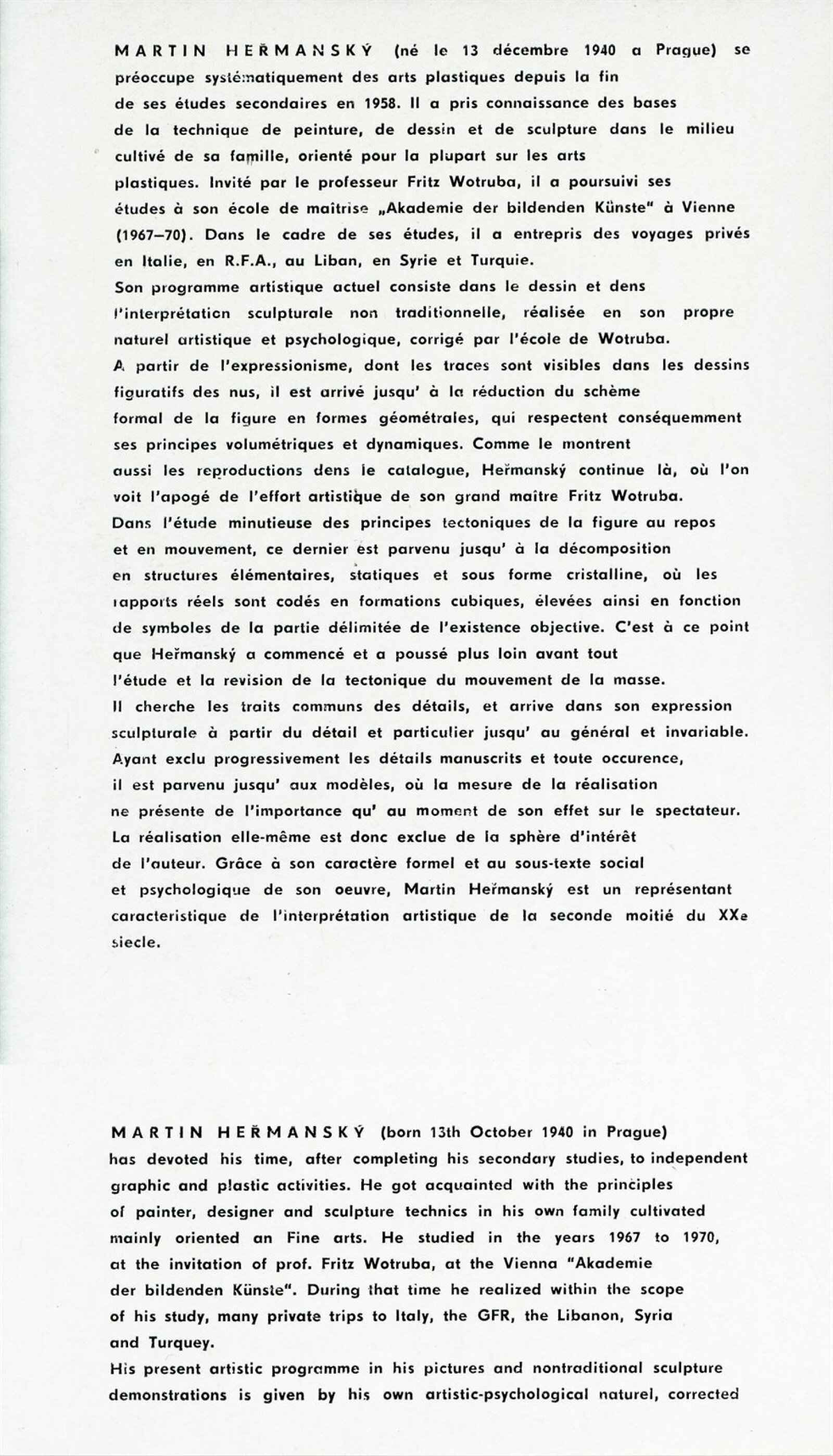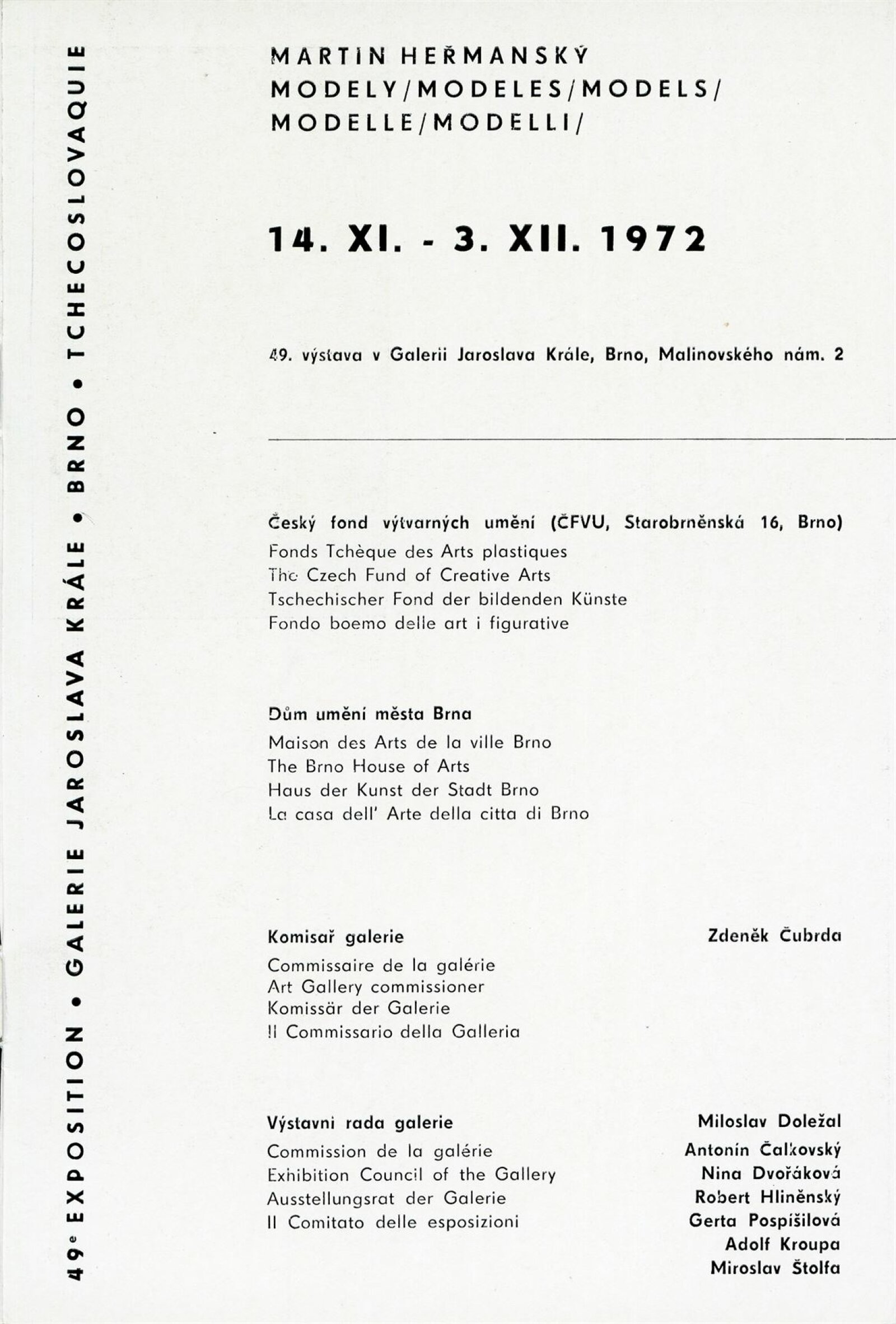 Martin Heřmanský. Modely: Dům umění, 49. výstava v Galerii Jaroslava Krále, 14. 11. – 3. 12. 1972 / Text: Zdeněk Čubrda. – Brno: ČFVU, 1972. – 10 s., obr., životopis, DU 579. – MZK; MG