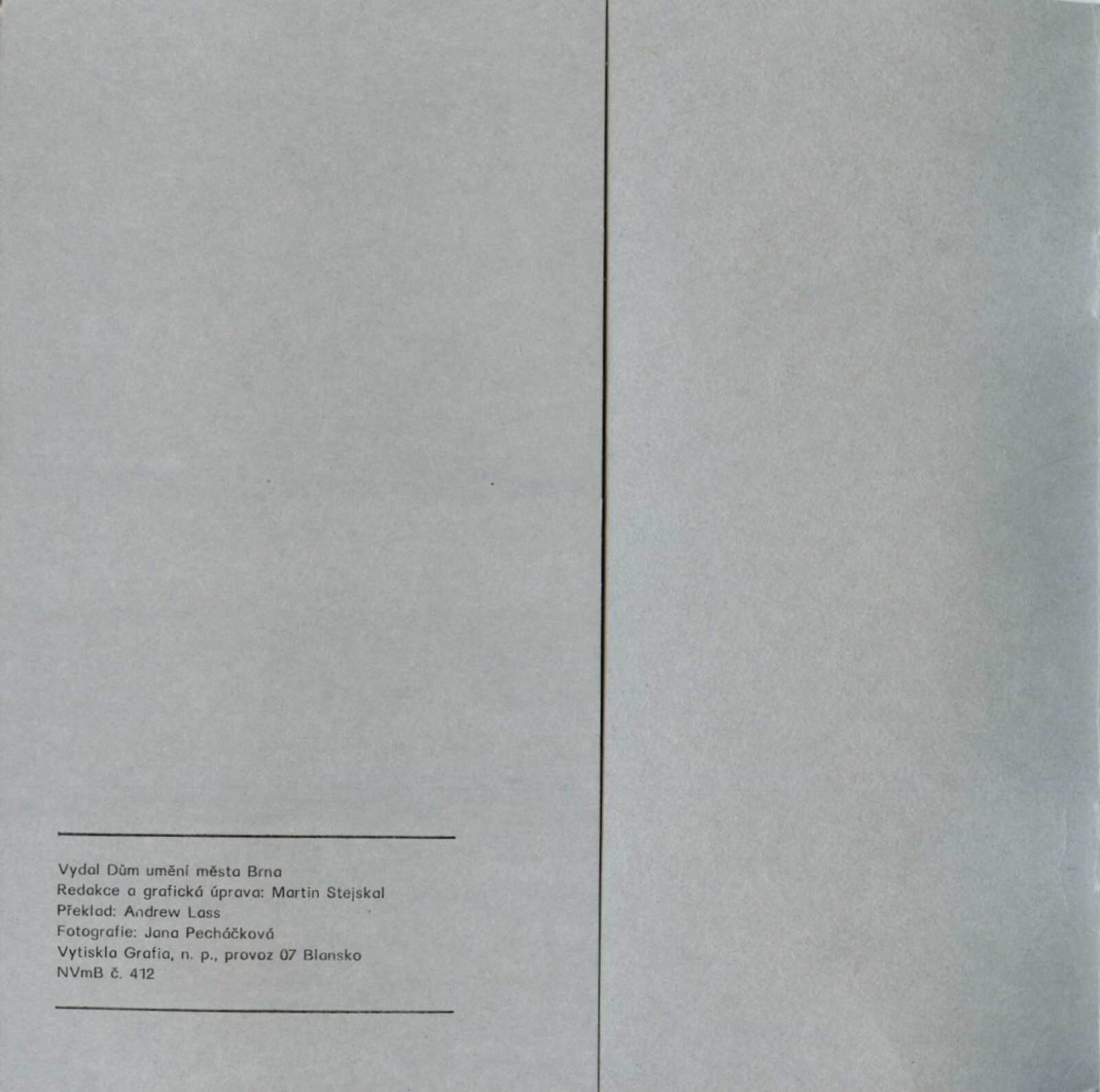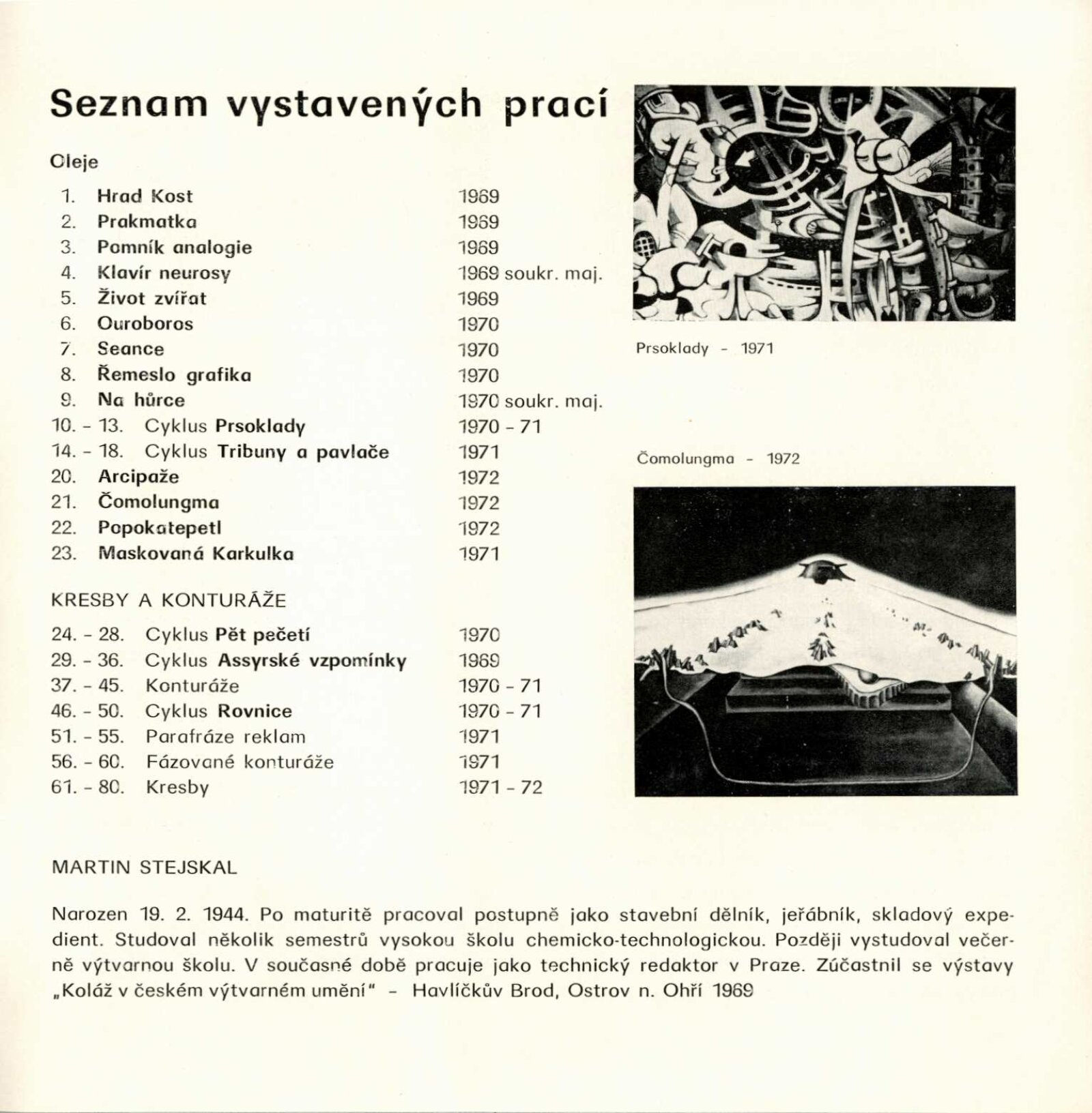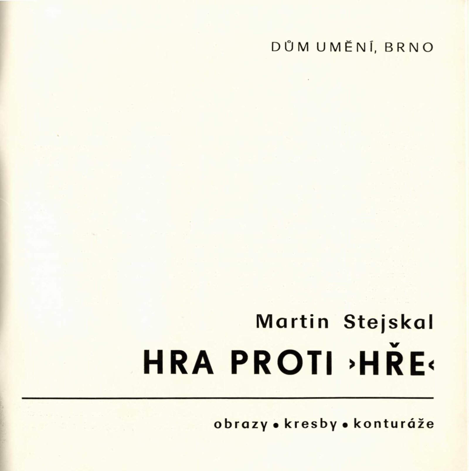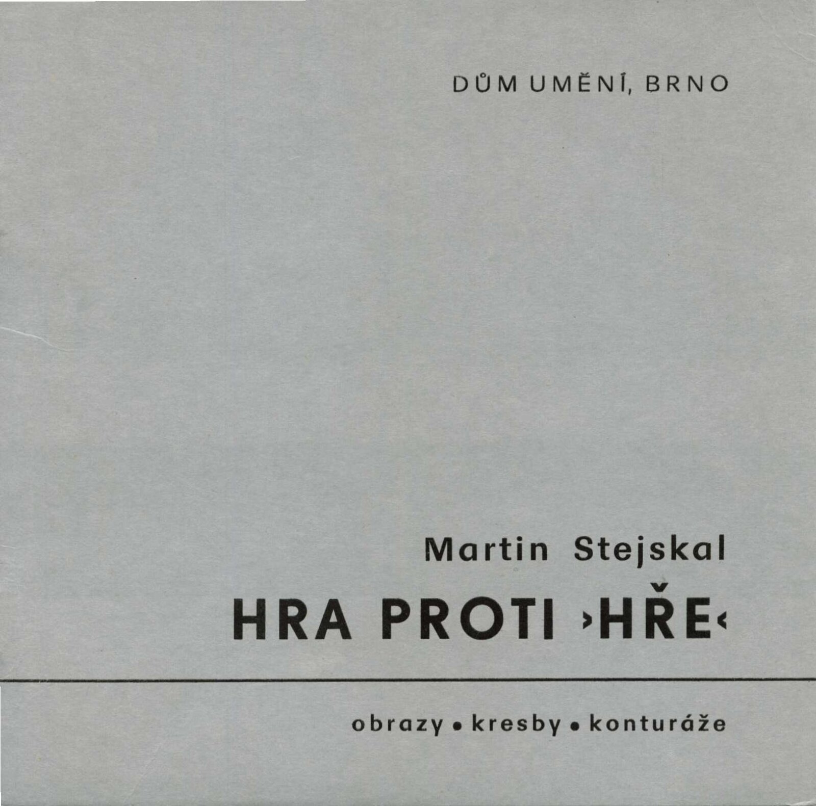 Martin Stejskal. Hra proti „hře“. Obrazy, kresby, konturáže: Dům umění města Brna / Dům pánů z Kunštátu 11. 5. – 28. 5. 1972 / Text: Andrew Lass. – Brno: DUmB, 1972. – 16 s., obr., DPK 511