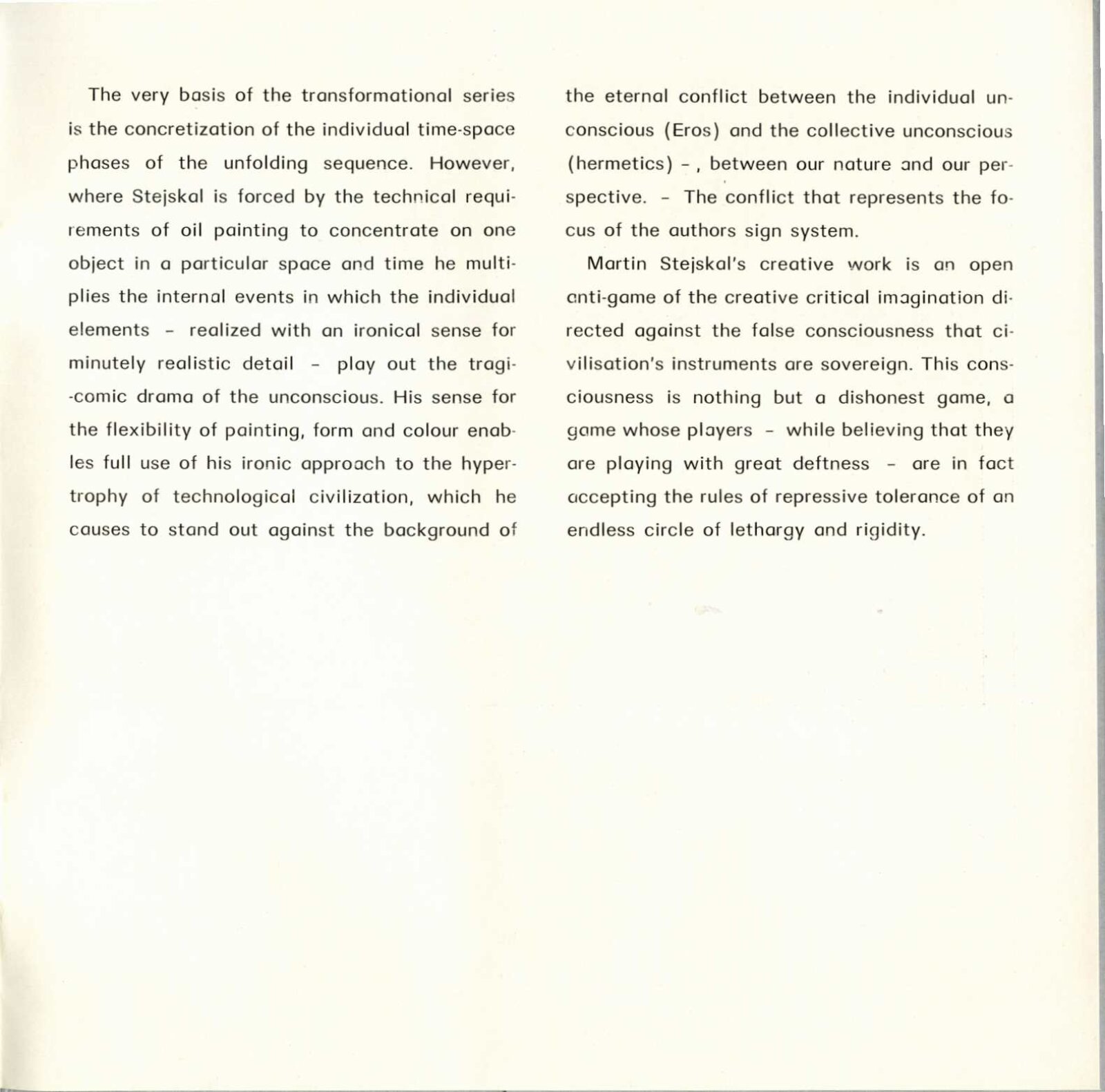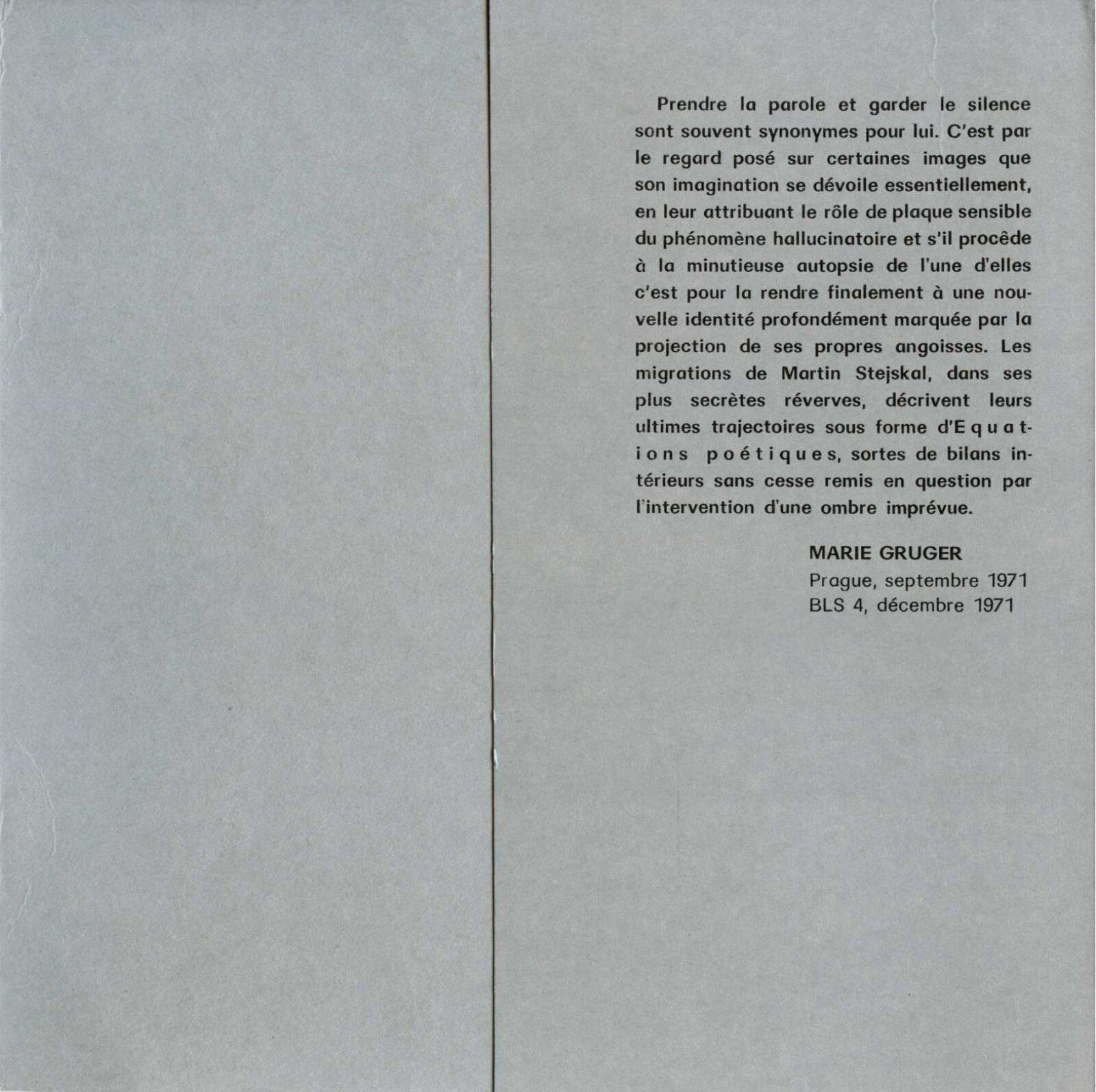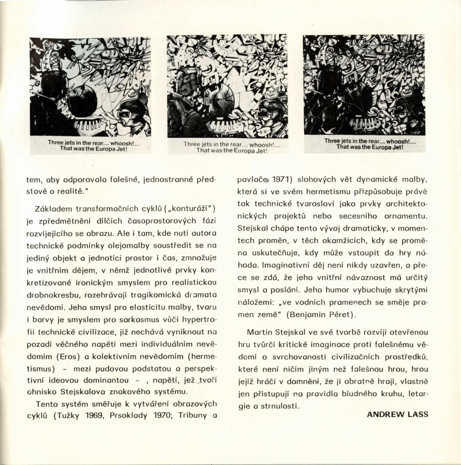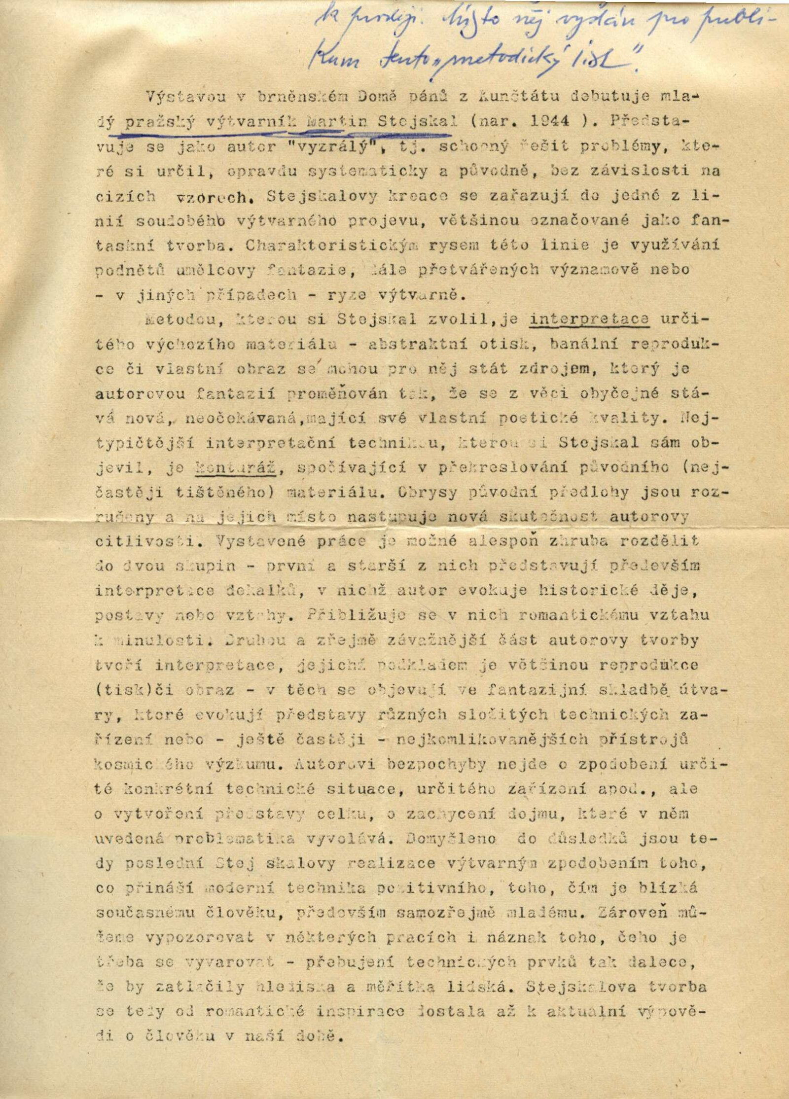 Martin Stejskal. Hra proti „hře“. Obrazy, kresby, konturáže: Dům umění města Brna / Dům pánů z Kunštátu 11. 5. – 28. 5. 1972 / Text: Andrew Lass. – Brno: DUmB, 1972. – 16 s., obr., DPK 511