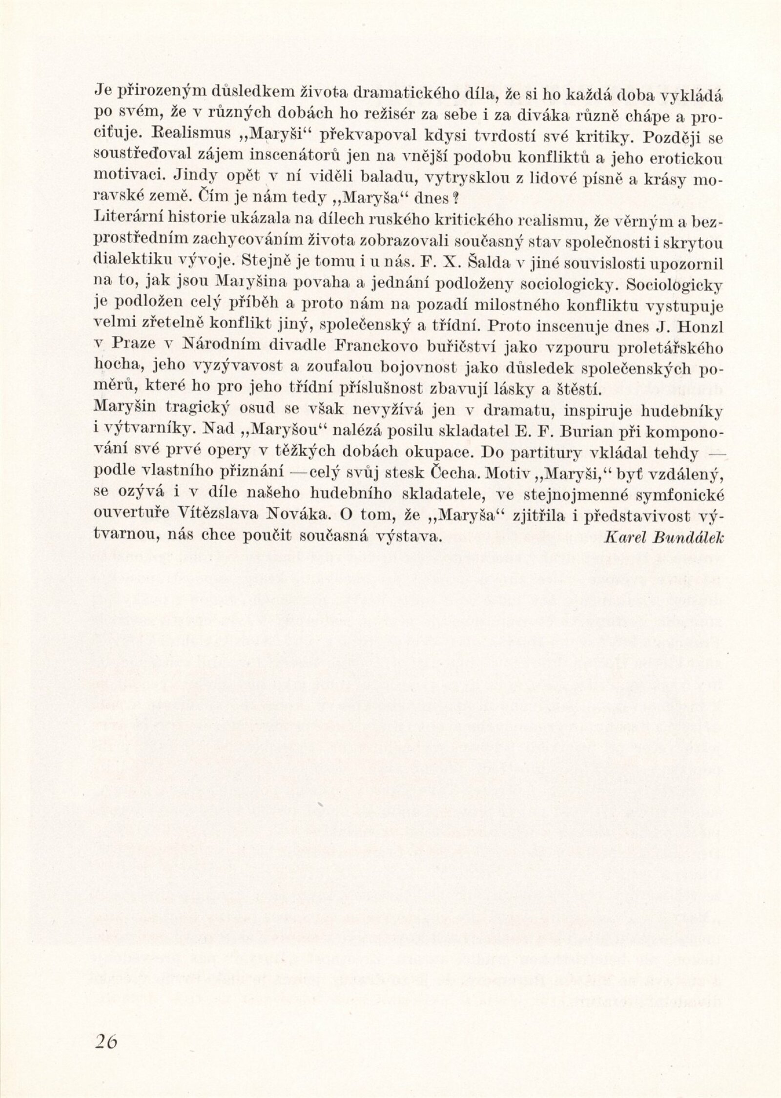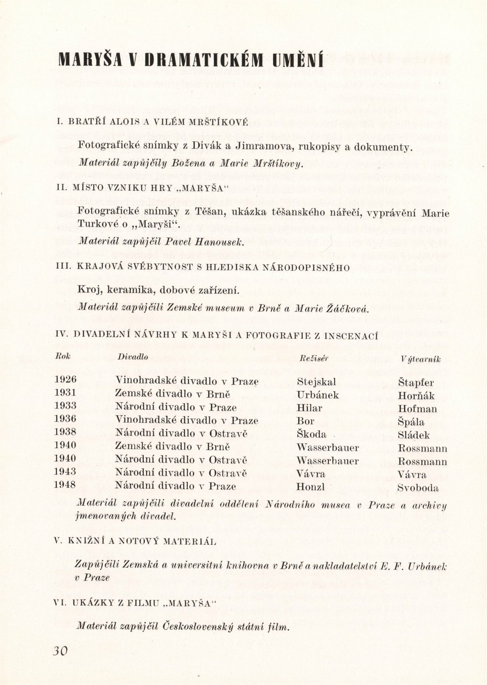 Maryša v dramatickém umění. 101. výstava (výstavní list): Dům umění v Brně, 3. 4. – 27. 4. 1949 / Text: Karel Bundálek, Jan Racek. – Brno: DUmB, 1949. – 32 s., obr., DU 101. – MZK; MG; MMB
