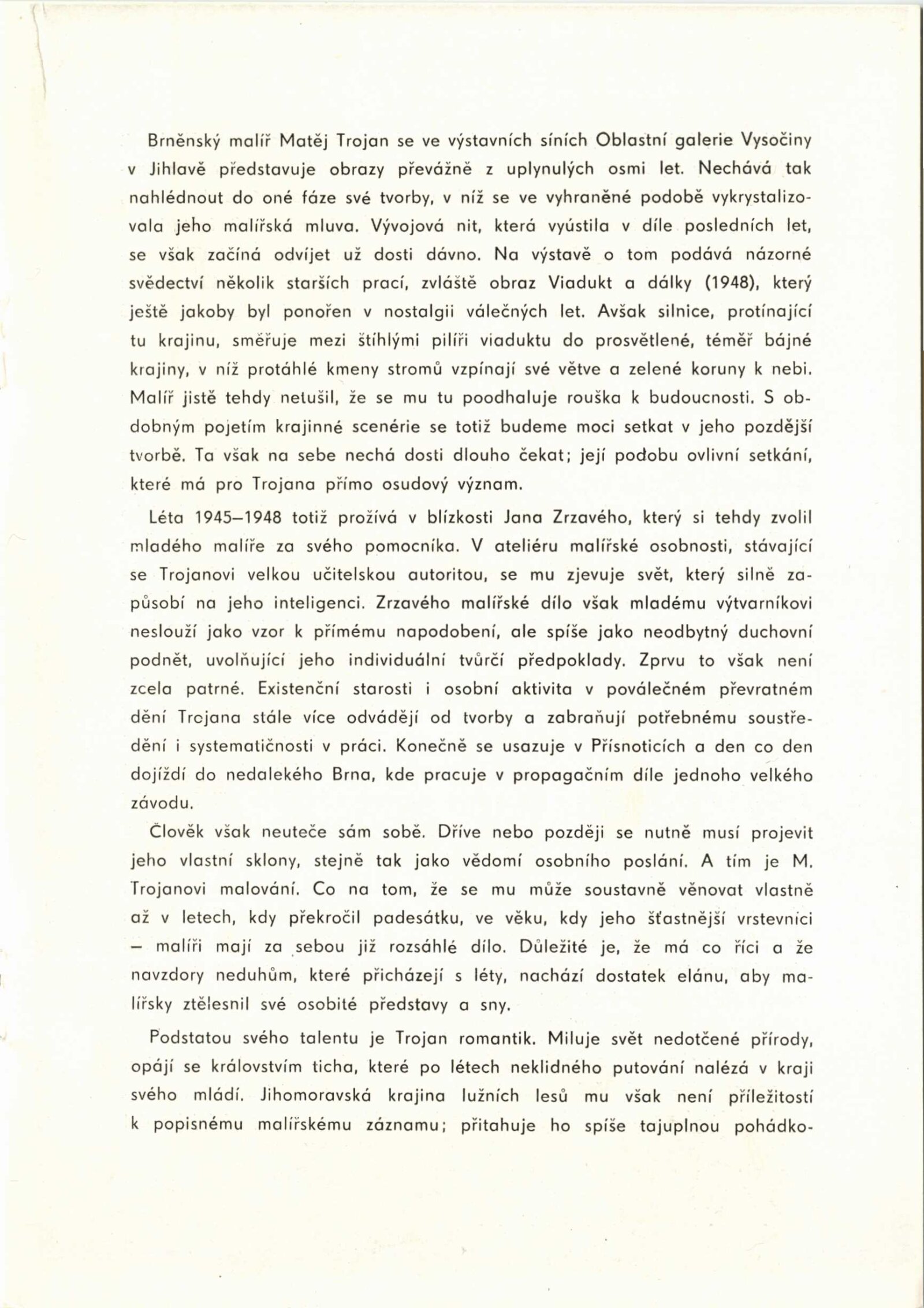 žádost autora o výstavu, recenze v tisku, katalog výstavy Matěje Trojana (Oblastní galerie Vysočiny v Jihlavě)
