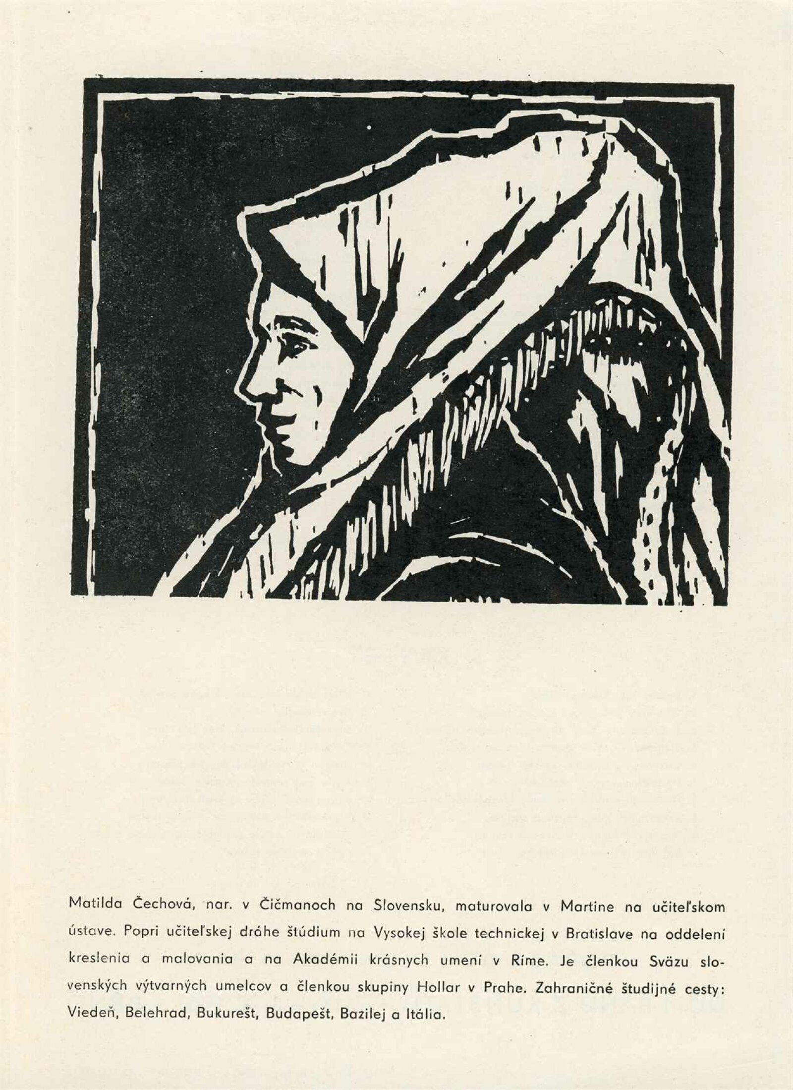 Matilda Čechová. Grafika, kresby: Dům umění města Brna / Dům pánů z Kunštátu, Kabinet grafiky, 7. 9. – 1. 10. 1961 / Text: Ján Hraško. – Brno: DumB, 1961. – 4 s., obr., životní data, DPK 122. – MG; MMB