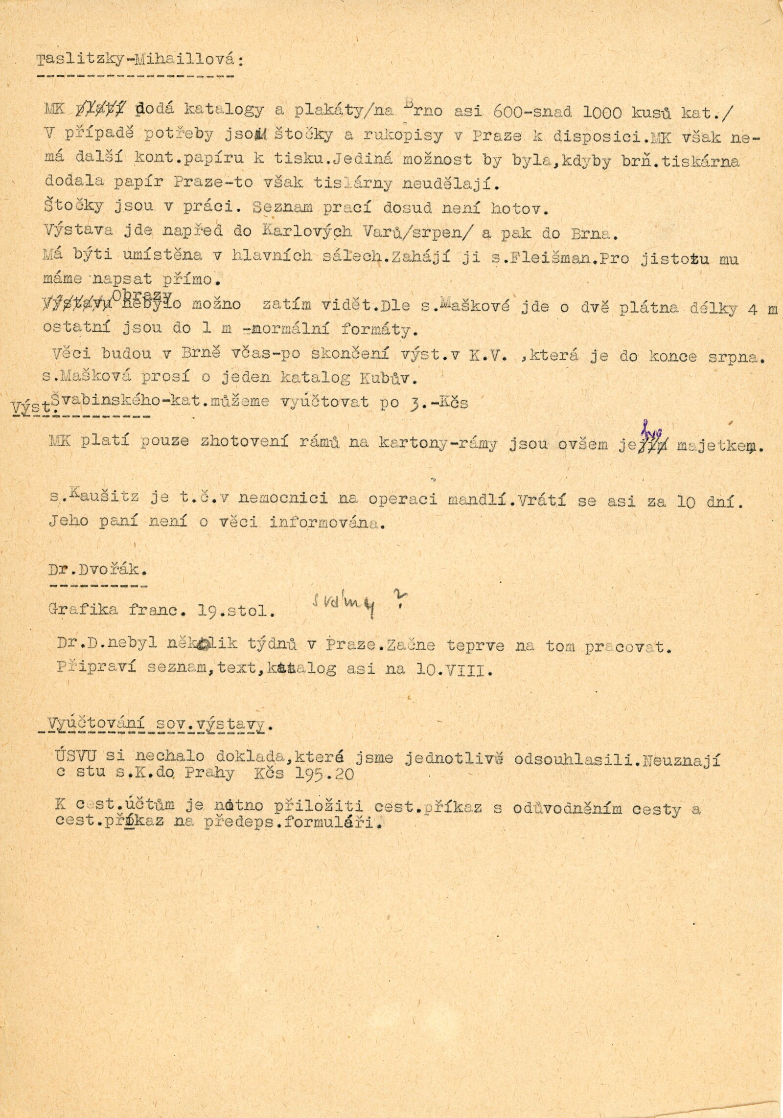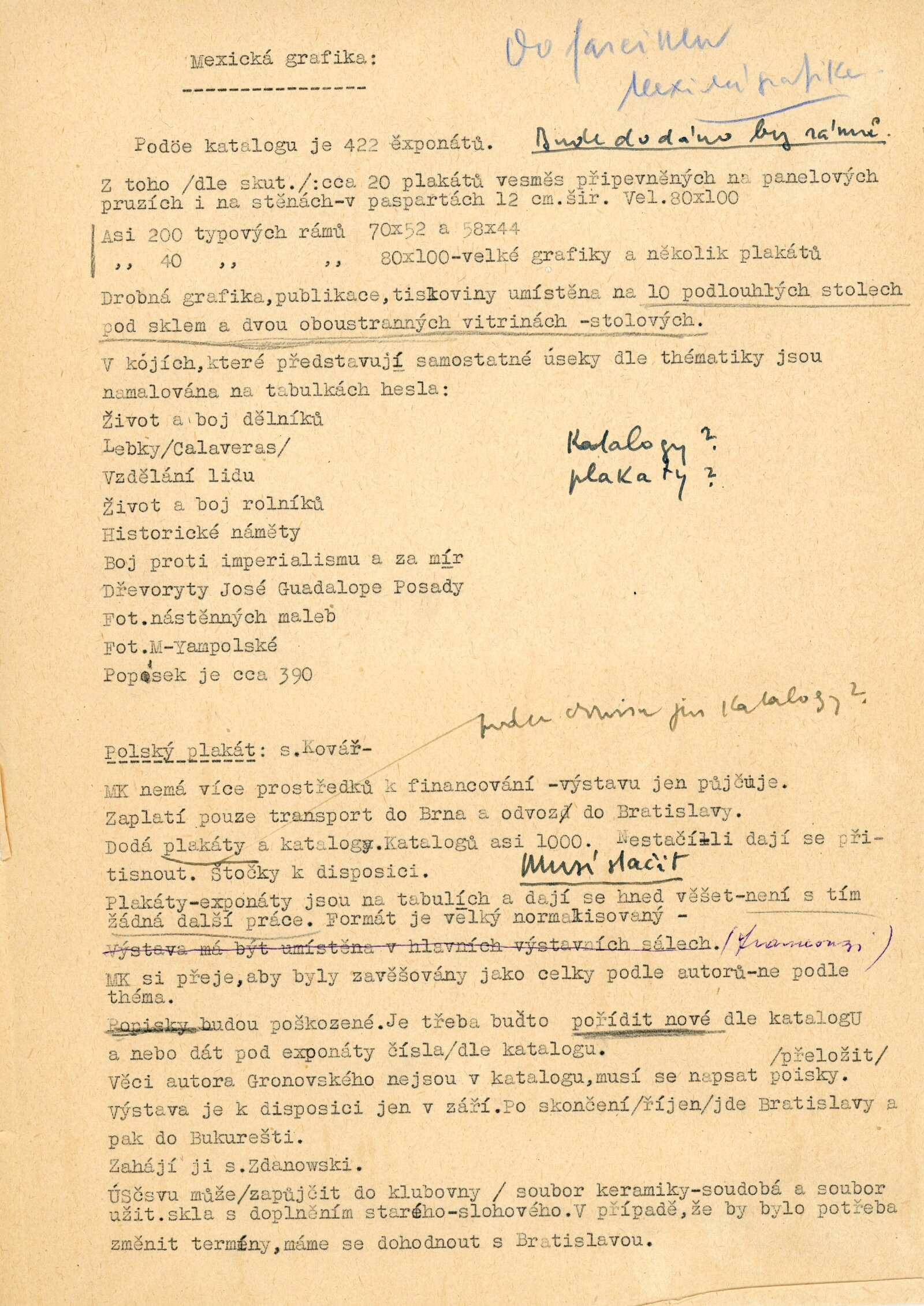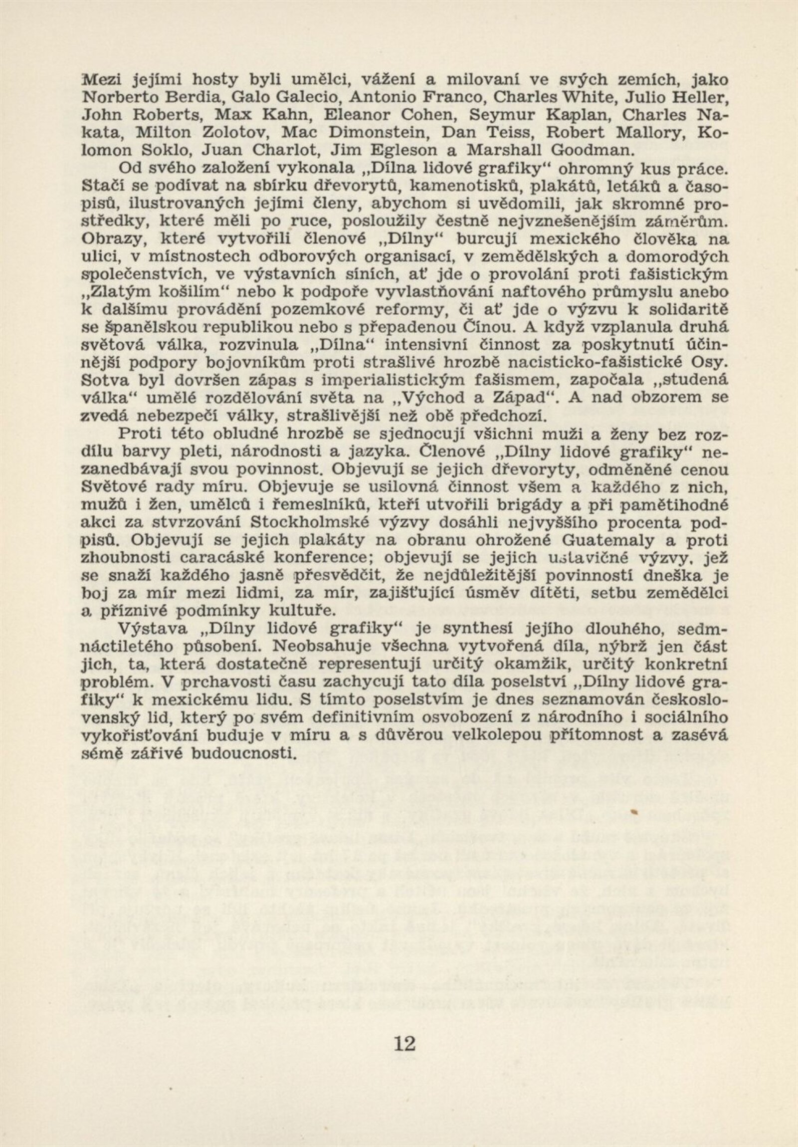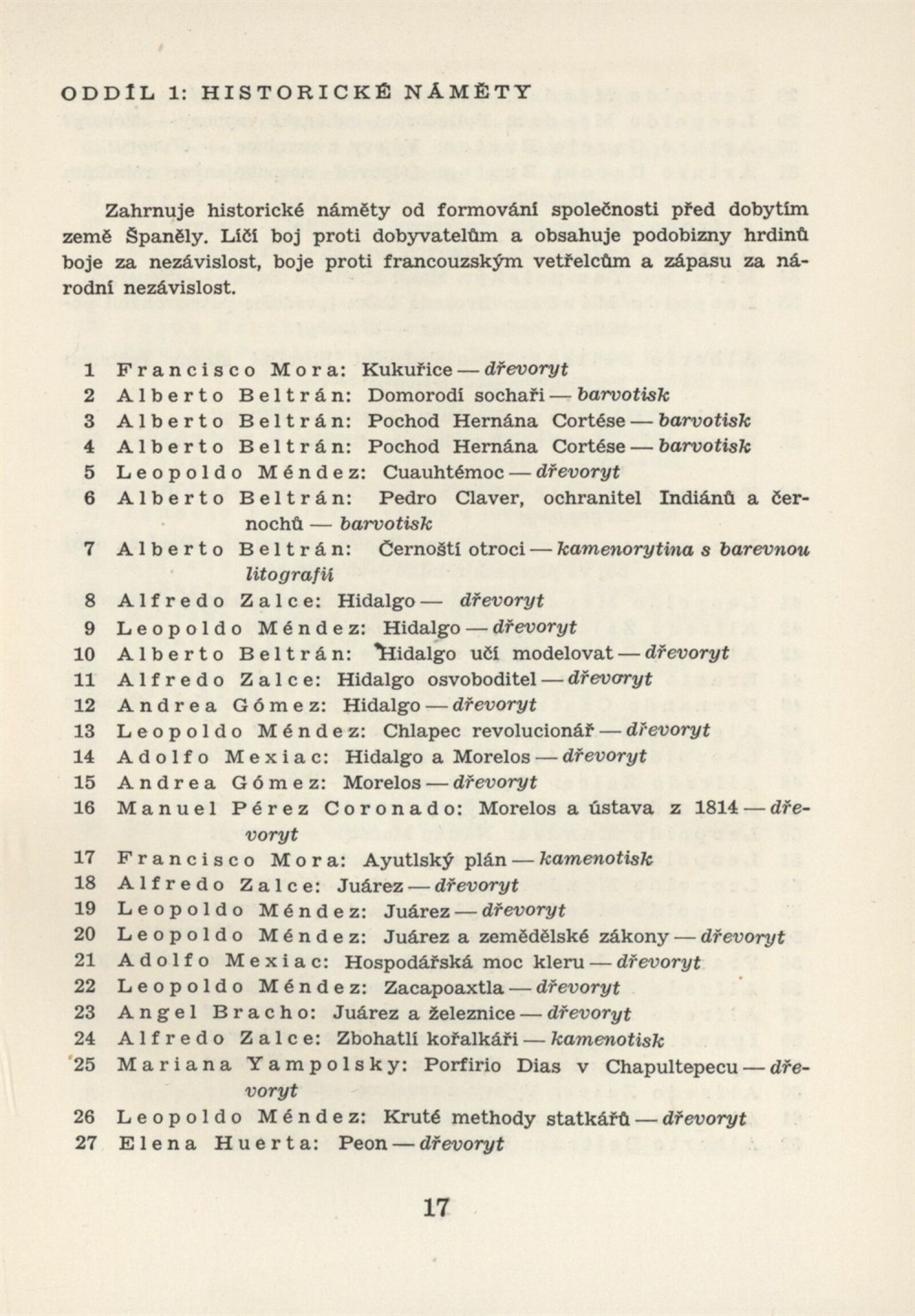 Mexická grafika. Taller de grafica popular: Dům umění, 5. 9. – 3. 10. 1954 / Převzatý katalog. Mexická grafika. Taller de grafica popular: Praha, červen–červenec 1954 / Text: anonymní. – Praha: ÚSČSVU, 1954. – 31 s., 8 s. obr. přil., báseň Pablo Nerudy přebásněná Ivo Fleischmannem, životopisy, DU 201. – MZK; MG