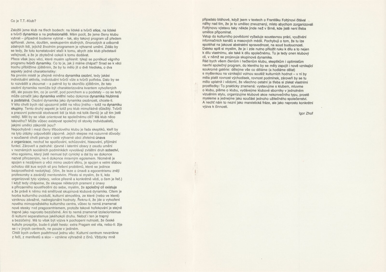 pozvánka, katalog, zpráva pro média, text Radek Horáček, návrh graf. řešení katalogu,výzva k účasti na výstavě, fotografie instalace výstavy, potvrzení o převzetí, seznam vystavujících (adresy), korespondence, recenze v tisku, katalog z výstavy T. T. Klubu v Jihlavě (1991)