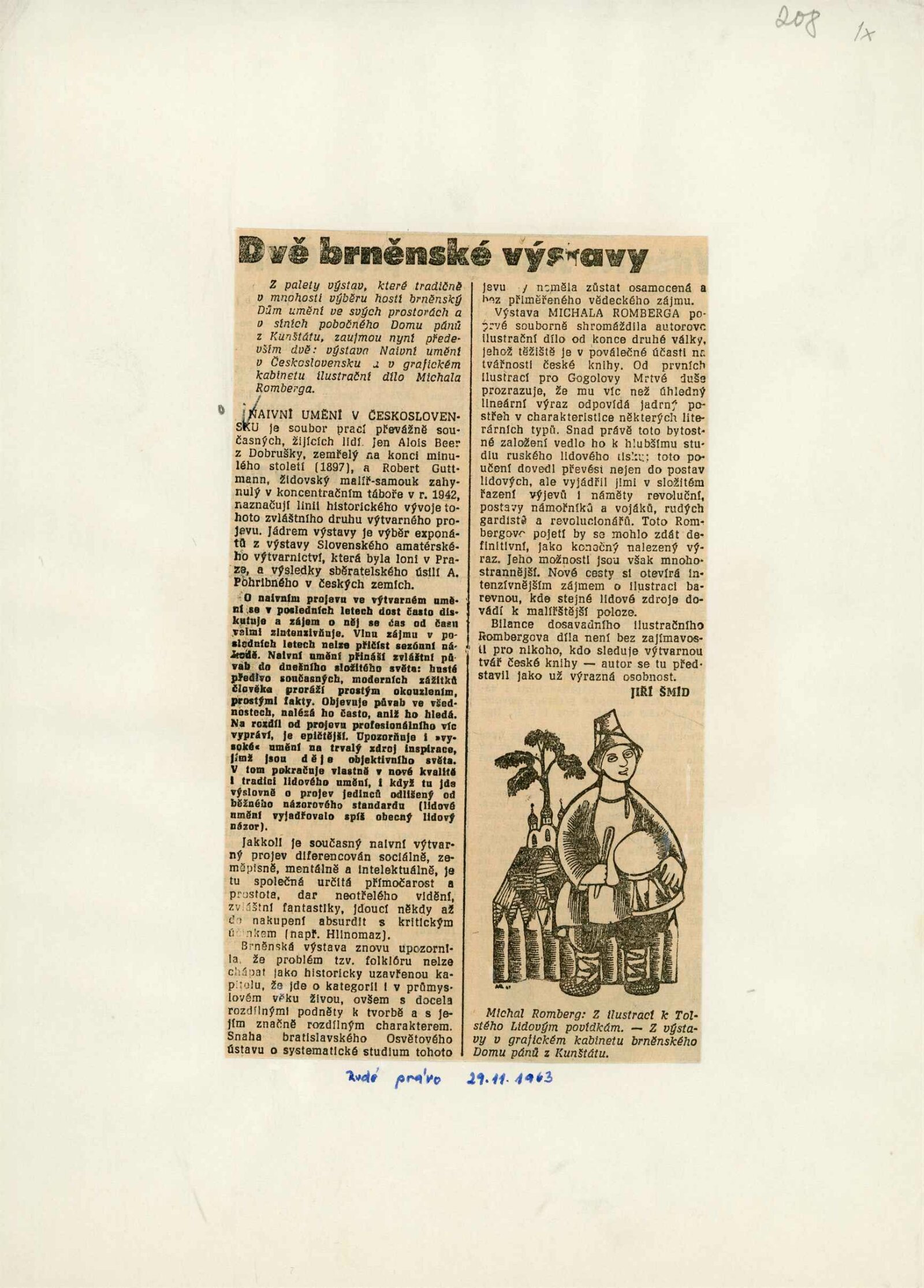 Michael Romberg. Ilustrace k ruské a sovětské literatuře: Dům umění města Brna / Dům pánů z Kunštátu, 48. výstava Kabinetu grafiky, 8. 11. 1963 – 1. 1. 1964 / Text: René Murat. – Brno: DUmB, 1963. – skládačka, 8 s., obr., DPK 208. – MZK; MG