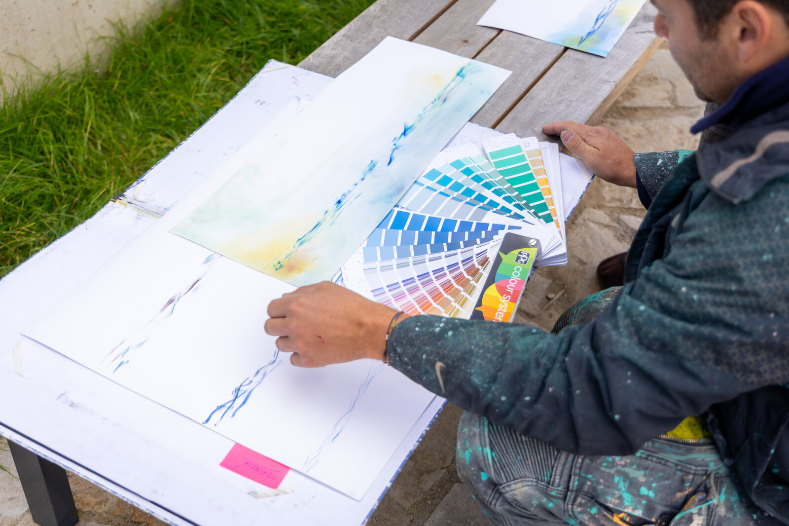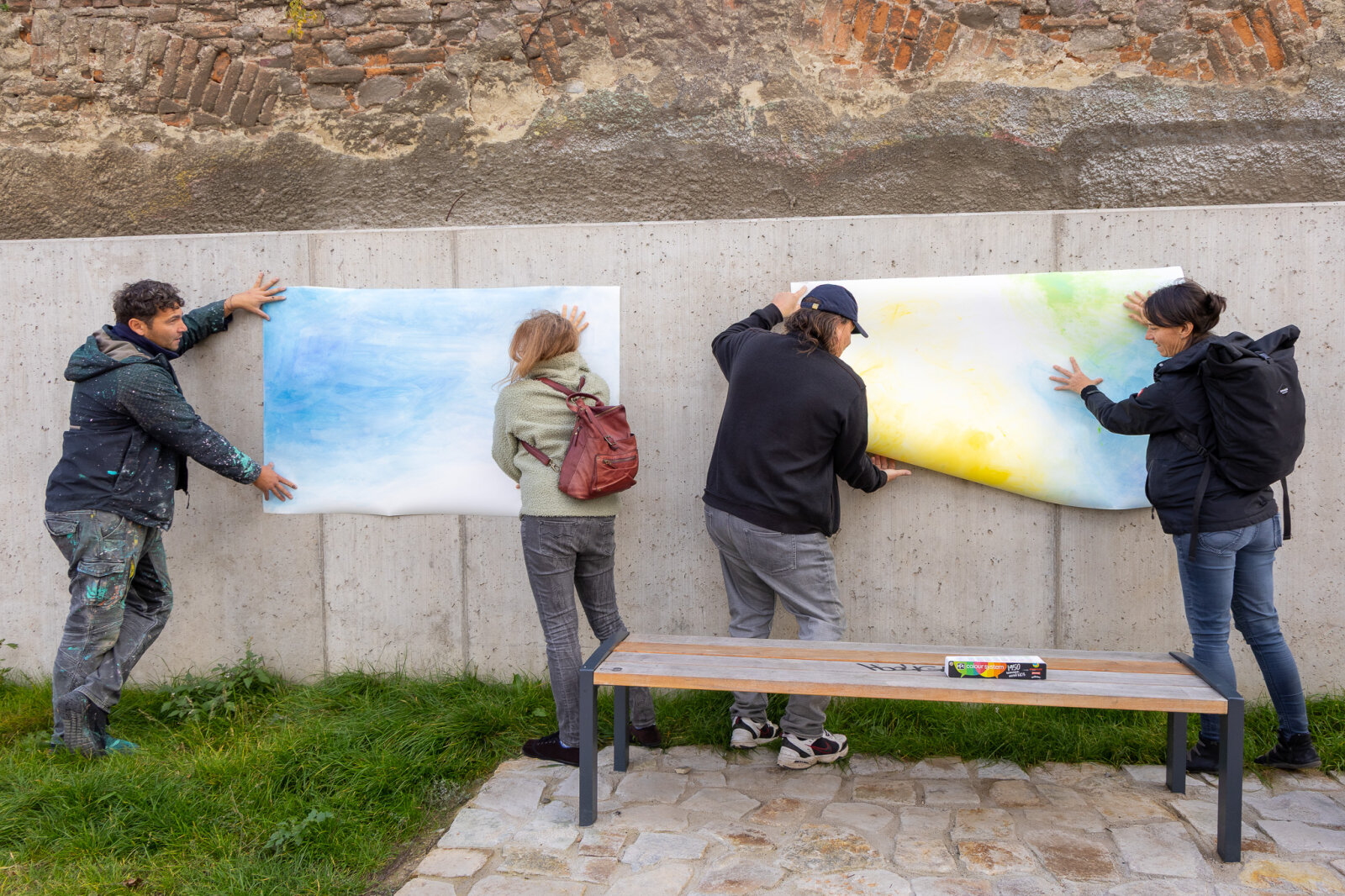 Uskutečnění malby na protipovodňové zdi okolo kláštera alžbětinek předcházely autorské návrhy malby Michaely Mráčkové. Umělkyně připravila autorské skici, které byly důležité pro správnou volbu techniky i prostředků pro přenesení obrazu na venkovní betonovou plochu. Způsob malby na venkovní zeď je totiž značně odlišný od tvorby na papíře. Tyto návrhy, které vznikaly také v konzultaci s vedoucí ateliéru malby Patricií Fexovou, za podpory rodičů i asistenčního psa Anežky, se staly podkladem pro spolupráci s Lukášem Veselým, zkušeným realizátorem muralů ve městě z firmy Malujeme jinak. Ten přenesl návrh Michaely Mráčkové na zeď technikou vysokotlakého stříkání. Na závěr umělkyně provedla na malbě autorské kresebné gesto, jímž zaznamenala zvuk řeky, protékající v bezprostředním okolí. Lukáš Veselý pak přispěl k oživení Táborského nábřeží také vlastním muralem na trafostanici v blízkosti malby Michaely Mráčkové. Zachycuje malující dítě a rovněž reaguje na fenomén vody.