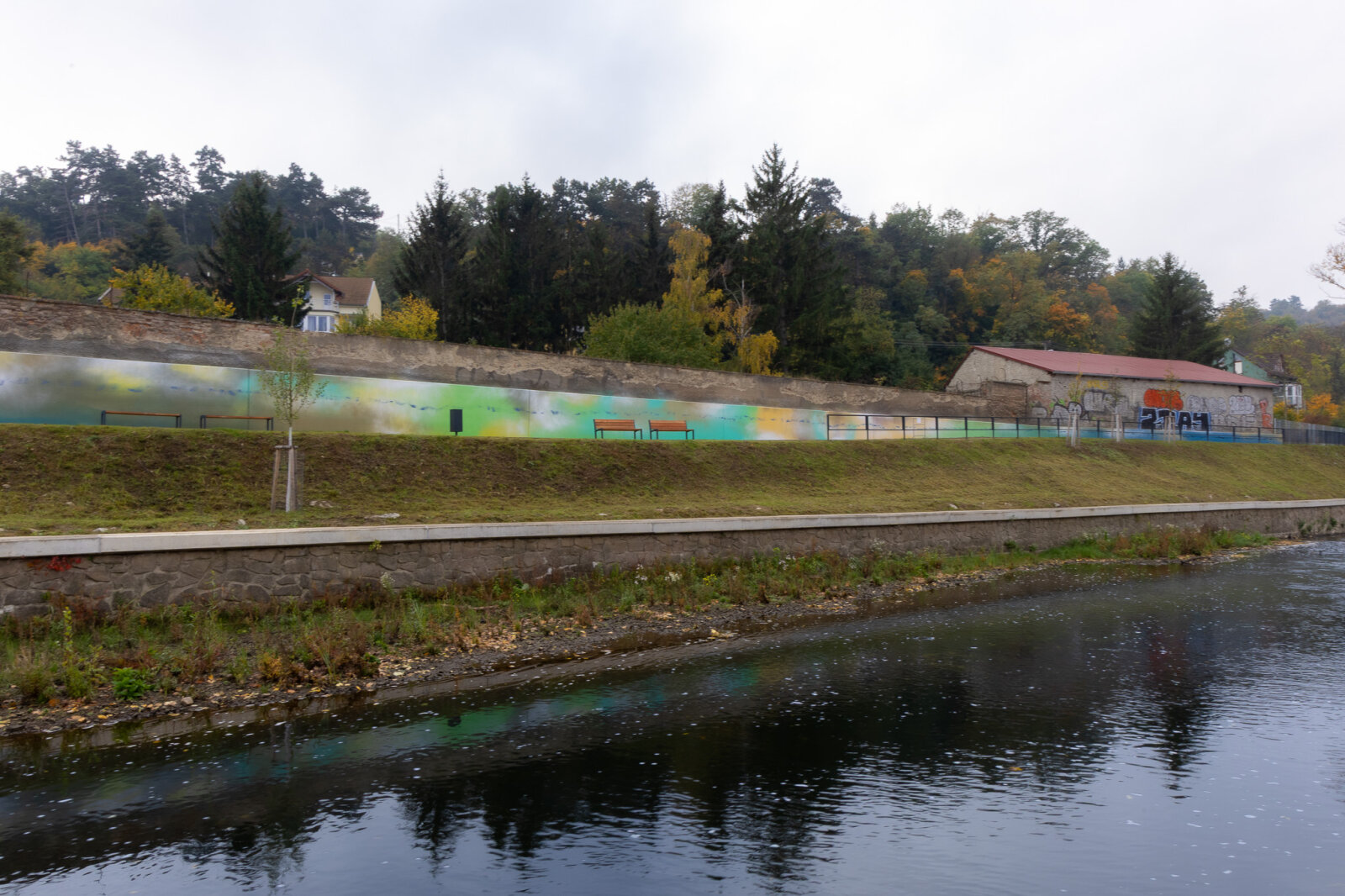 úpravu nábřeží řeky Svratky pojala studentka ateliéru Malba 3 Fakulty výtvarných umění VUT, jako aluzi na živel vody.