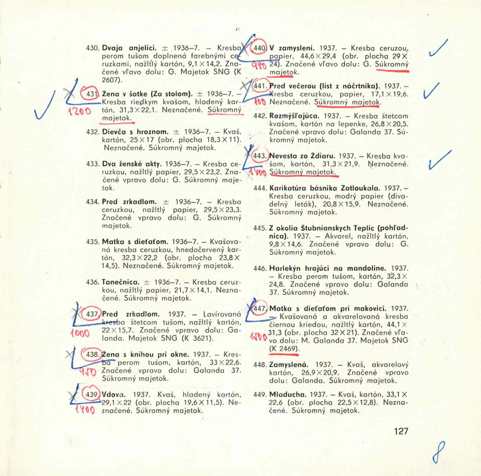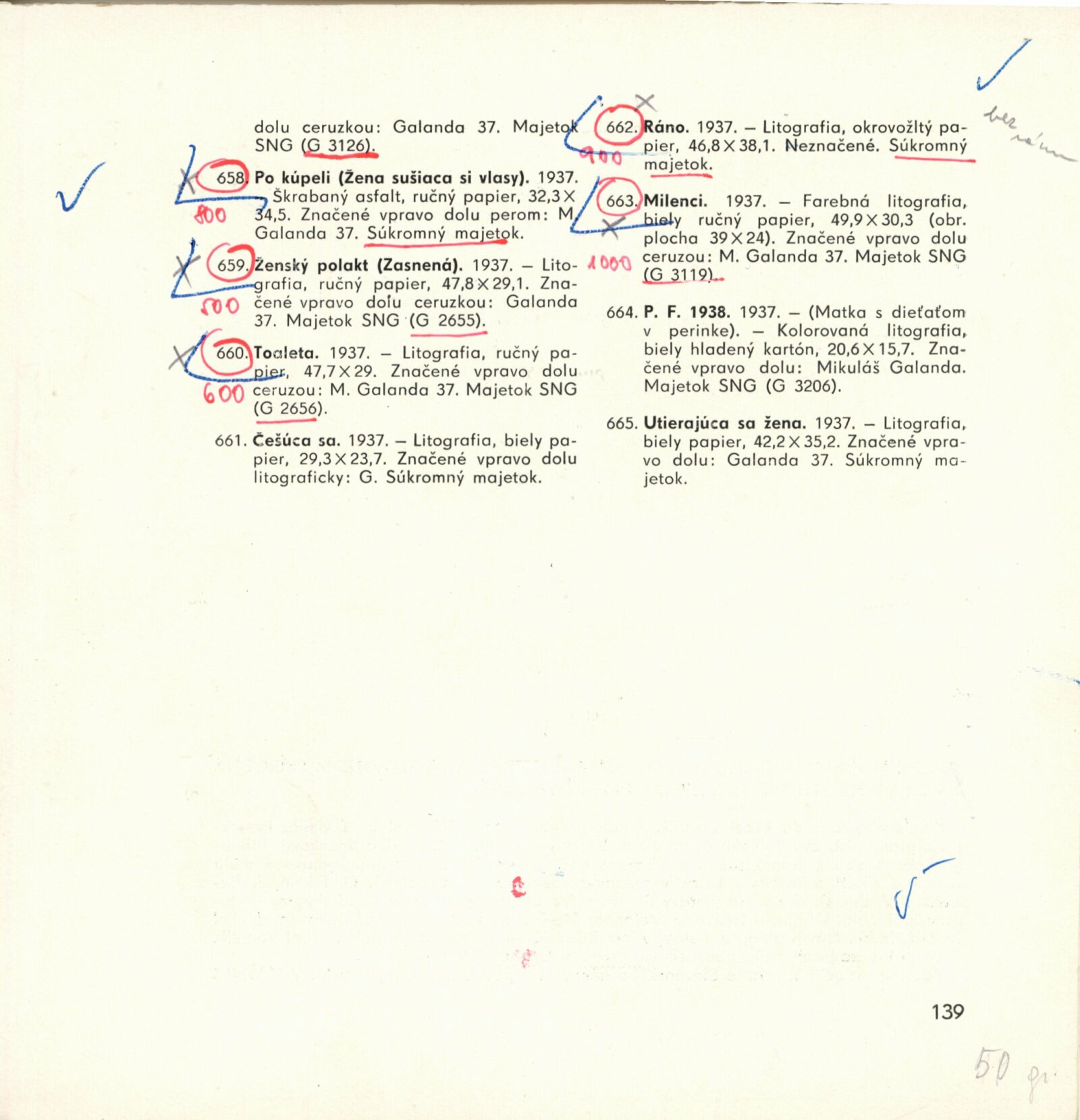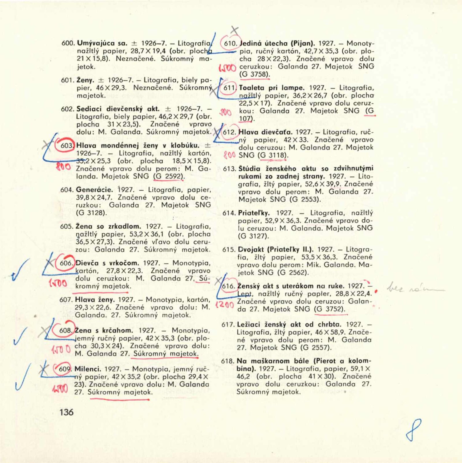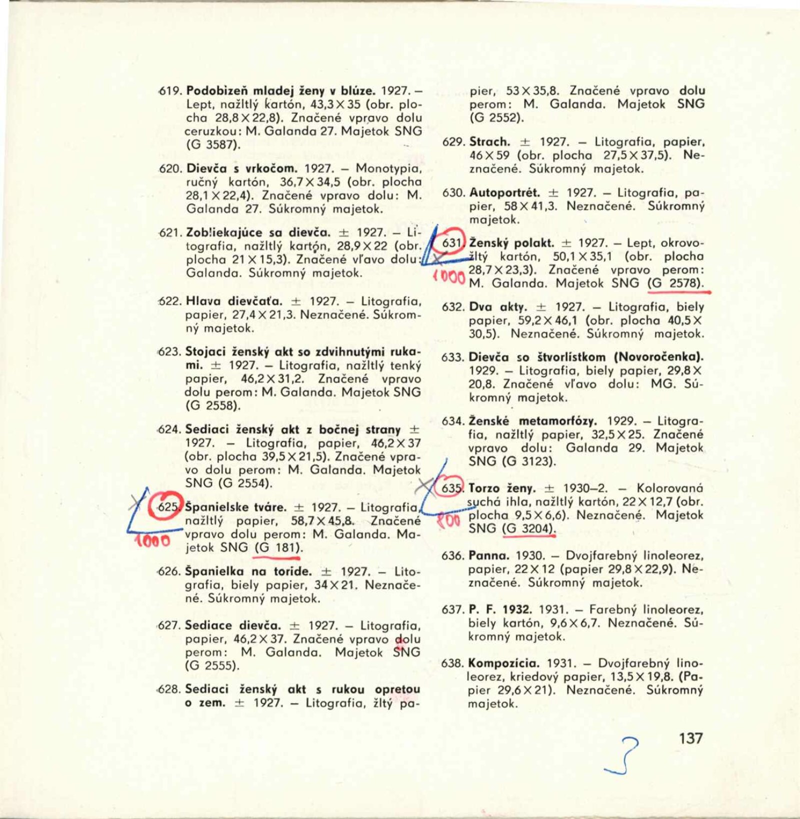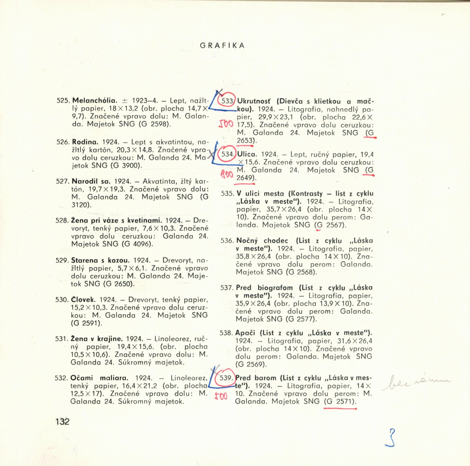 Mikuláš Galanda. Souborné dílo: Dům umění města Brna / Dům pánů z Kunštátu, 19. 1. – 23. 2. 1964 / Převzatý katalog. Dielo Mikuláša Galandu: Slovenská národná galéria Bratislava, září–prosinec 1963 / Text Karol Vaculík, z myšlienok Mikuláša Galandu. – Bratislava: Slovenská národná galéria, 1963. – 139 s., obr., životní data, výstavy, bibliografie, DPK 212. – MZK