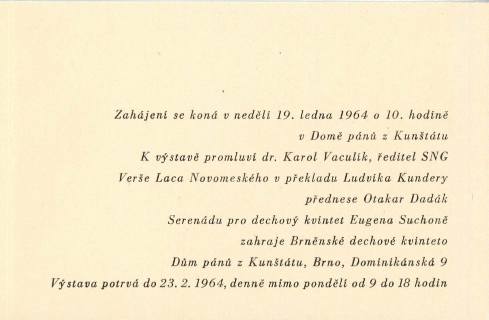 pozvánka, katalog, strojopis básní (L. Novomeský), seznam pojistných exponátů, fotografie děl, korespondence (SNG, Karol Vaculík, Peterajová, DU), reverzy, recenze v tisku