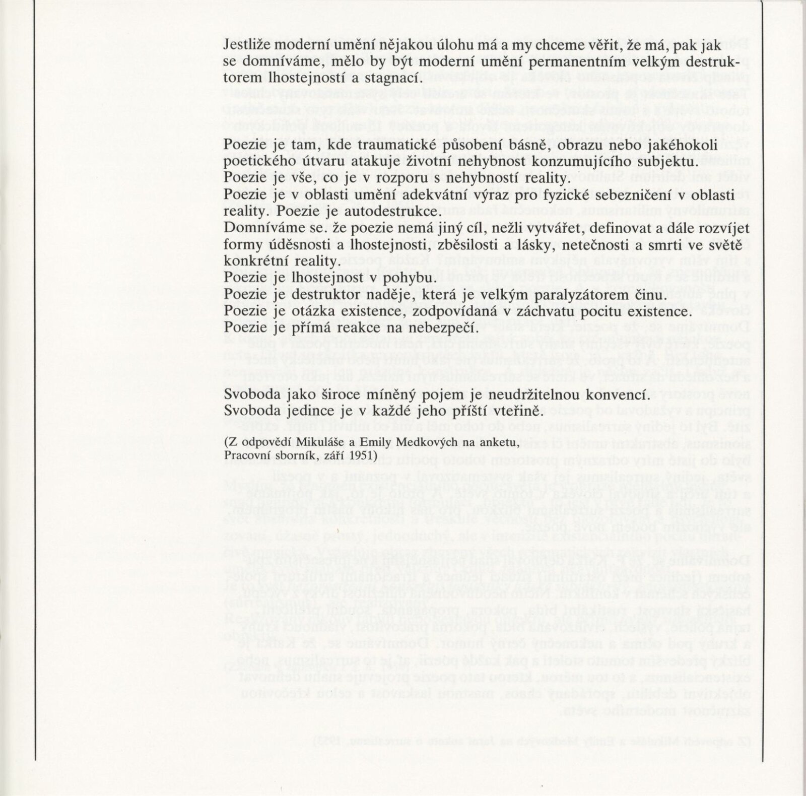 Mikuláš Medek. Malířské dílo 1942–1974: Dům umění města Brna, Galerie Jaroslava Krále, 1. patro, 20. 3. – 20. 5. 1990 / Text: Ivan Medek. – Brno: DUmB, 1990. – [50] s., obr. / Mikuláš Medek. Malířské dílo 1942–1974: Dům umění města Brna, Galerie Jaroslava Krále, 1. patro, 20. 3. – 20. 5. 1990 / Text: Antonín Hartmann. – Brno: DUmB, 1990. – [22] s., obsahuje životopis, seznam výstav, zastoupení ve sbírkách, seznam ilustrací, DU 883. – MZK; MG