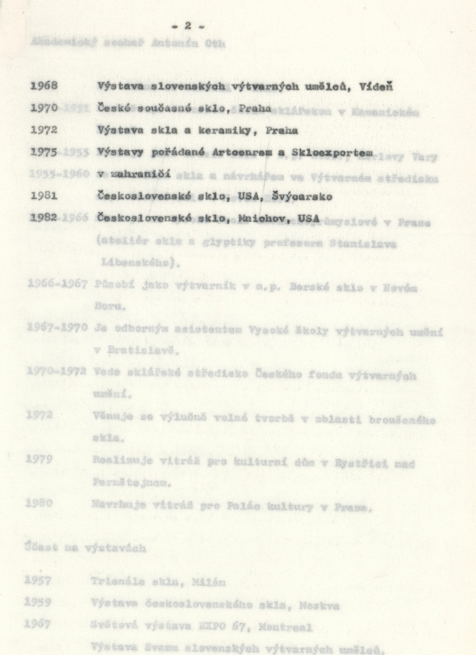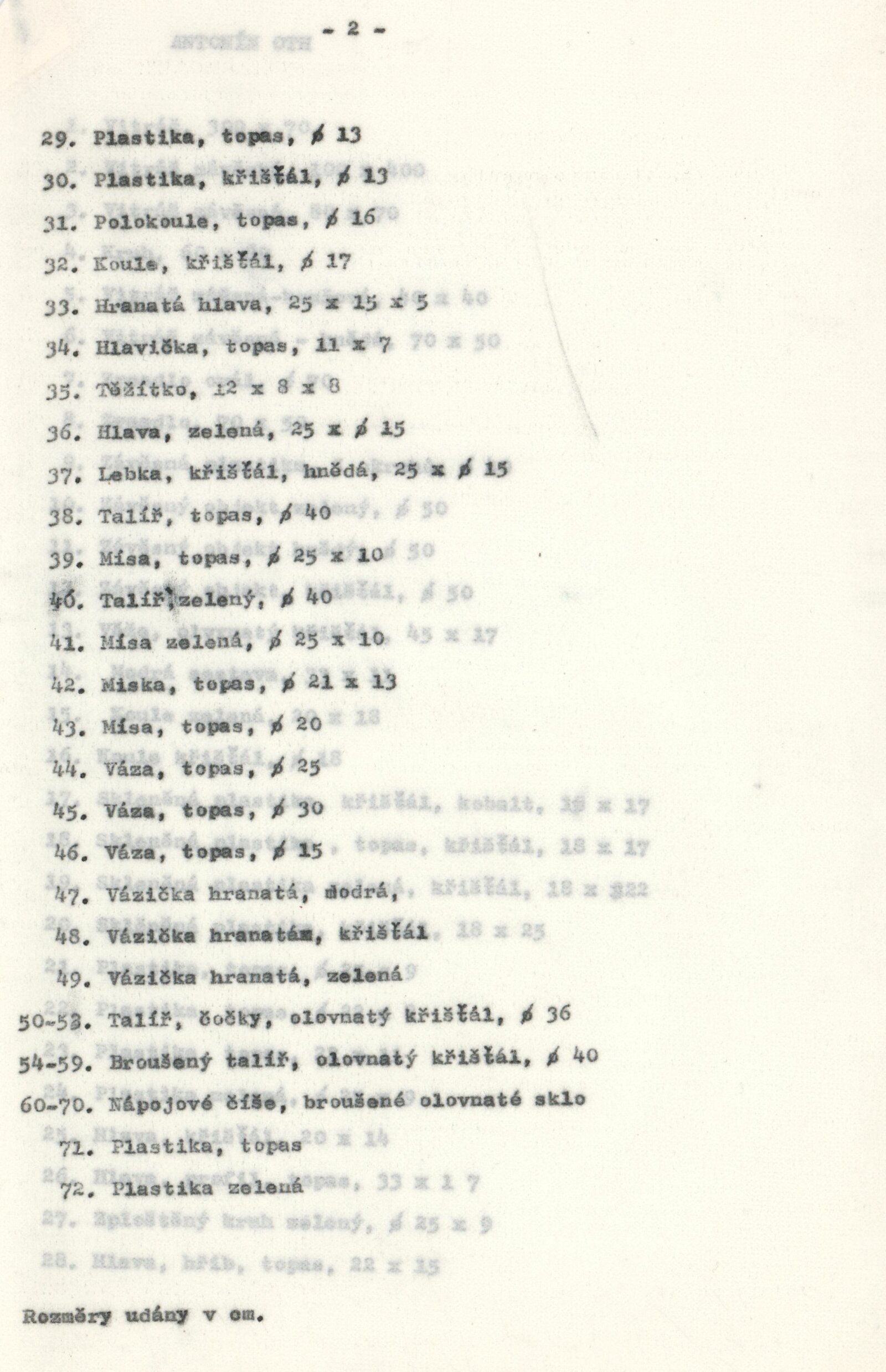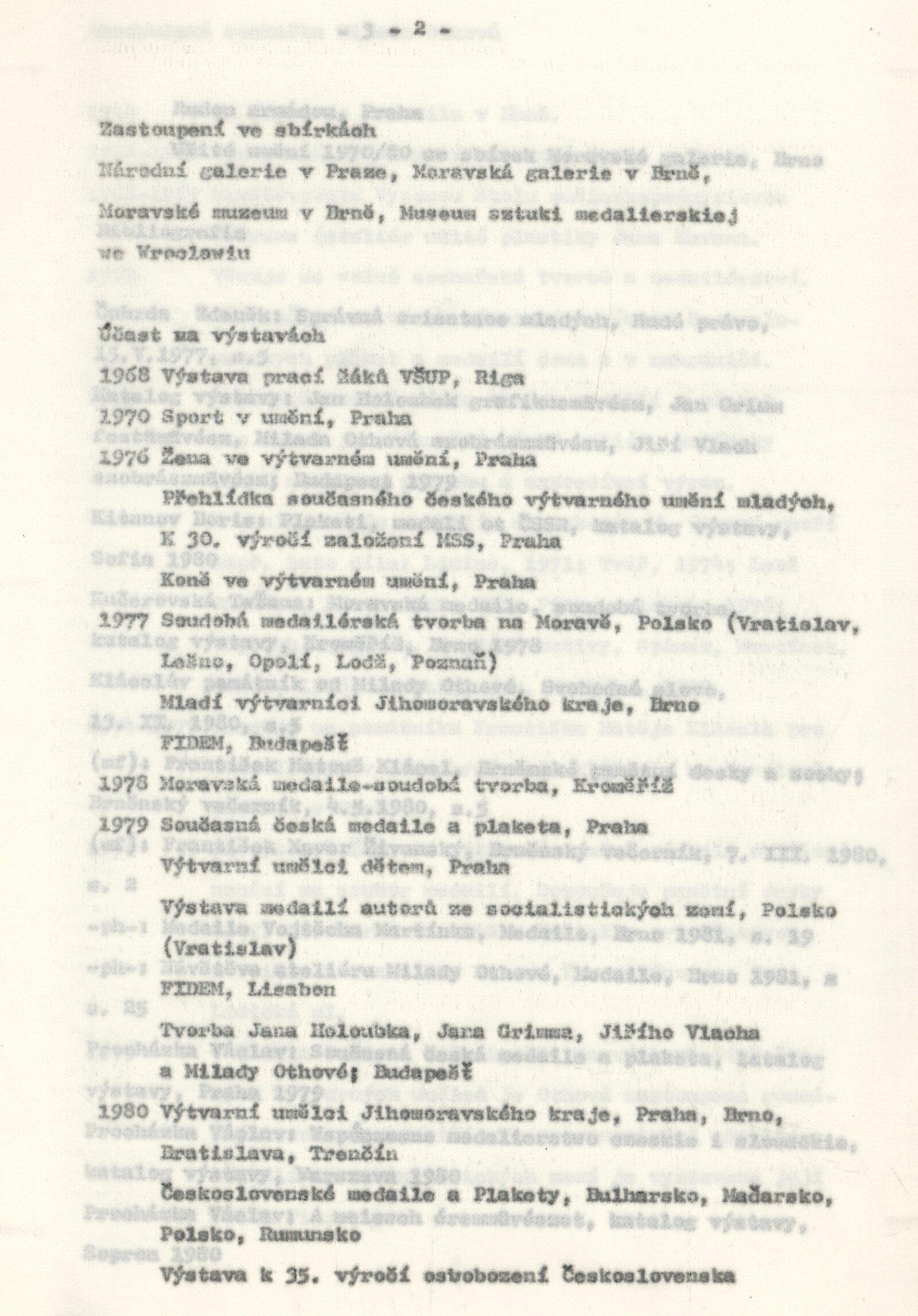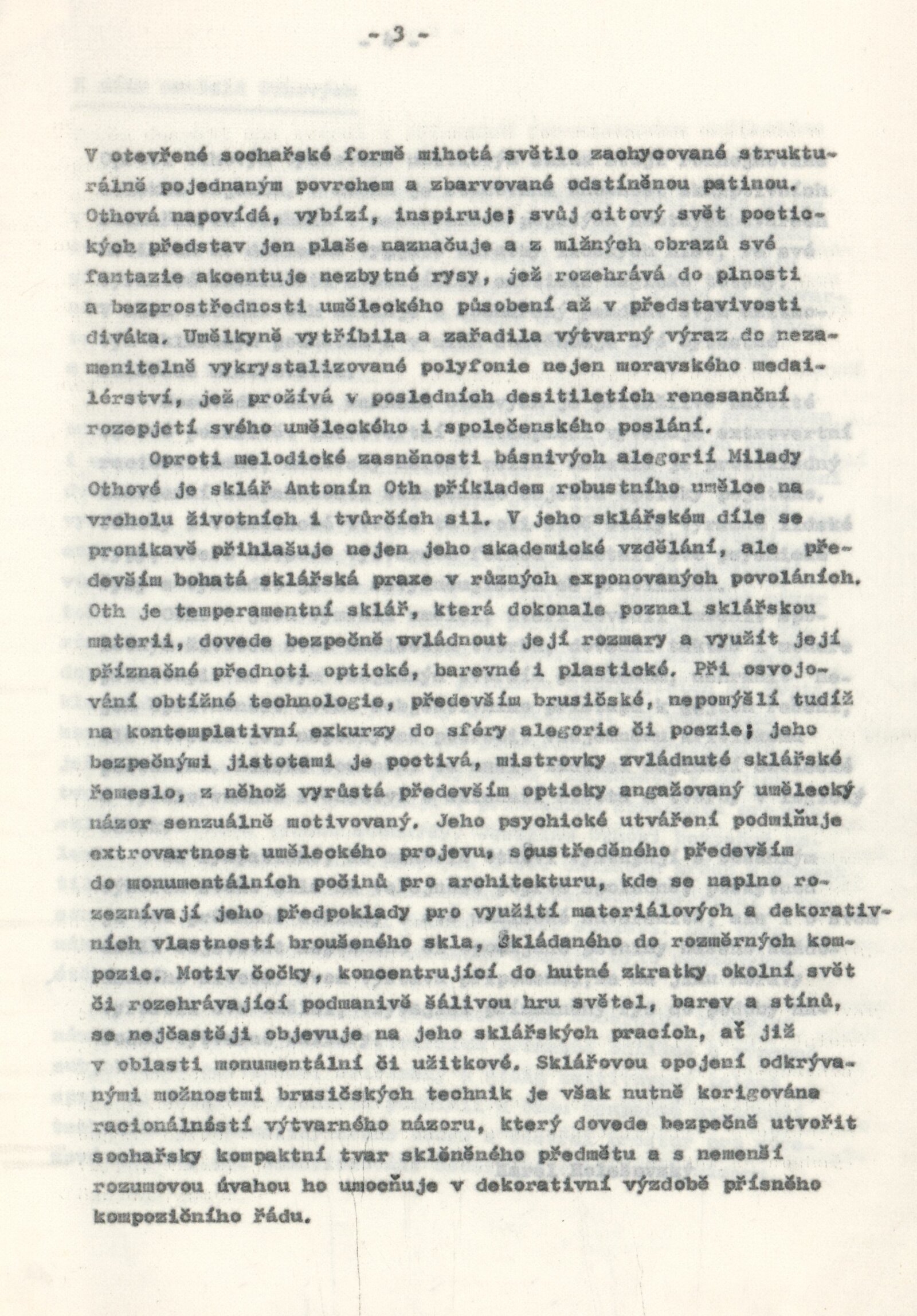 pozvánka, katalog, strojopis, počet vystavených děl, pojistný seznam, provozní korespondence, dopis z Hannoveru – Textilkunst, text Ludmily Kybalové (NJ), žádosti o zapůjčení, potvrzení převzetí vystavených děl, žádost o výstavu manželů Othových a Ulmových, text Evy Dobšíkové o Miladě a Antonínovi Othových, recenze v tisku