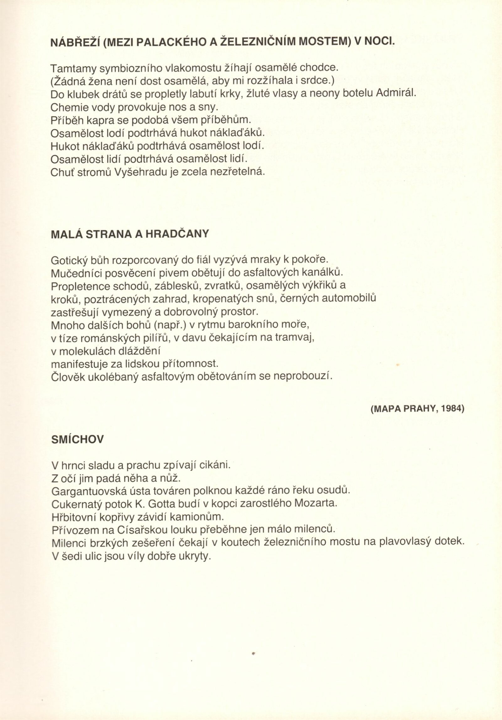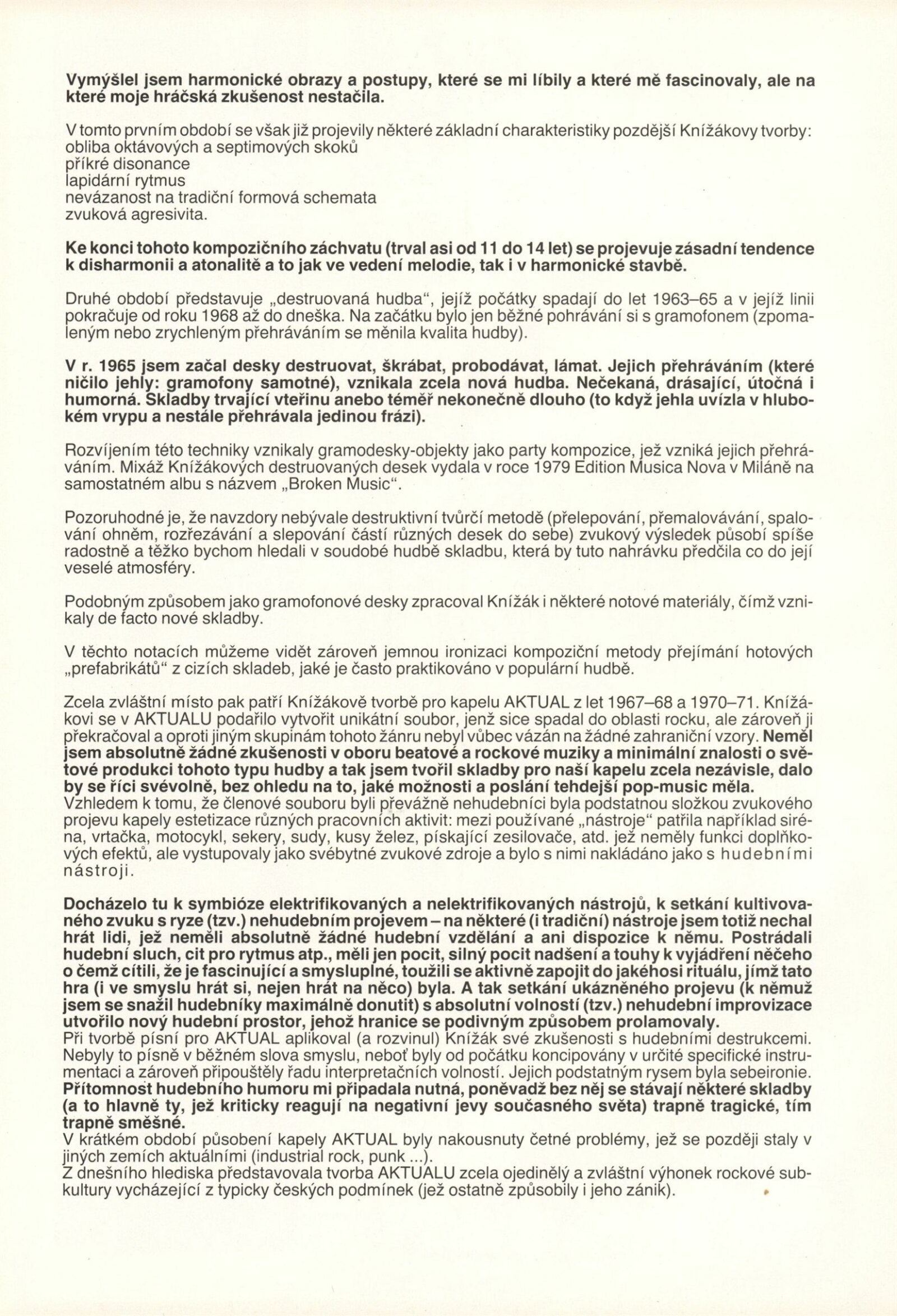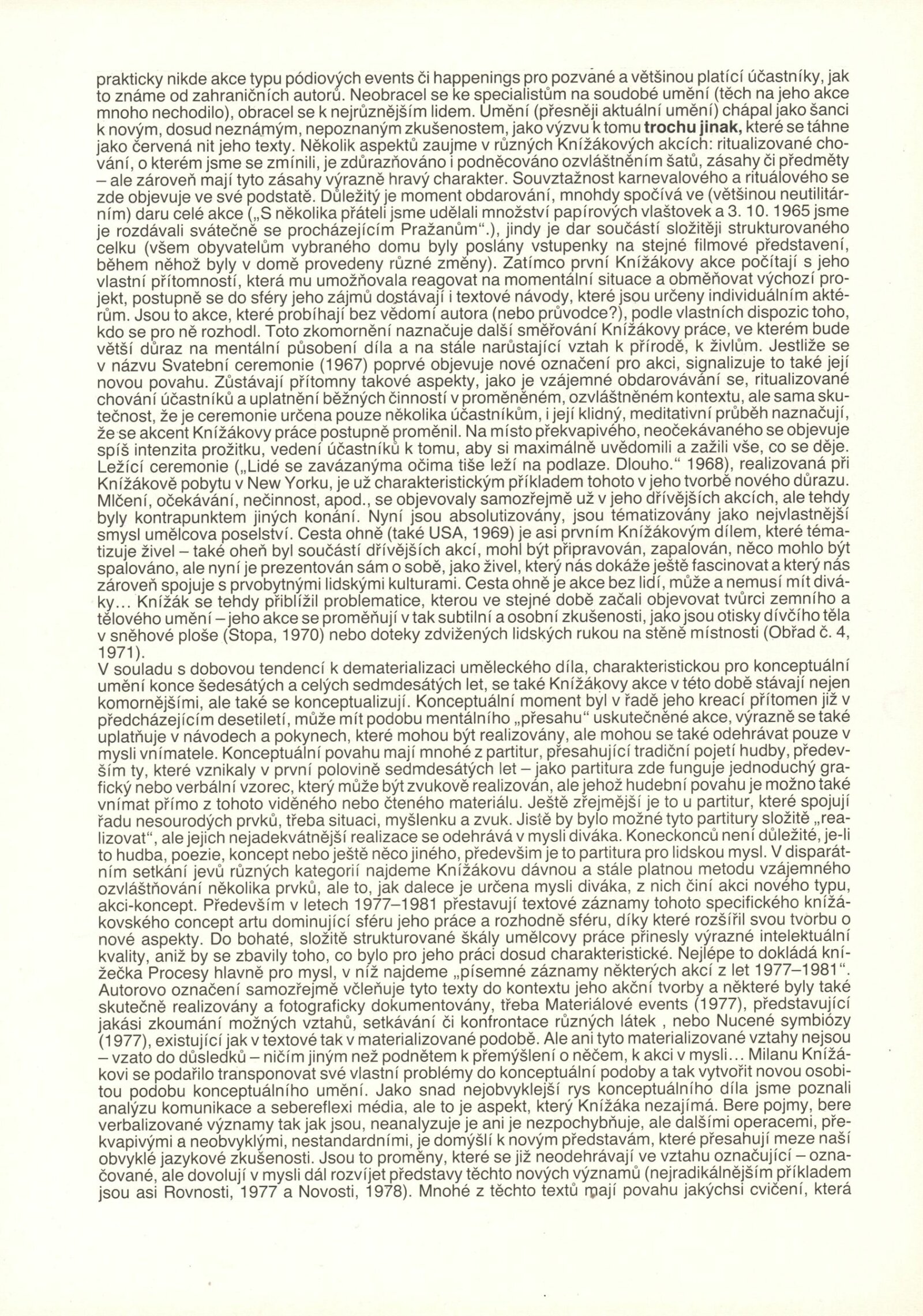 Milan Knížák. 1953–1988: Dům umění / Dům pánů z Kunštátu, 12. 4. – 21. 5. 1989 / Texty: Petr Rezek, Jiří Valoch, Jana Ševčíková, Jiří Ševčík, J. Štastný, Dibra Zbarník, Alice Štefančíková, Helena Jarošová, Hugo Schreiber, Antonín Dufek, Milan Knížák. – Brno: DUmB, 1989. – 170 s., obr., životní data, výstavy, bibliografie, DPK 918. – MZK; MG