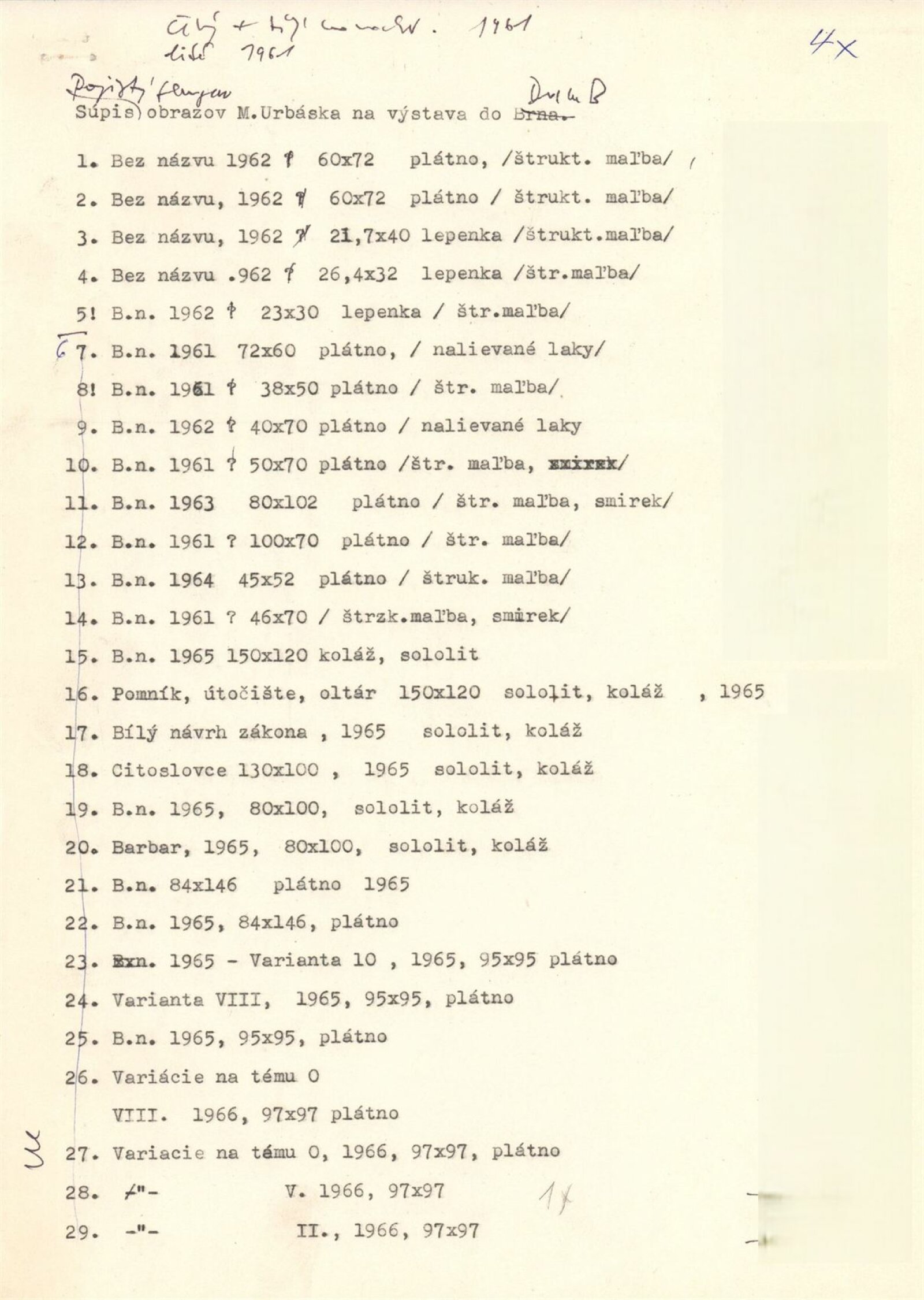 pozvánky, katalog, fotografie výstavy strojopis a podklady pro katalog, pojistný seznam, provozní korespondence, žádost a potvrzení o konání výstavy, recenze v tisku, pozvánka DU Opava, digitalizovaný videozáznam z výstavy (VHS)