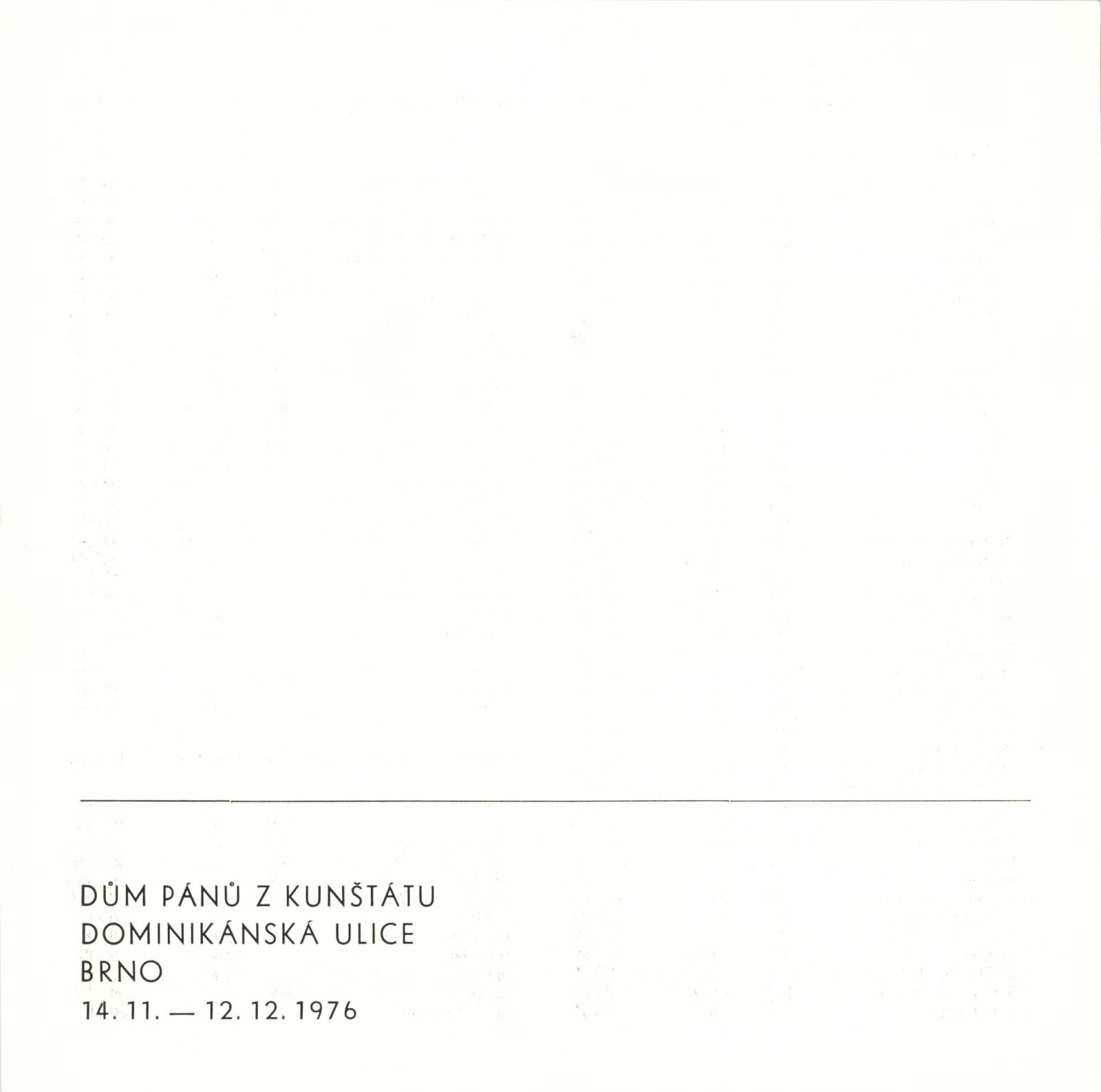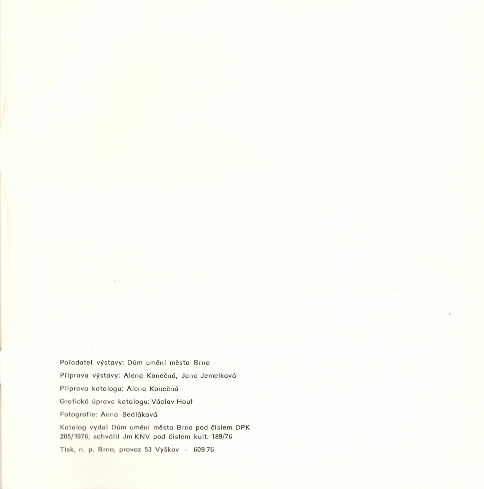 katalog, strojopis textu pro katalog + překlad (AJ, NJ, RJ), provozní korespondence (termín výstavy), reverzy, prezenční listina tisk. konference (12. 11. 1976), žádost o povolení výstavy, recenze v tisku