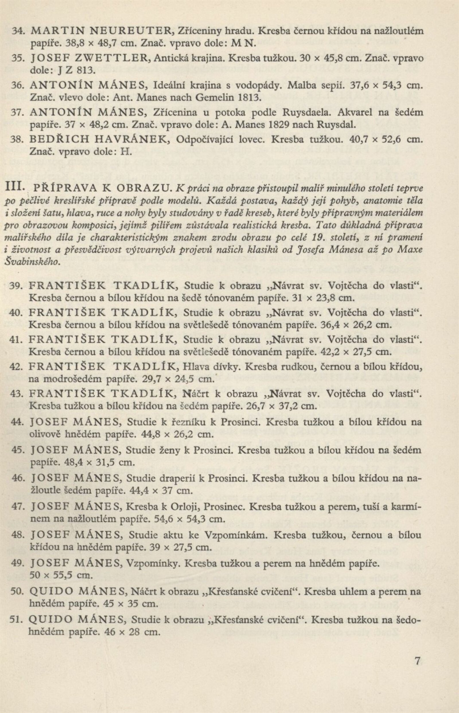 Mistři české kresby: Dům umění, 19. 6. – 26. 7. 1953 / Převzatý katalog. Mistři české kresby: Národní galerie / Dům výtvarného umění v Praze, 3. 2. – 18. 3. 1951 / Text: Vladimír Novotný. – Praha: Dům výtvarného umění, 1951. – 22 s., 12 s. obr. příl., DU 183. – MZK