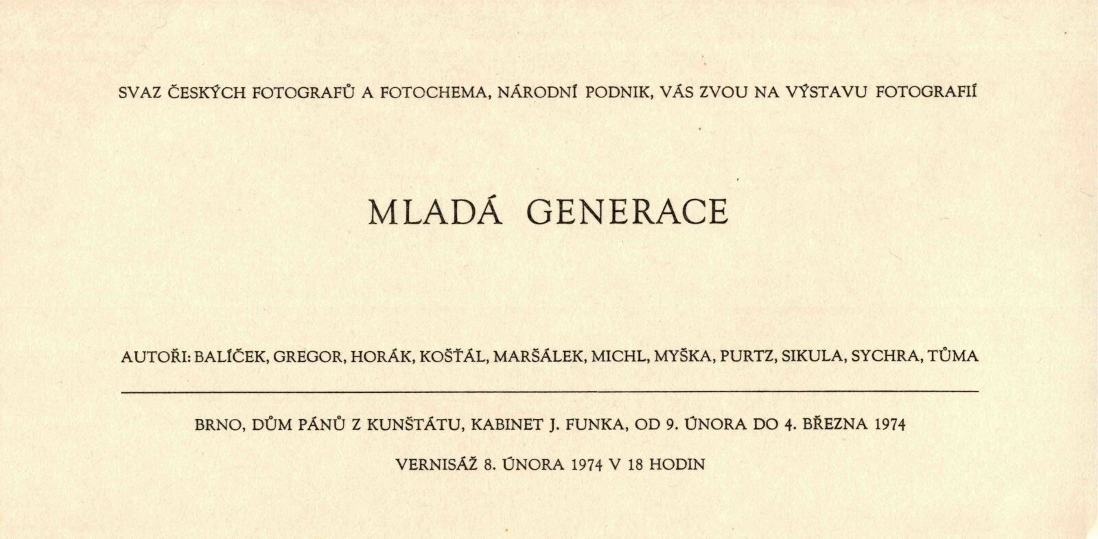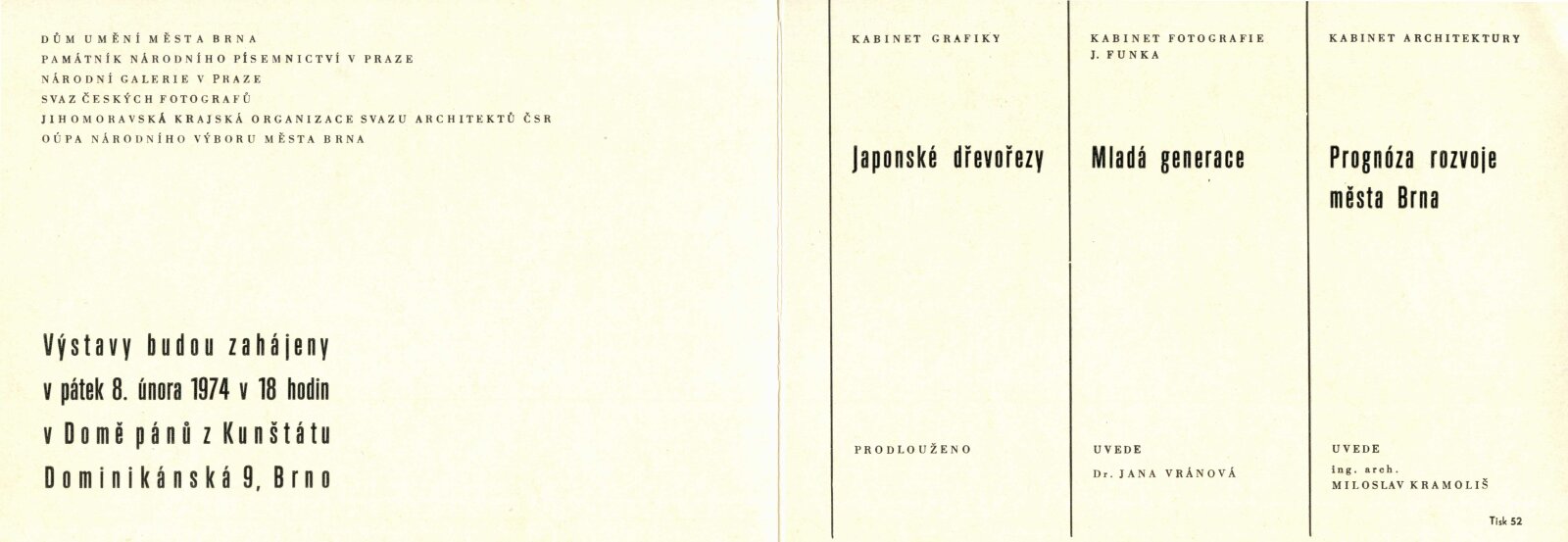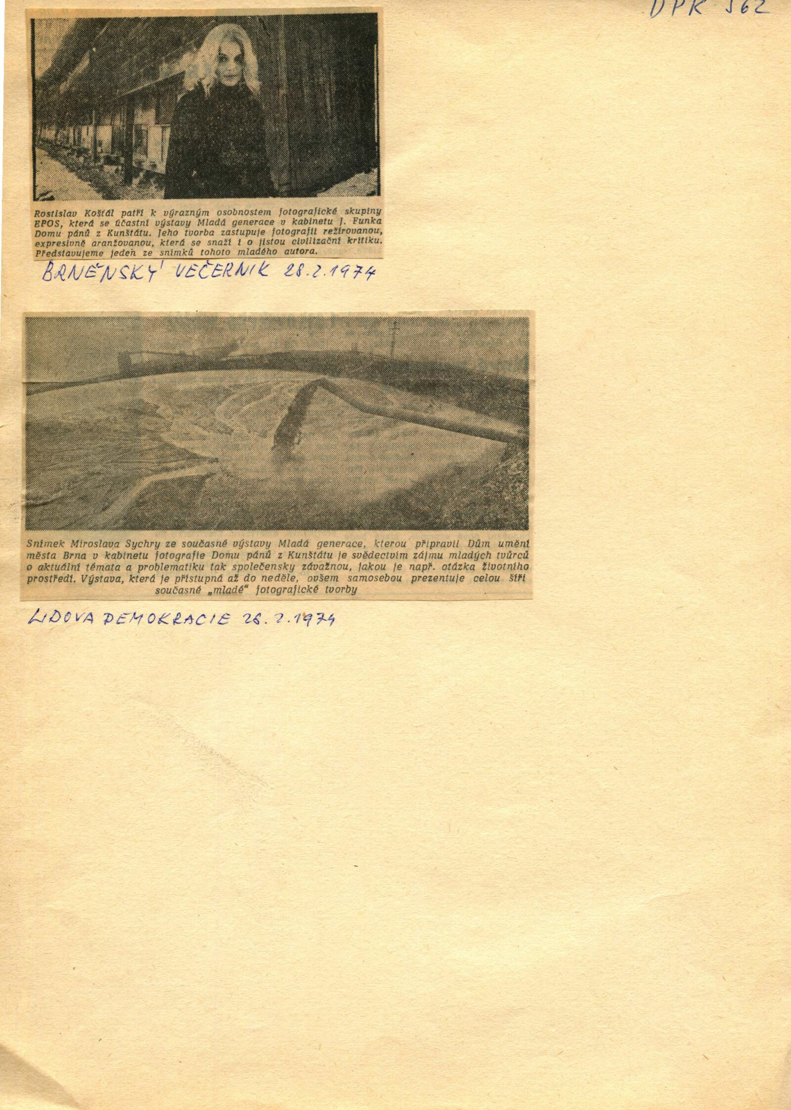 pozvánka, společná pozvánka DPK 599, 562 a 563, strojopis textu pro katalog, provozní korespondence, zápisy z jednání o přípravě výstavy, žádost o výstavní termín (SČF), žádost o povolení výstavy, potvrzení o povolení vystavovat, recenze v tisku