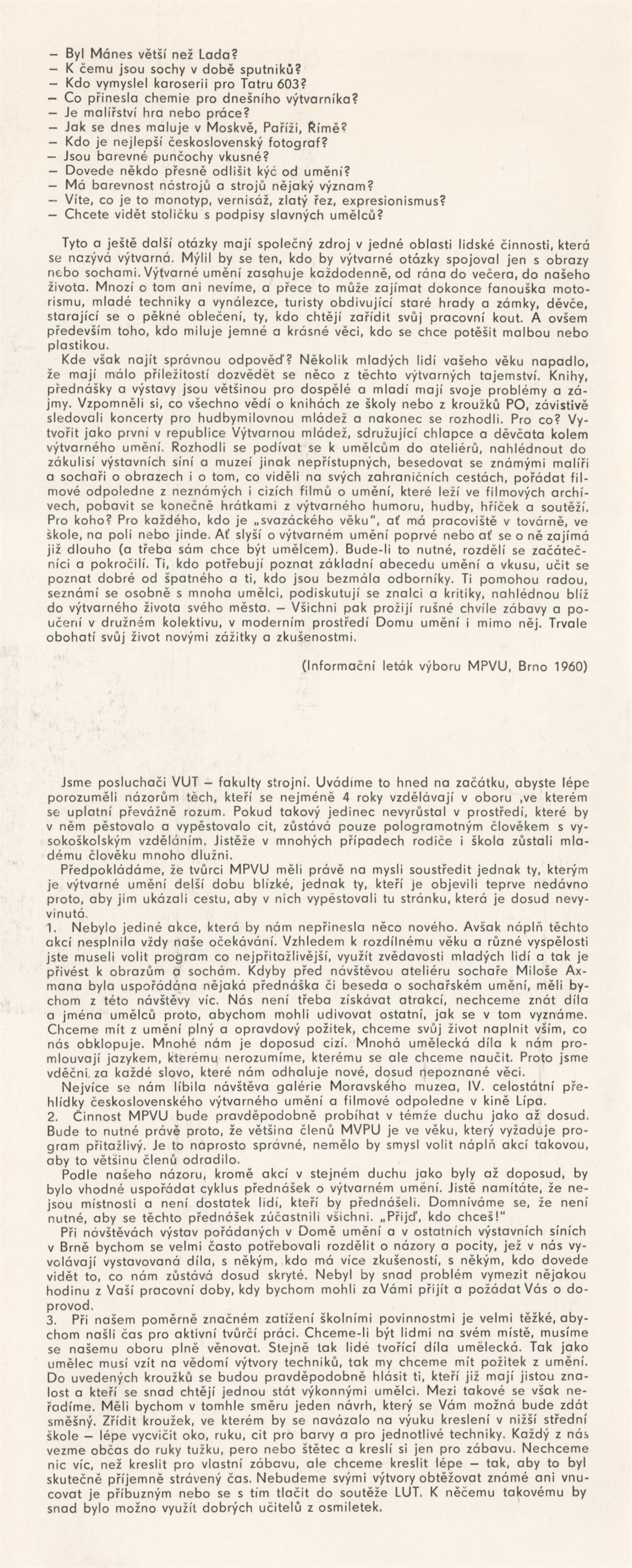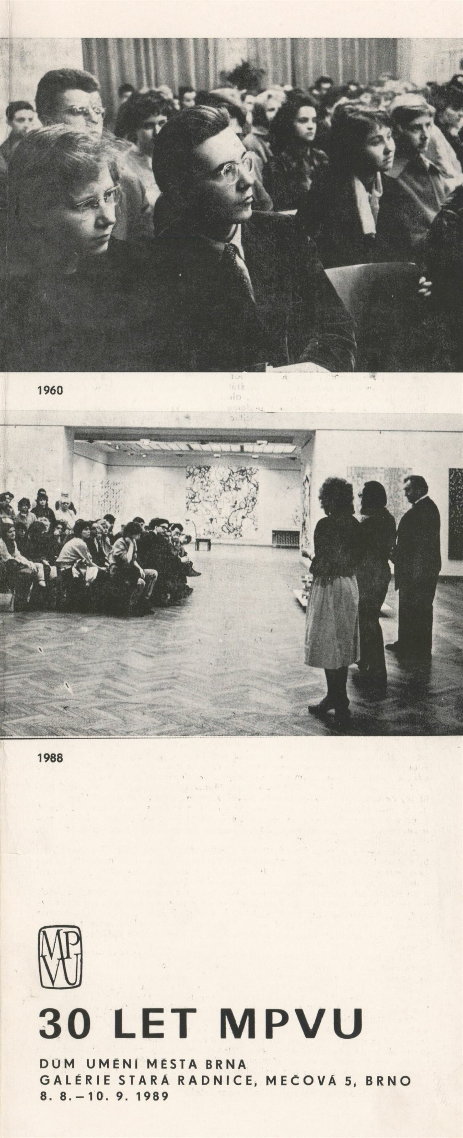 30 let MPVU: Galerie Stará radnice, přízemí, 8. 8. – 10. 9. 1989 / Texty: Bohumil Sekanina a Jaroslav Kavas, Igor Kyselka. – Brno: DUmB, 1989. – skládačka (8 s., obr.), obsahuje seznam všech akcí, GSR 53. – MZK; MG