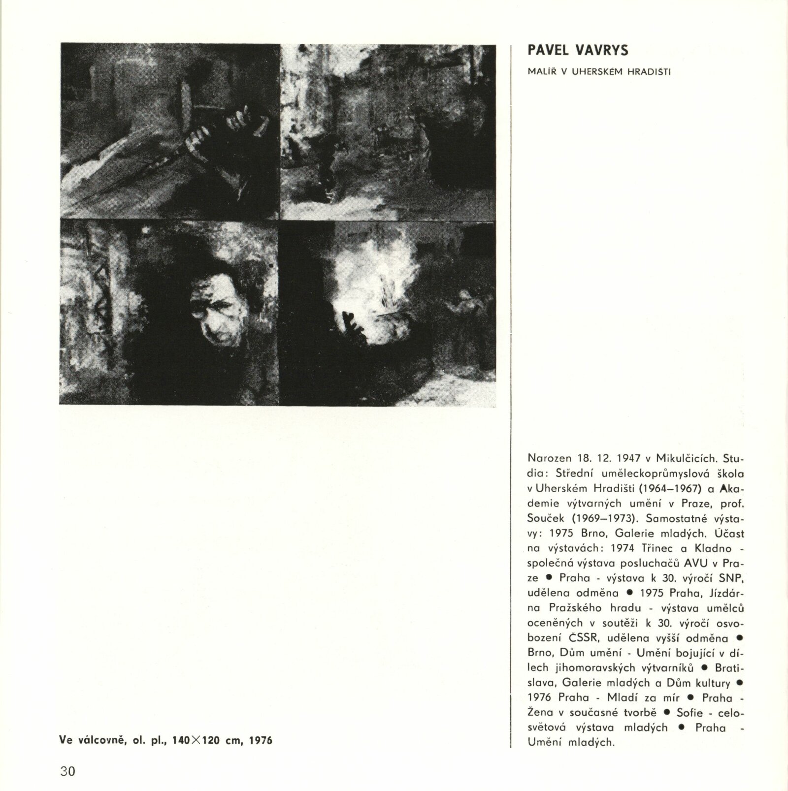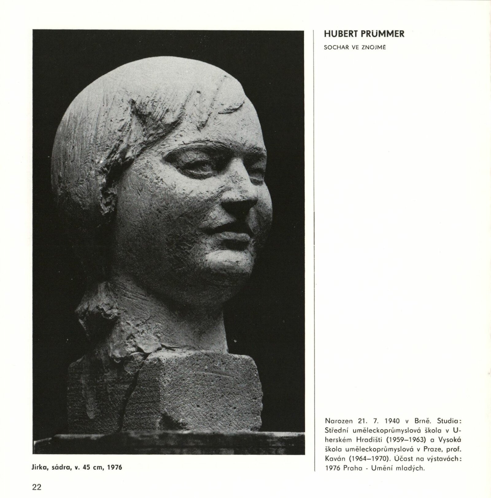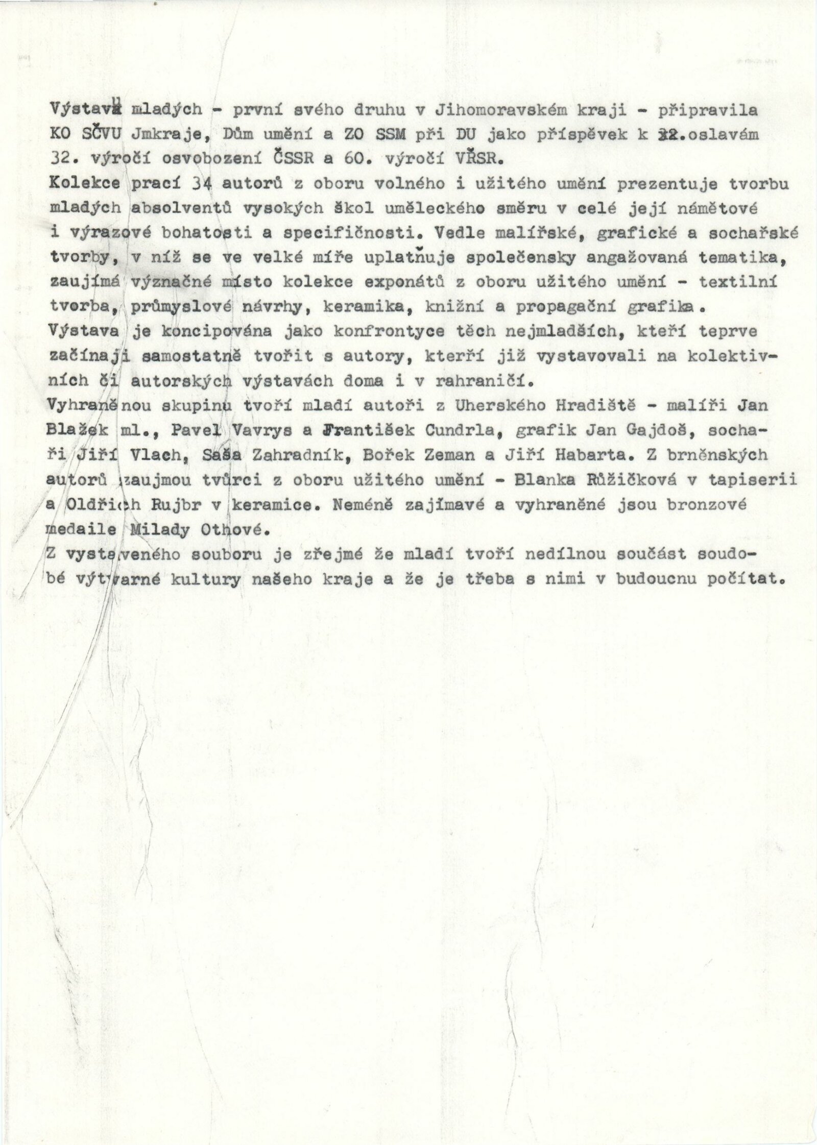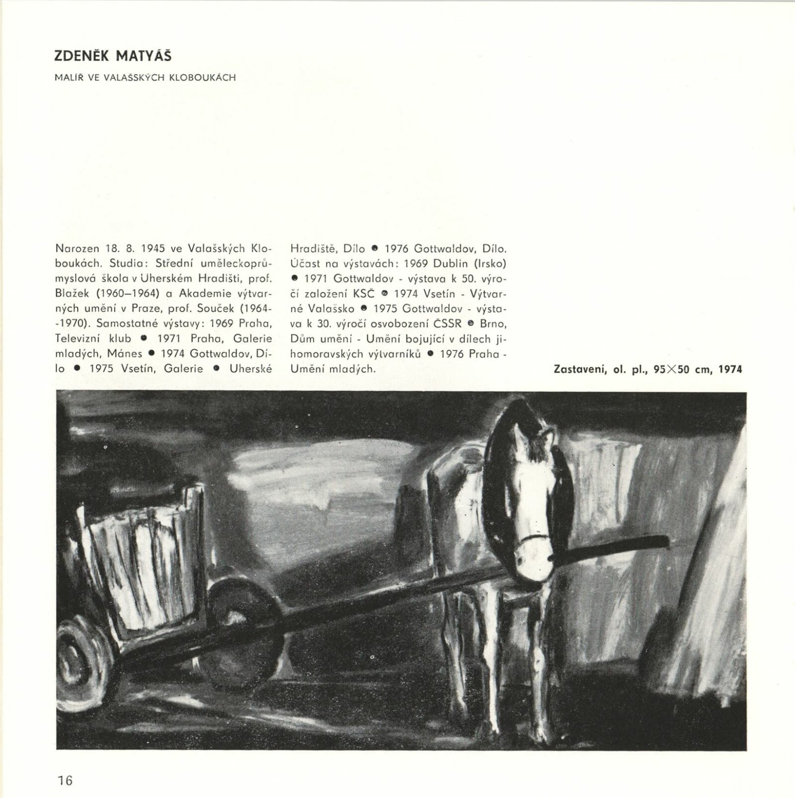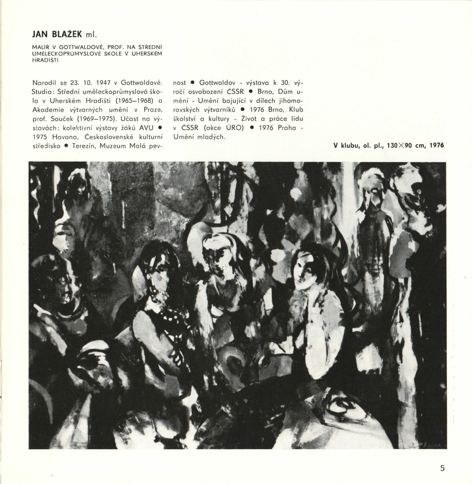 Mladí výtvarníci Jihomoravského kraje. Výstava věnovaná 60. výročí Velké říjnové socialistické revoluce a 32. výročí osvobození města Brna a Československa Sovětskou armádou: Dům umění / Dům pánů z Kunštátu, 17. 4. – 22. 5. 1977 / Text: Jiřina Hockeová. – Brno: DUmB, 1977. – 36 s., obr., seznam vystavených prací 2 s., životopisy, DPK 651. – MG
