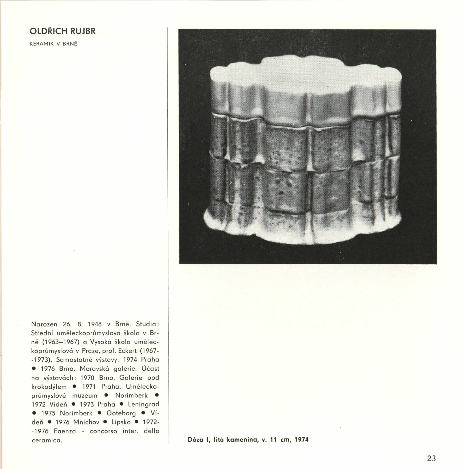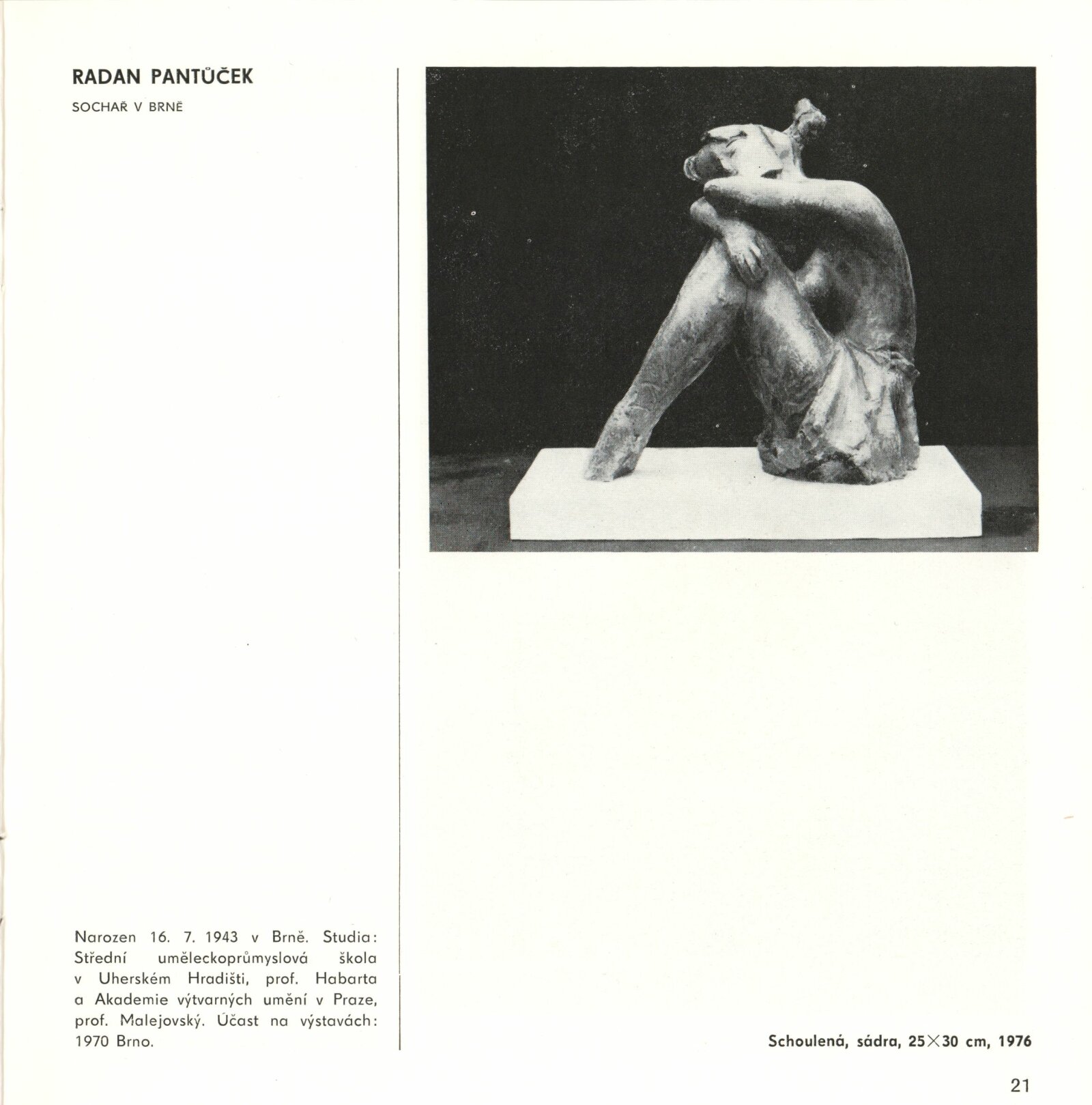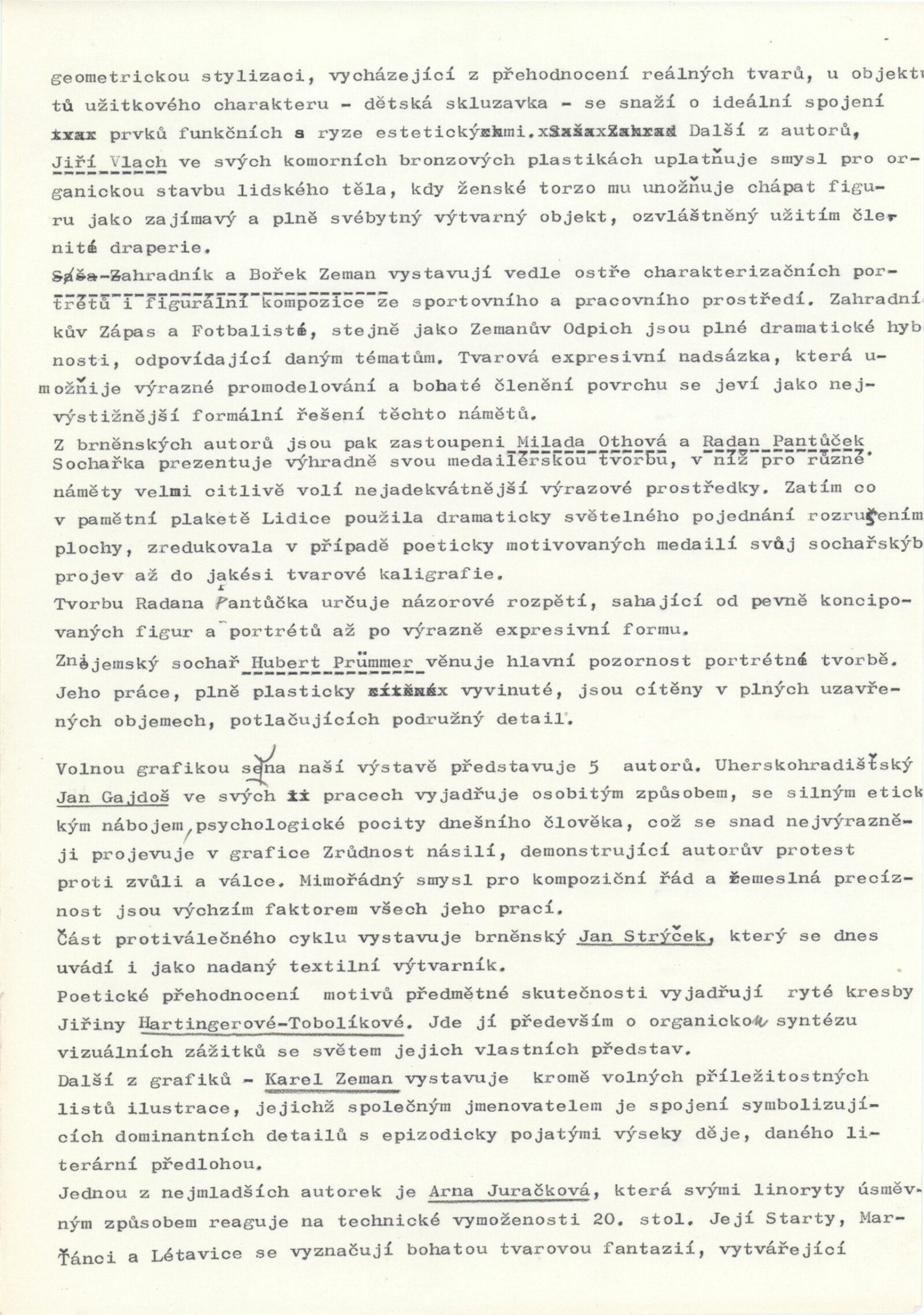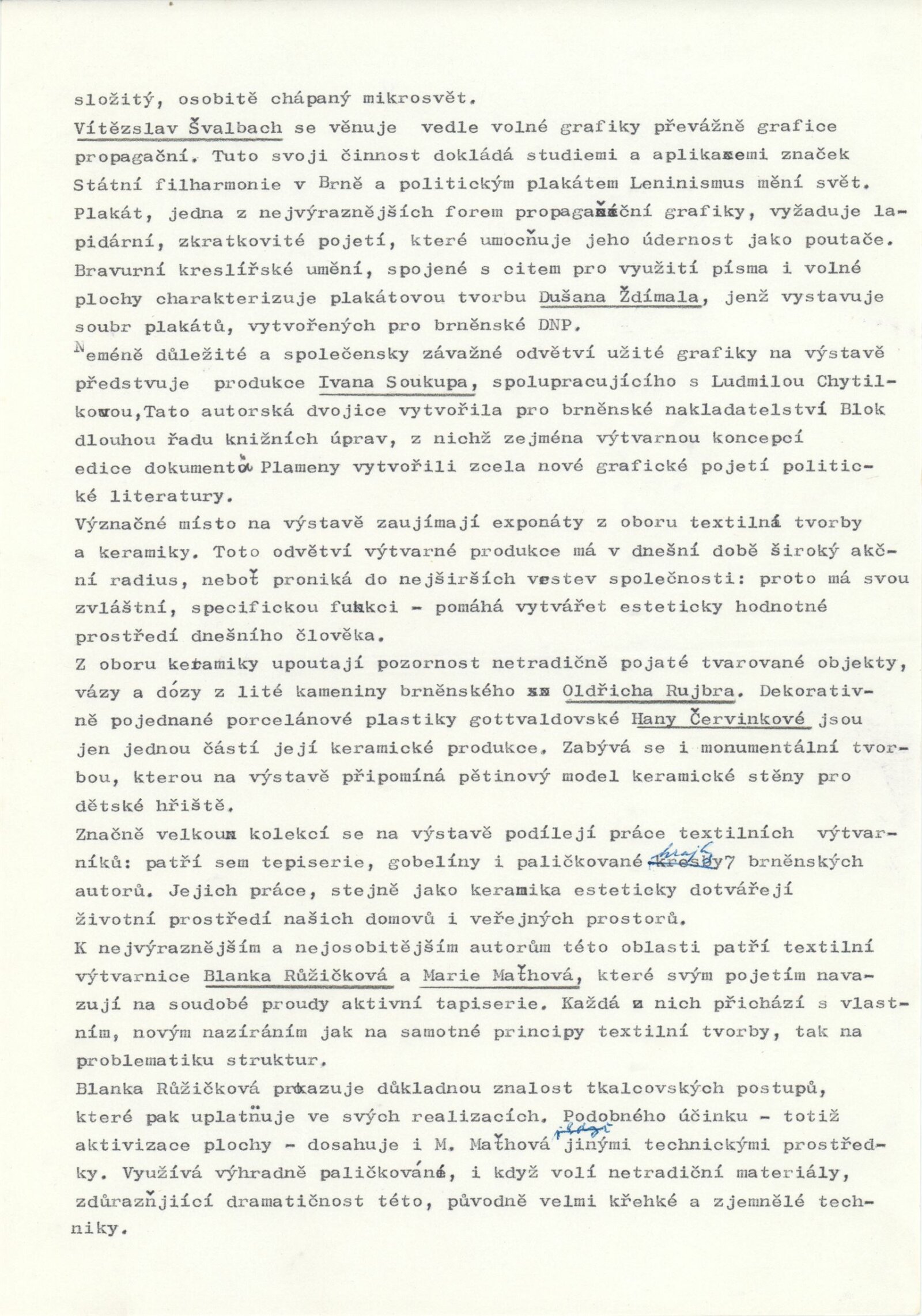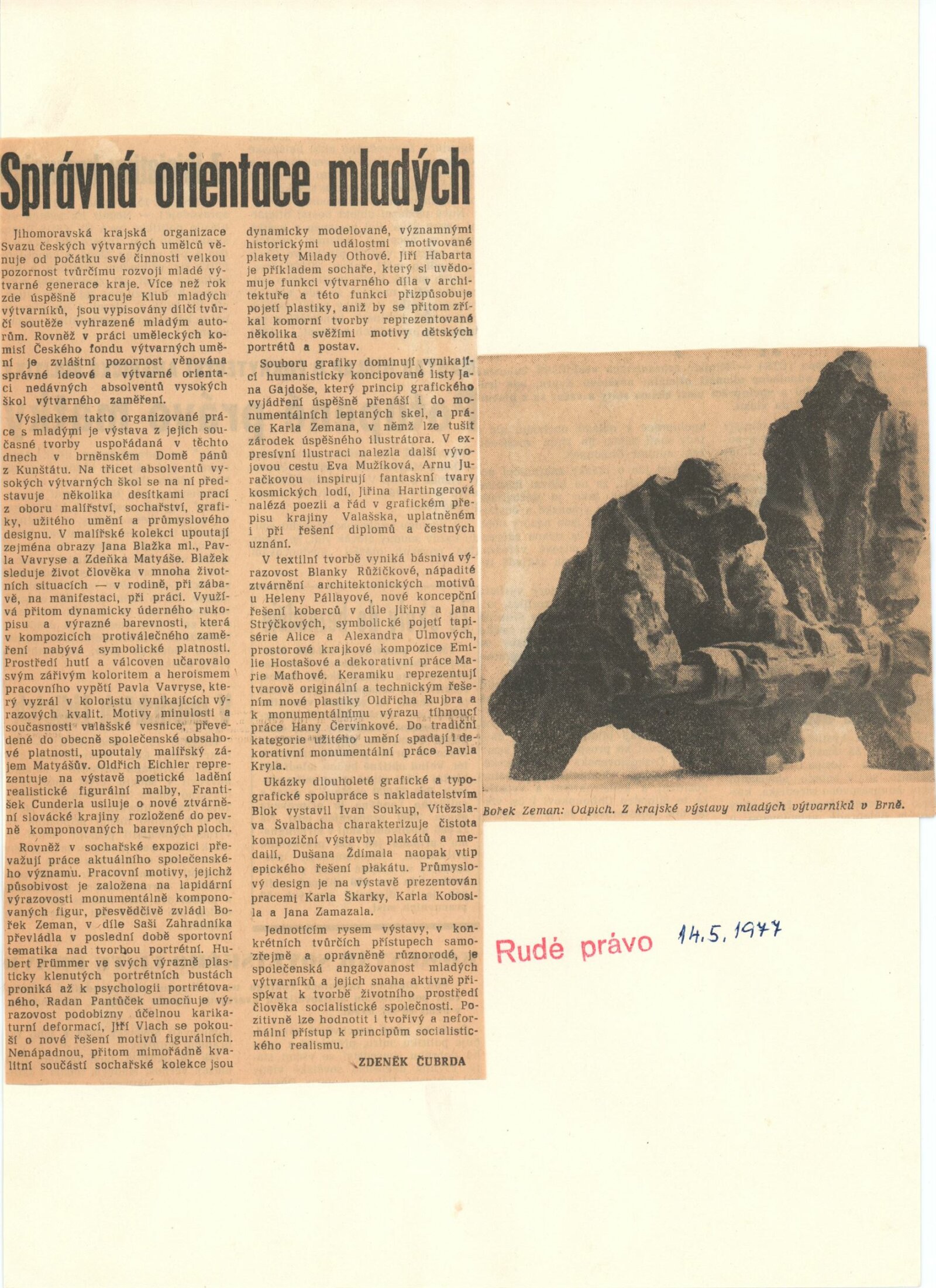 Mladí výtvarníci Jihomoravského kraje. Výstava věnovaná 60. výročí Velké říjnové socialistické revoluce a 32. výročí osvobození města Brna a Československa Sovětskou armádou: Dům umění / Dům pánů z Kunštátu, 17. 4. – 22. 5. 1977 / Text: Jiřina Hockeová. – Brno: DUmB, 1977. – 36 s., obr., seznam vystavených prací 2 s., životopisy, DPK 651. – MG