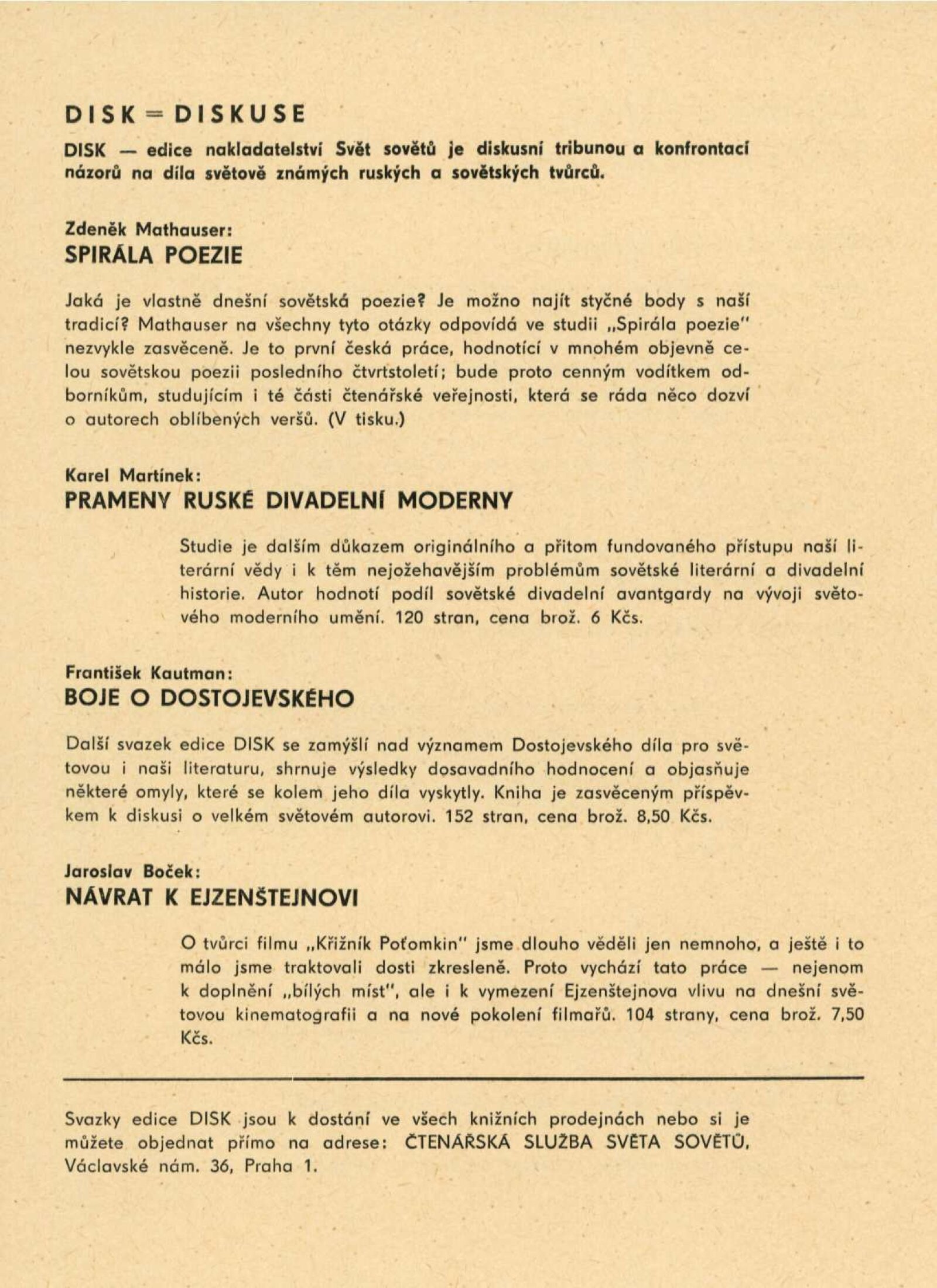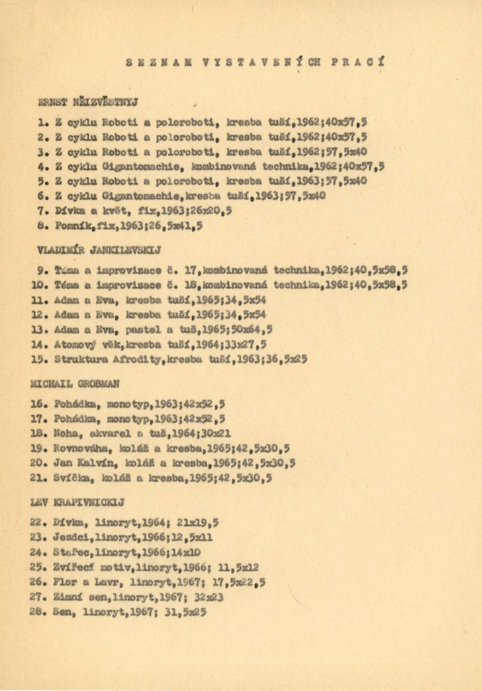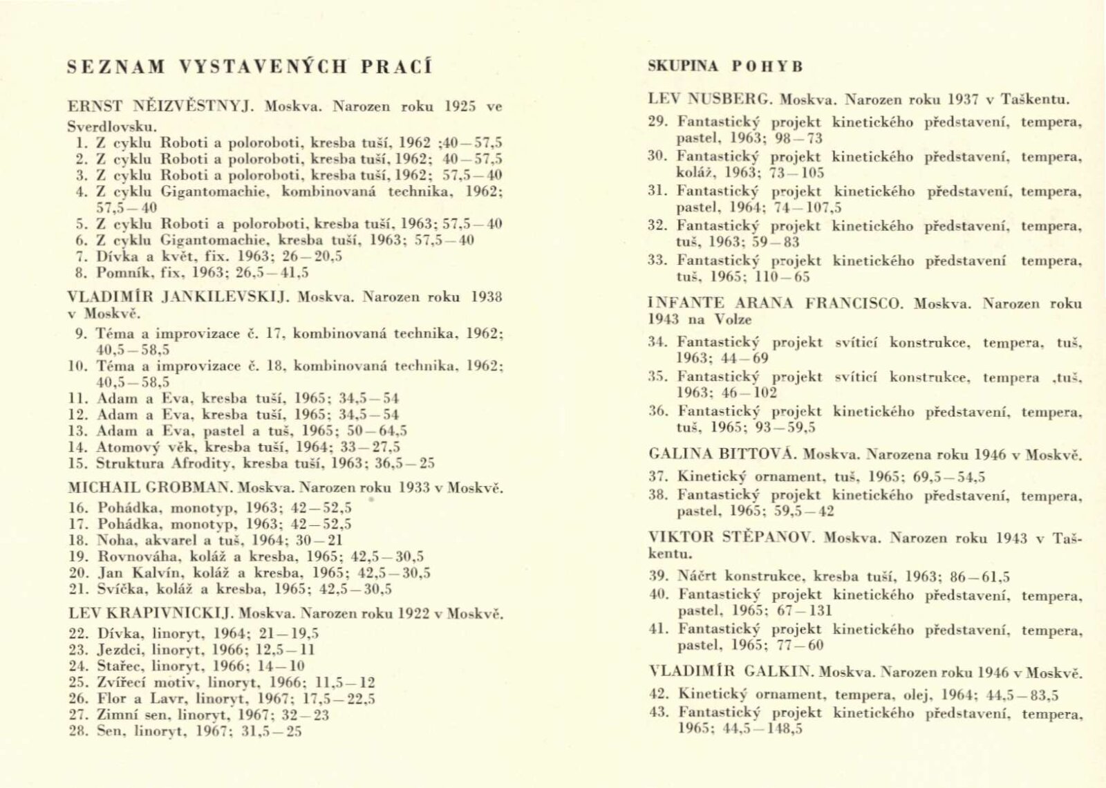 Mladý sovětský experiment: Dům umění Brno, 12. 11. – 10. 12. 1967 / Text: Dušan Konečný. – Brno: DUmB, 1967. – skládačka, 6 s., obr., DU 492