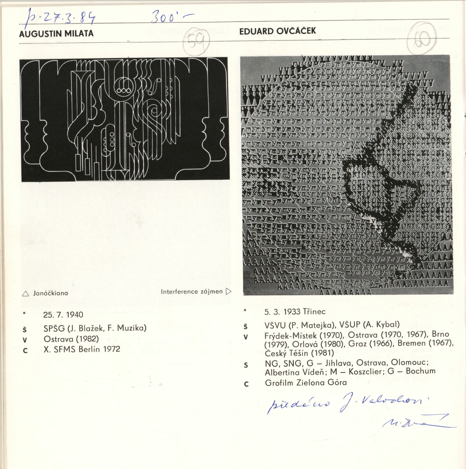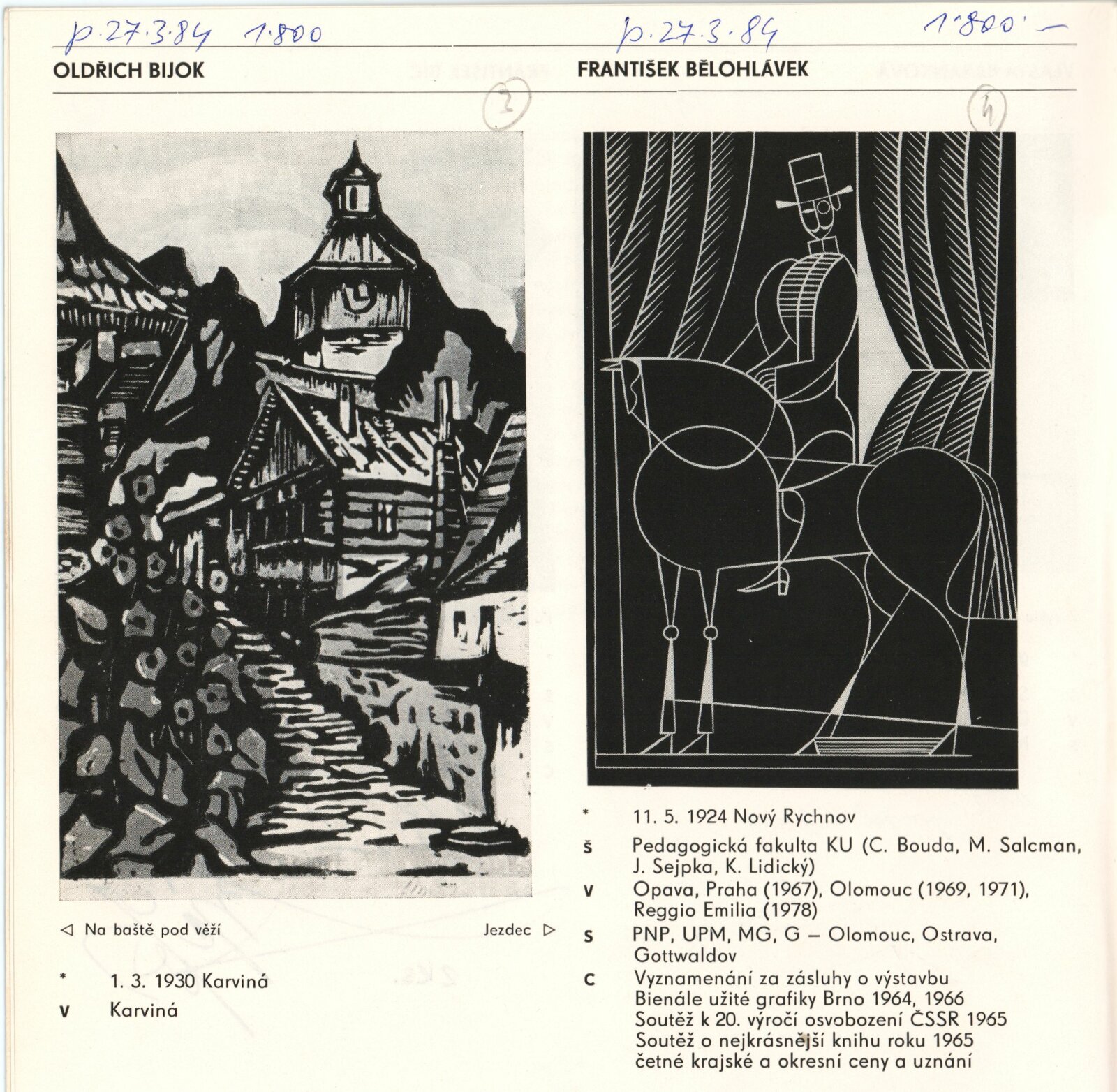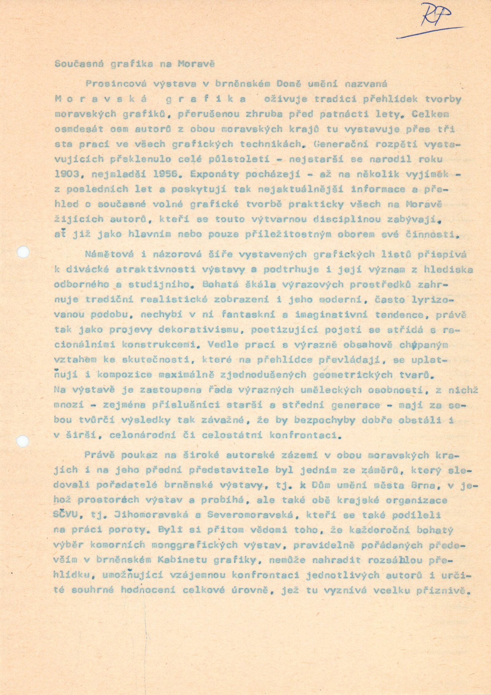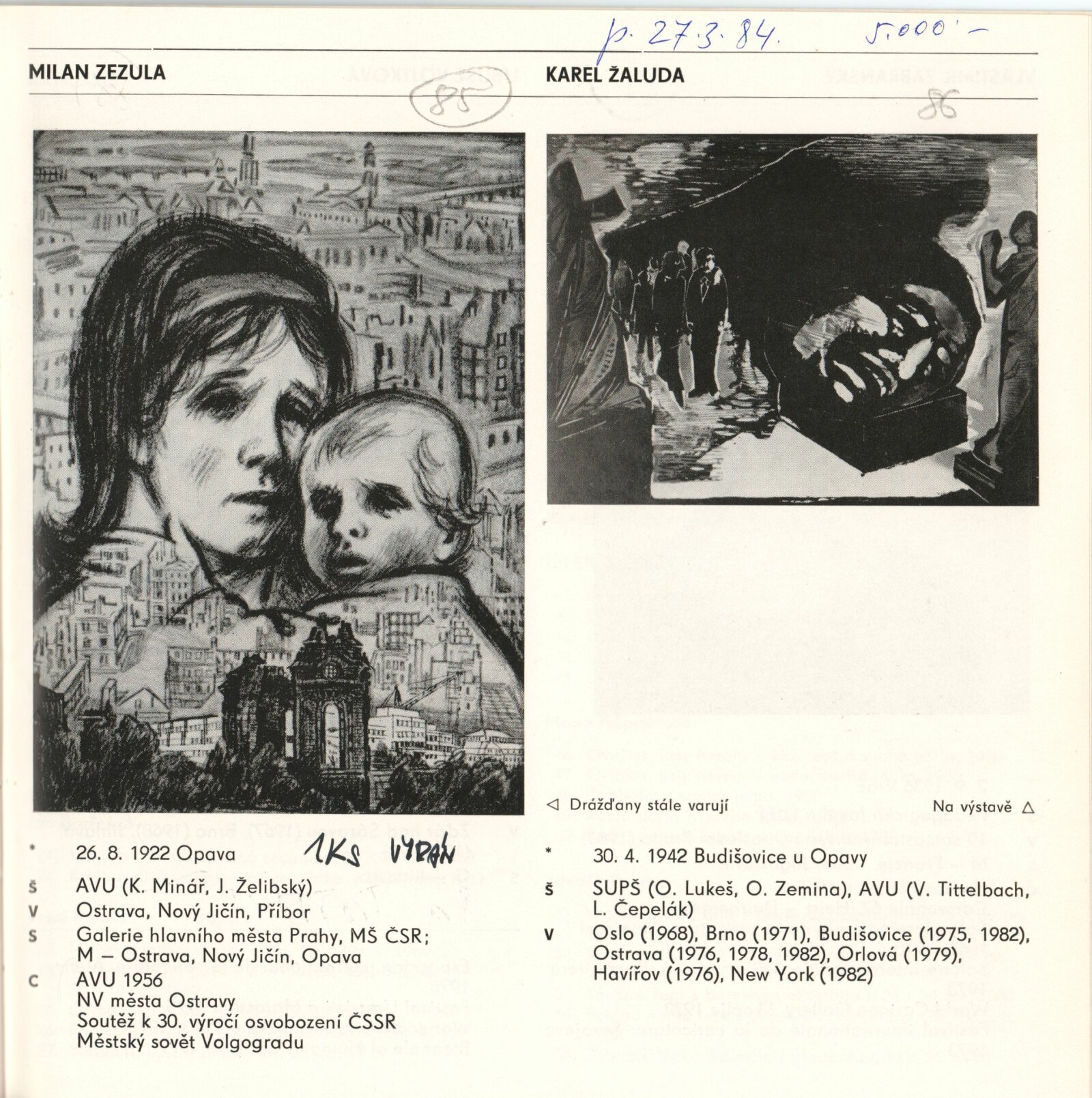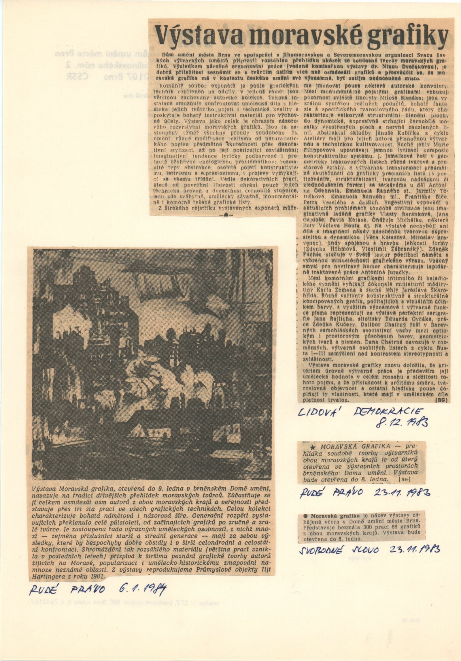 Moravská grafika. Současná tvorba: Dům umění, 22. 11. 1983 – 8. 1. 1984 / Text: Nina Dvořáková. – Brno: DUmB, 1983. – 52 s., obr., životní data vystavujících, DU 772. – MZK