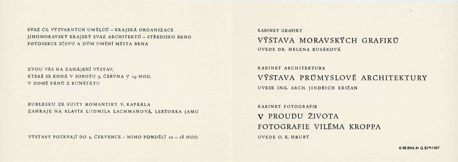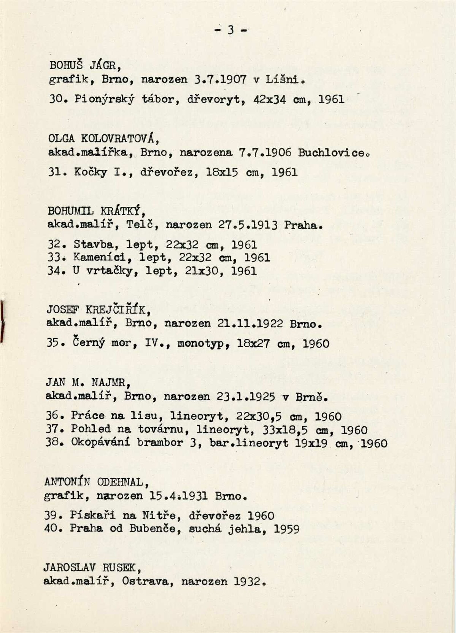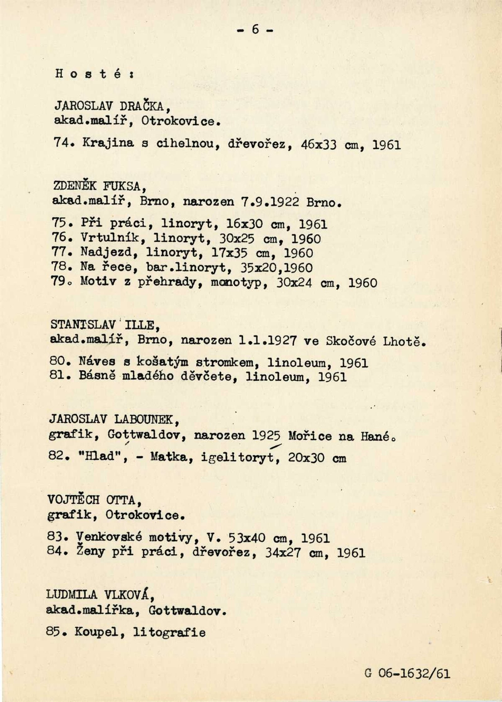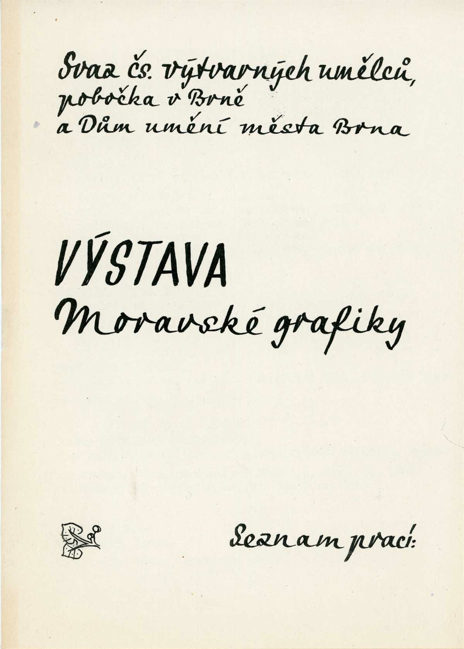 Výstava moravské grafiky: Dům umění města Brna / Dům pánů z Kunštátu, 25. výstava Kabinetu grafiky, 3. 6. – 2. 7. 1961 / Brno: DUmB, 1961. – 6 s., DPK 113