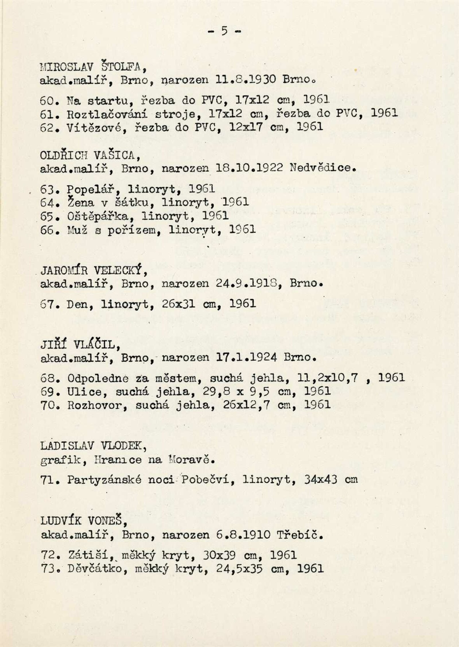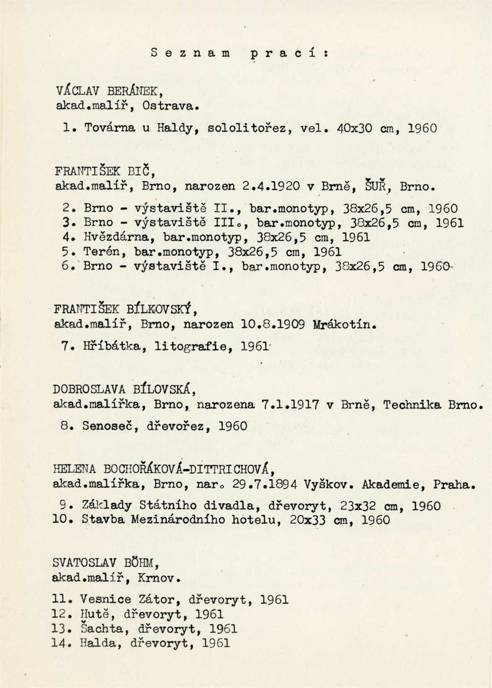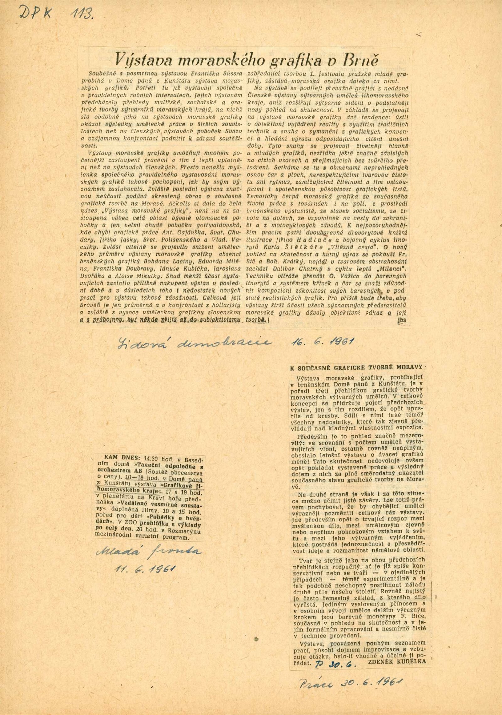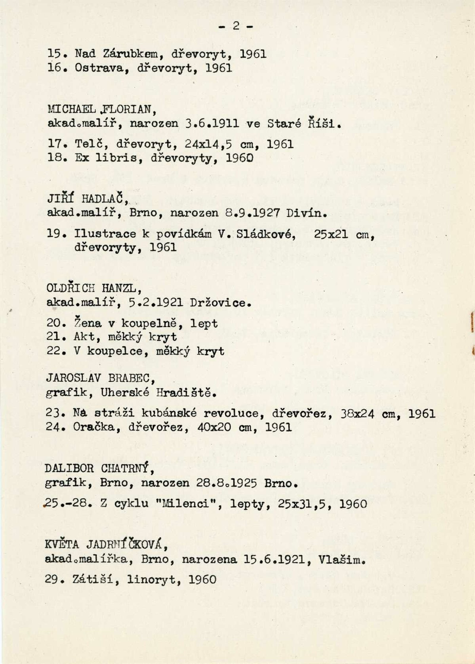 Výstava moravské grafiky: Dům umění města Brna / Dům pánů z Kunštátu, 25. výstava Kabinetu grafiky, 3. 6. – 2. 7. 1961 / Brno: DUmB, 1961. – 6 s., DPK 113