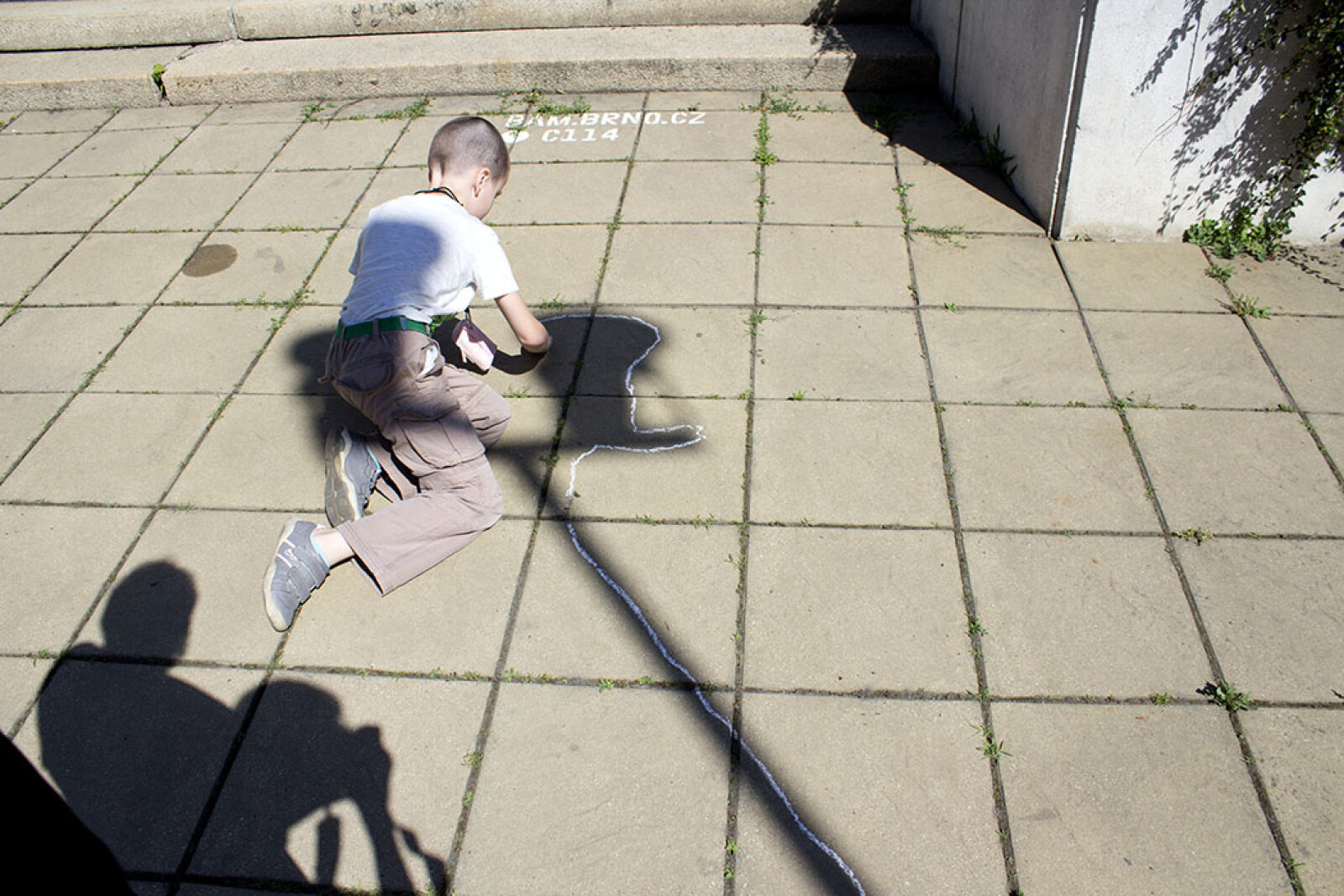 Základním tématem pro nás bude tentokrát POHYB a jeho vnímání jako samostatné estetické struktury. Pokusíme se intenzivně prožívat mechanizovaný nebo naopak zcela živelný a spontánní pohyb, který zaznamenáme – ať už prostřednictvím fotoaparátu v mobilních telefonech nebo zcela klasickou technikou kresby, kterou ale použijeme netradičním způsobem. Inspirovat nás bude nejen samotná výstava, ale například staré taneční notace. Budeme se zabývat mikropohybem částic hmoty nebo makropohybem planet a vesmíru, ale také nejsnáze zaznamenatelným pohybem kolem nás, v našem každodenním měřítku, kterému ale obvykle nevěnujeme pozornost. Vyzkoušíme si tanec s větrem nebo stalking kolemjdoucích, ať už lidí, psů nebo mravenců.