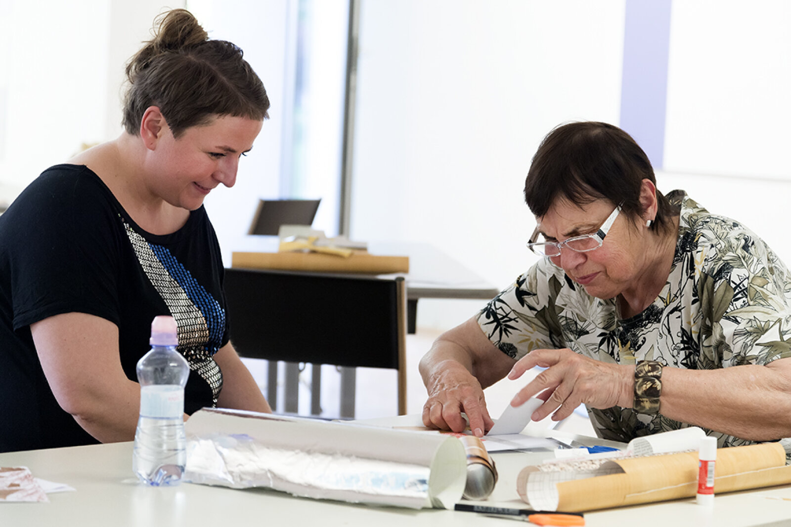 Setkání ve výstavě Erika Sikory s kurátorkou Martou Fišerovou.