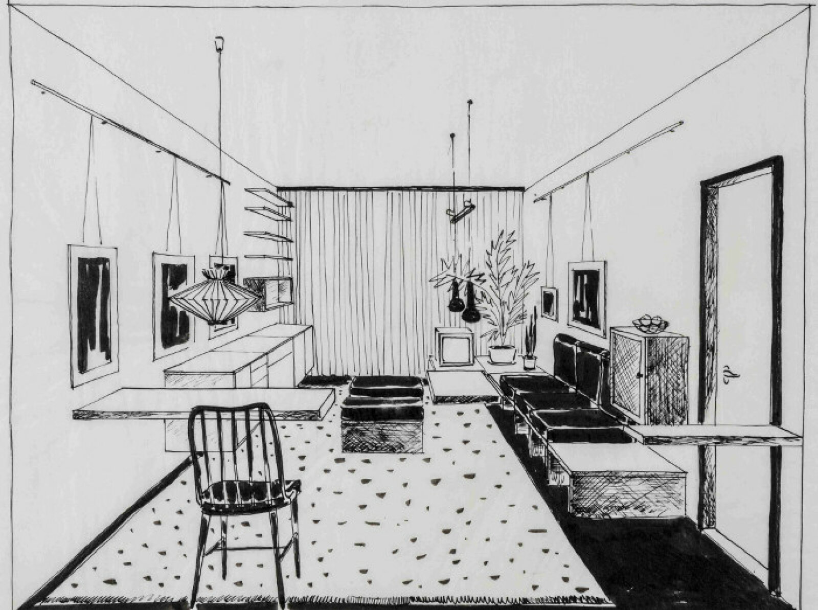 Za mimořádný a experimentální je považován kovový nábytek originální konstrukce inspirovaný tvaroslovím funkcionalismu, s kostrou z ocelové trubky ohýbané ve tvaru písmene „U“; upravená varianta křesla byla později vybrána do interiéru Paláce kultury v Praze (1977–1979).