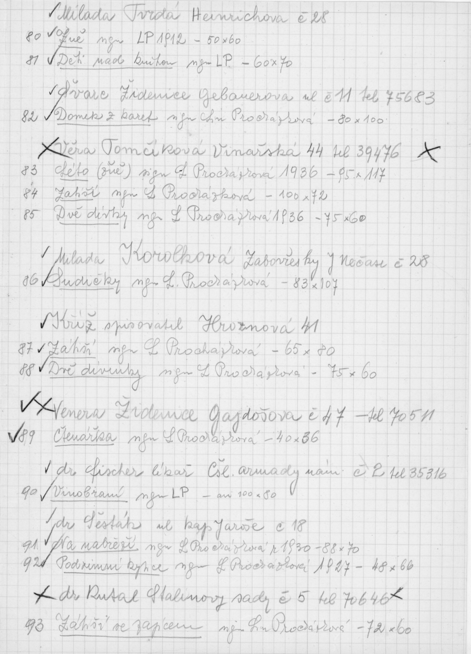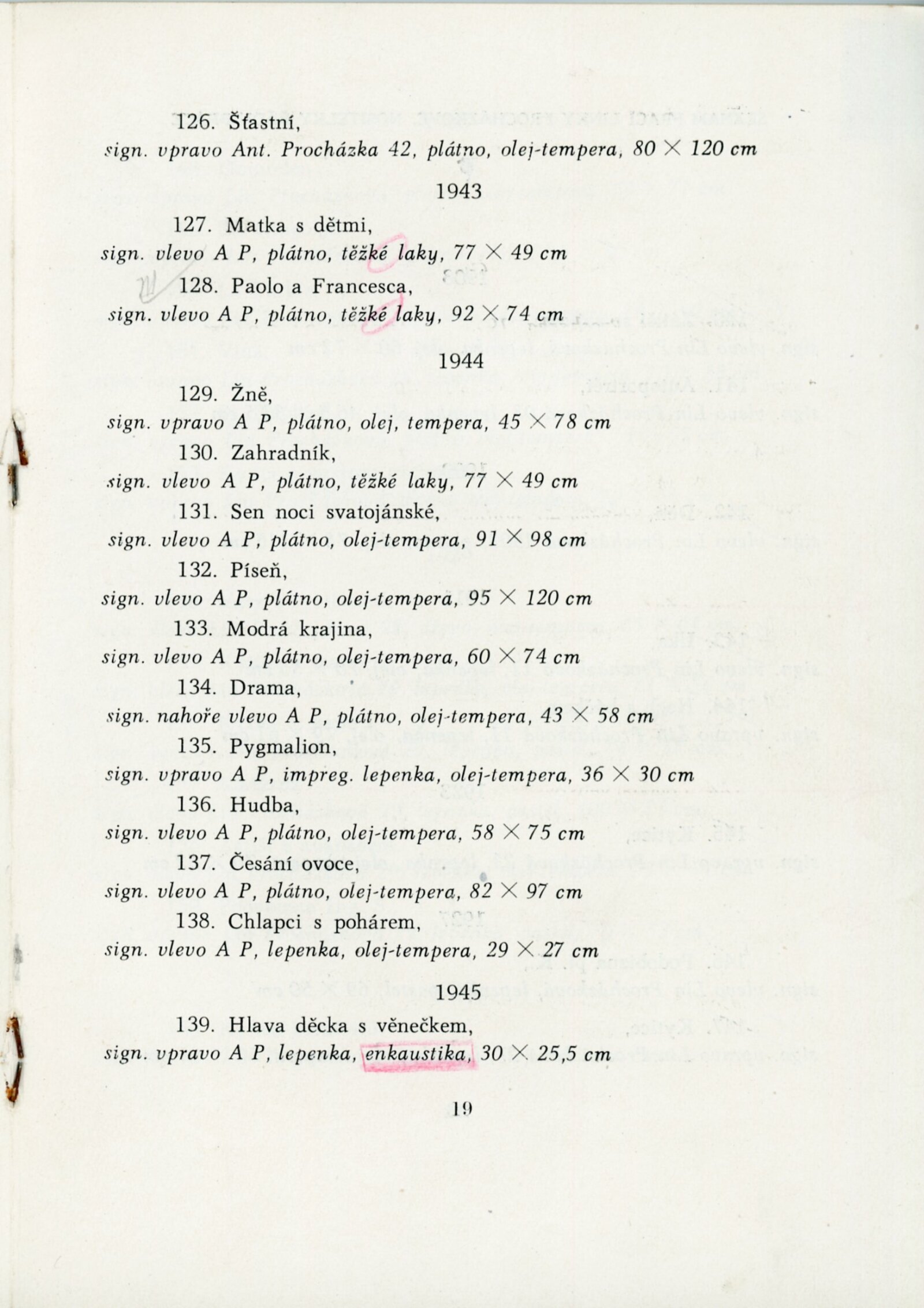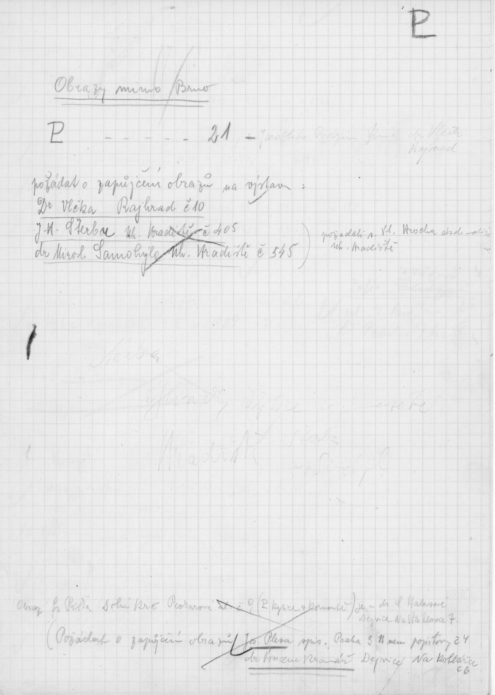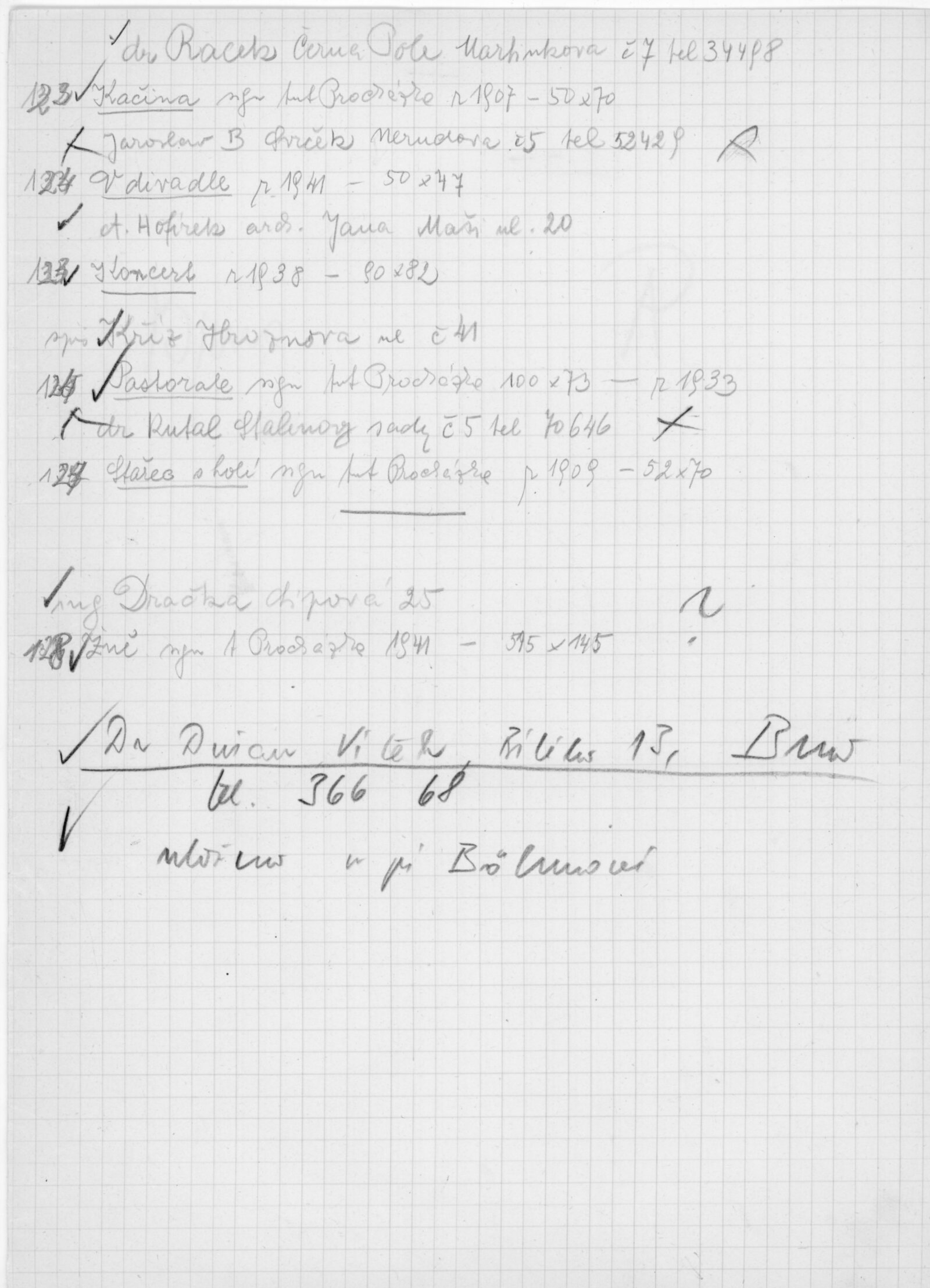 pozvánka DU, katalog, zvací letáky, seznamy obrazů, adresy majitelů, korespondence (o zapůjčení v DU, o repríze v Praze s majiteli a SČVU, provozní korespondence, dopis J. V. Plevy, J. Glivického, telegramy), potvrzení o převzetí a vracení děl, reverzy, objednávka opravy obrazů u restaurátorky, objednávky katalogů a plakátů, recenze v tisku, pozvánka na výstavu (Praha, Slovanský ostrov)