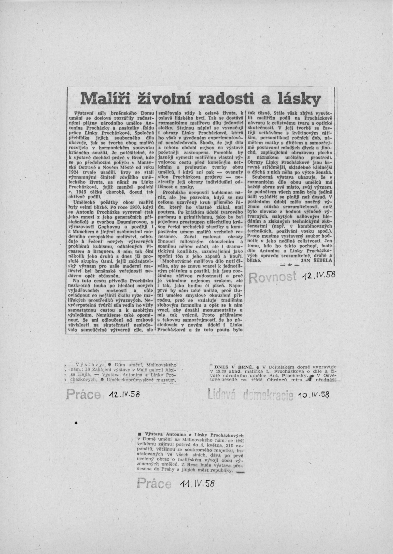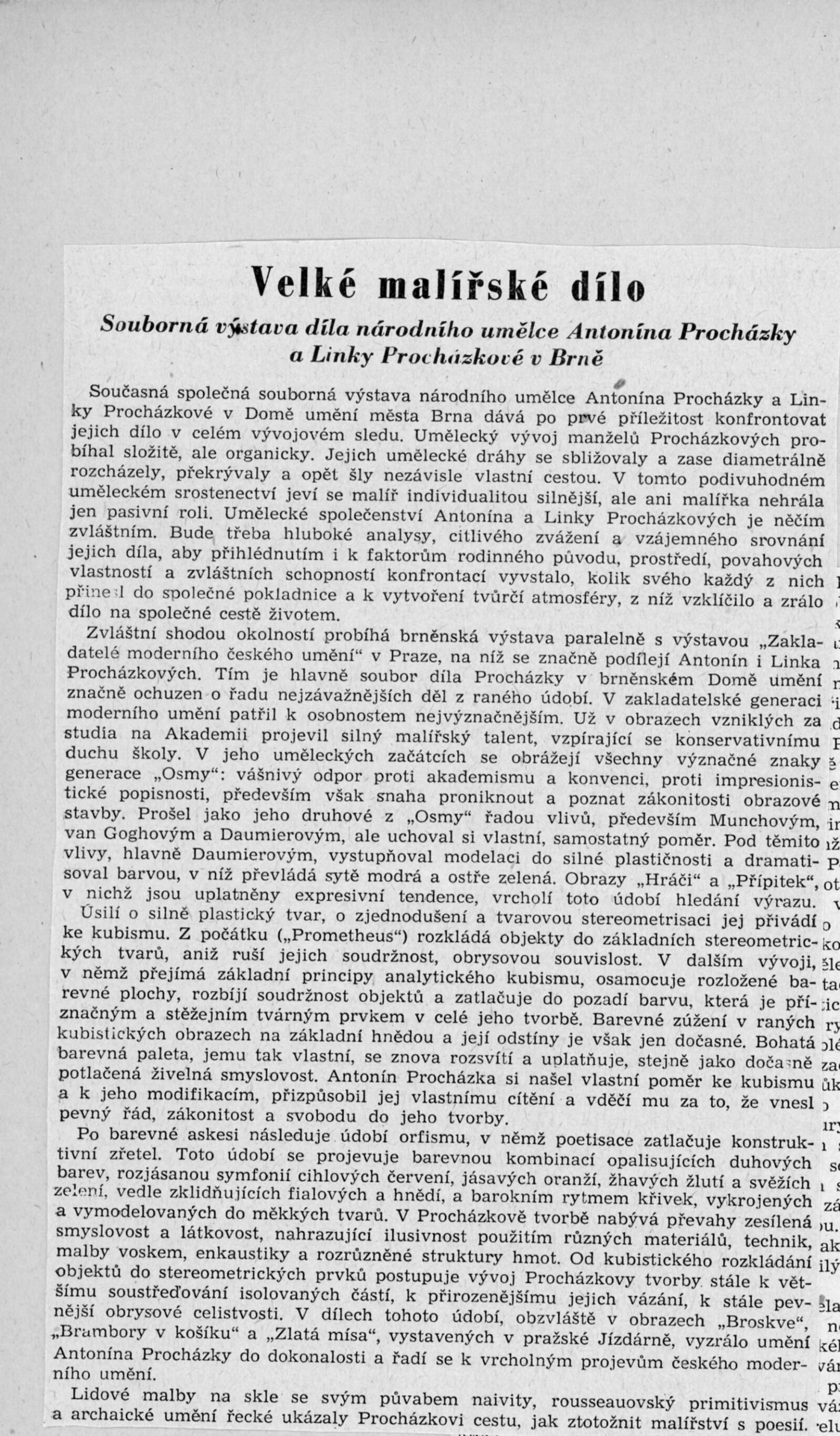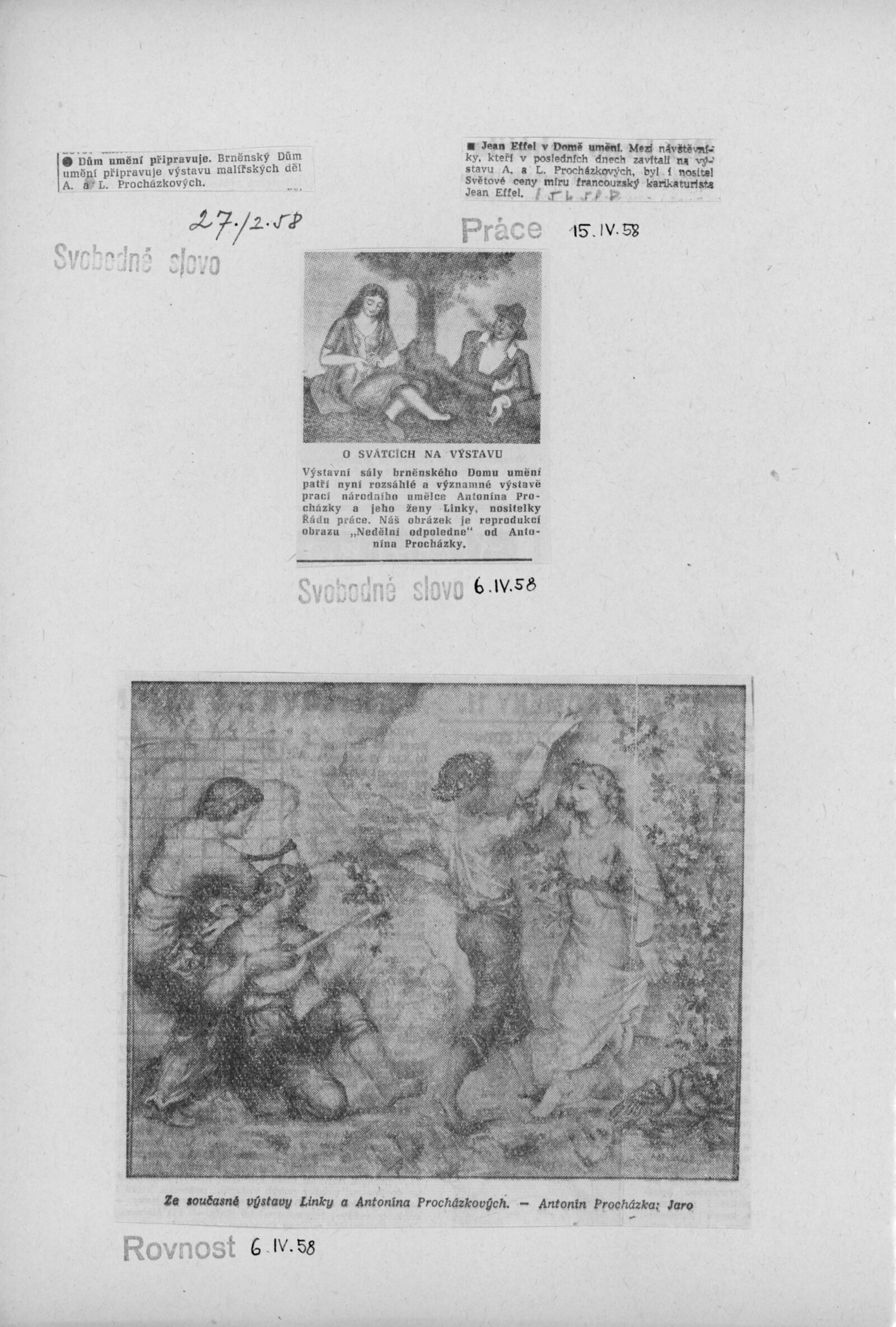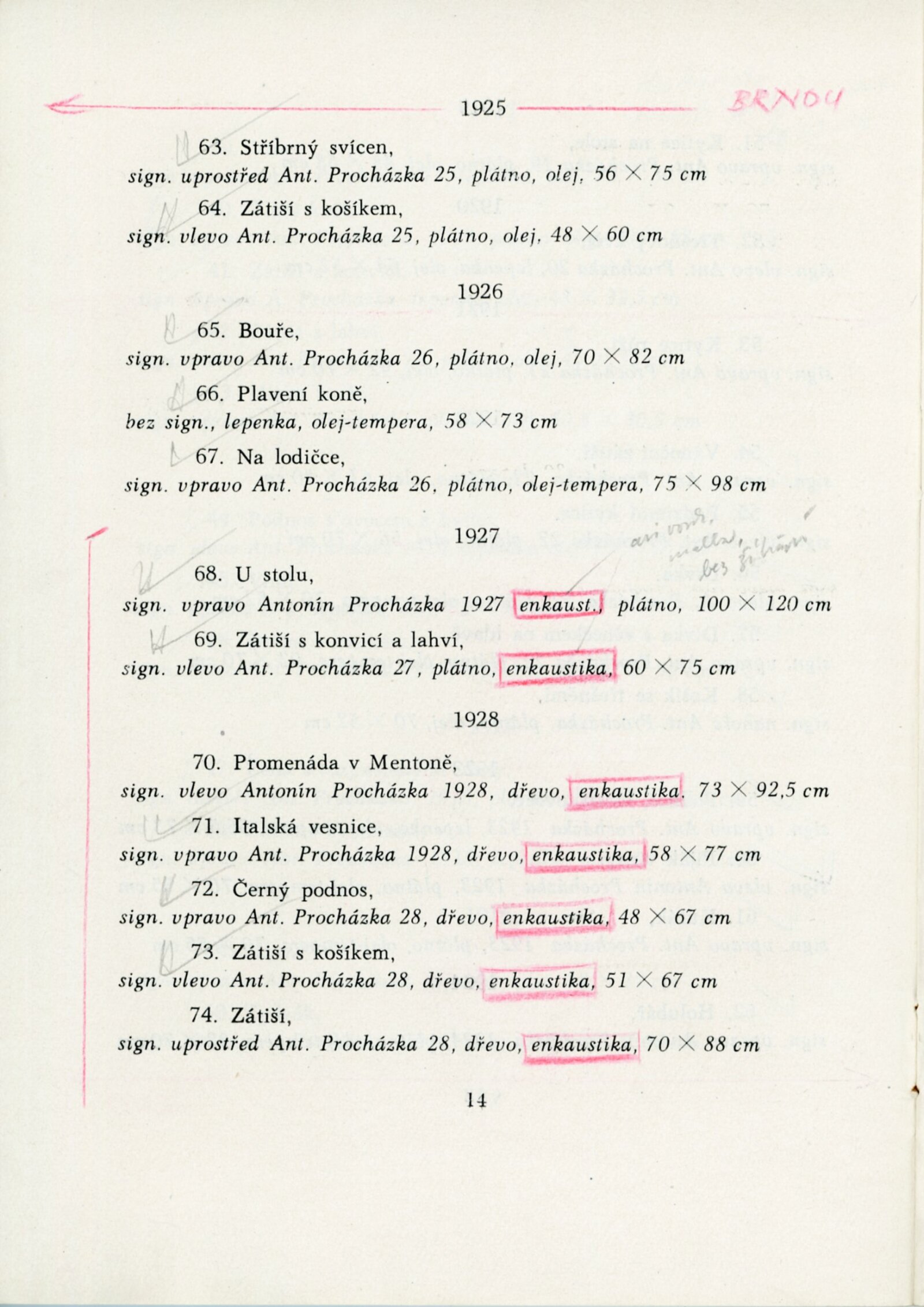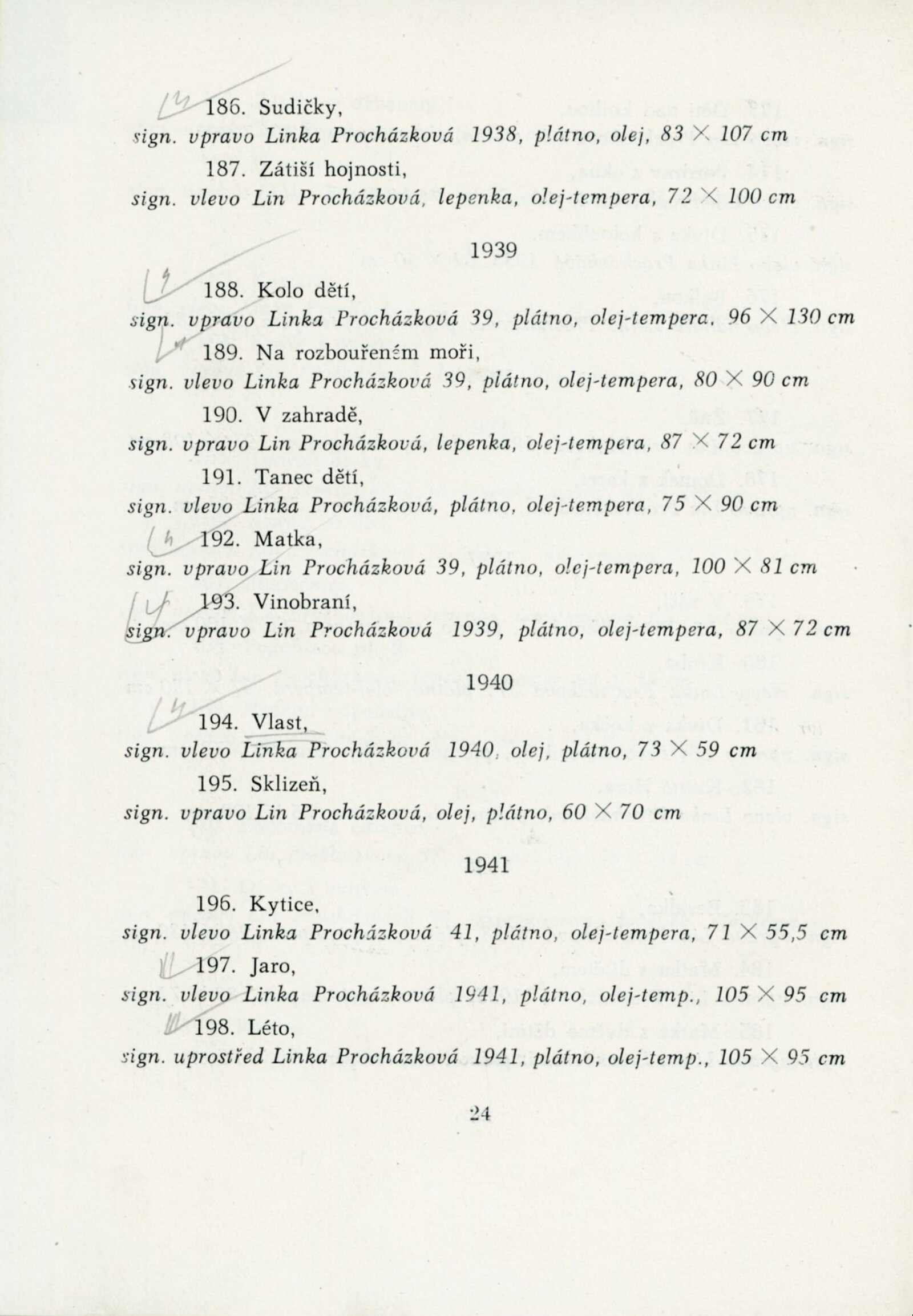 Výstava národního umělce Antonína Procházky, Linky Procházkové, nositelky Řádu práce: Dům umění města Brna, 23. 3. – 4. 5. 1958 / Text: Albert Kutal. – Brno: DUmB, 1958. – 25 s., 10 s. obr. příl., DU 307. – Kubíček 7932; MZK; MG; MMB