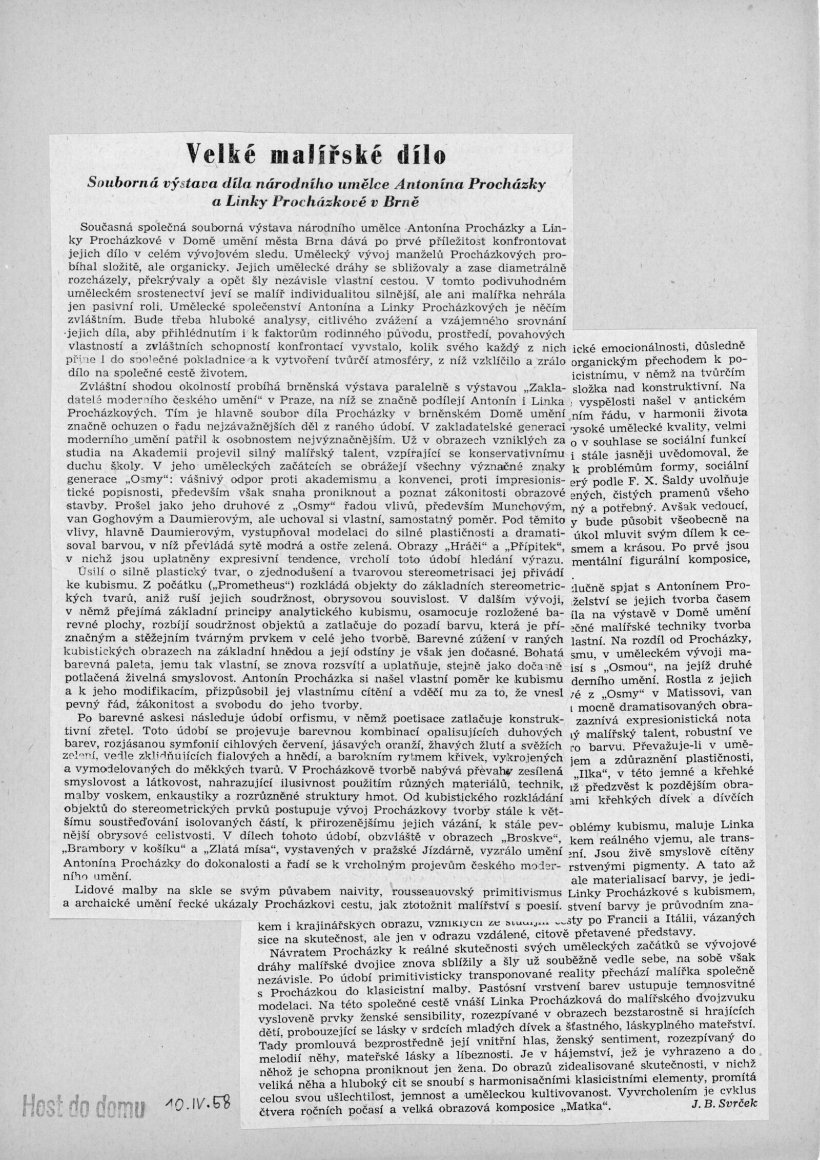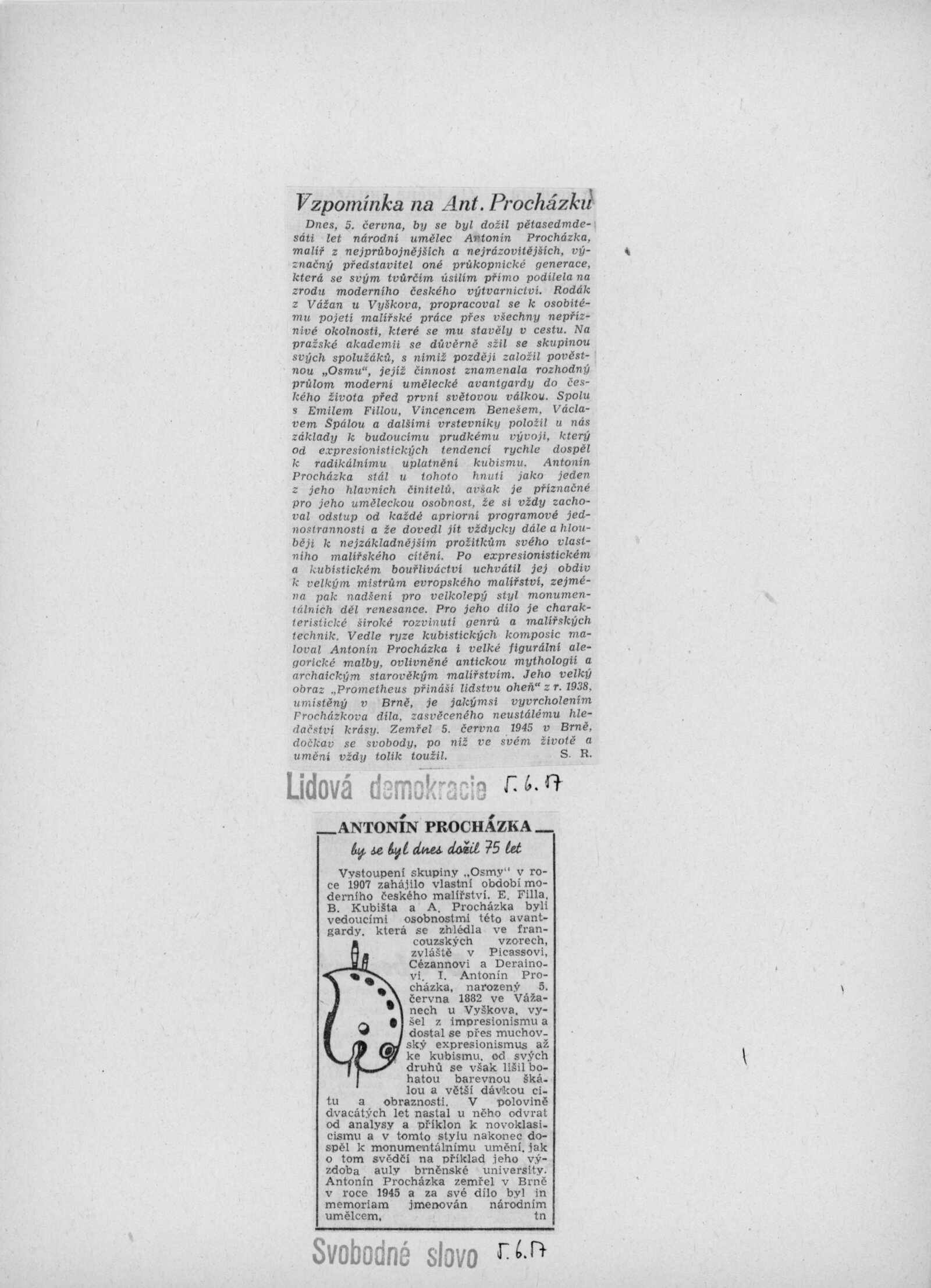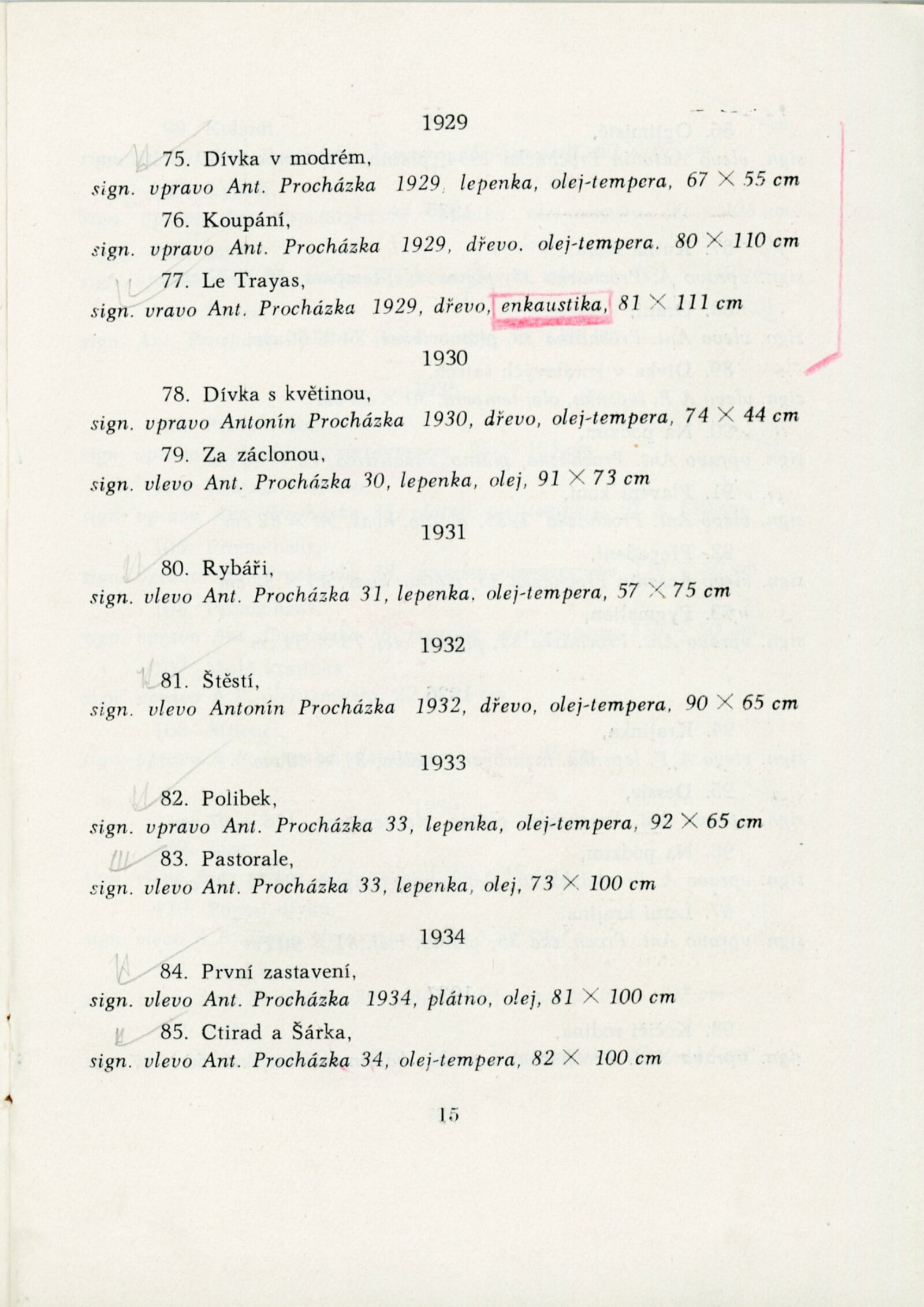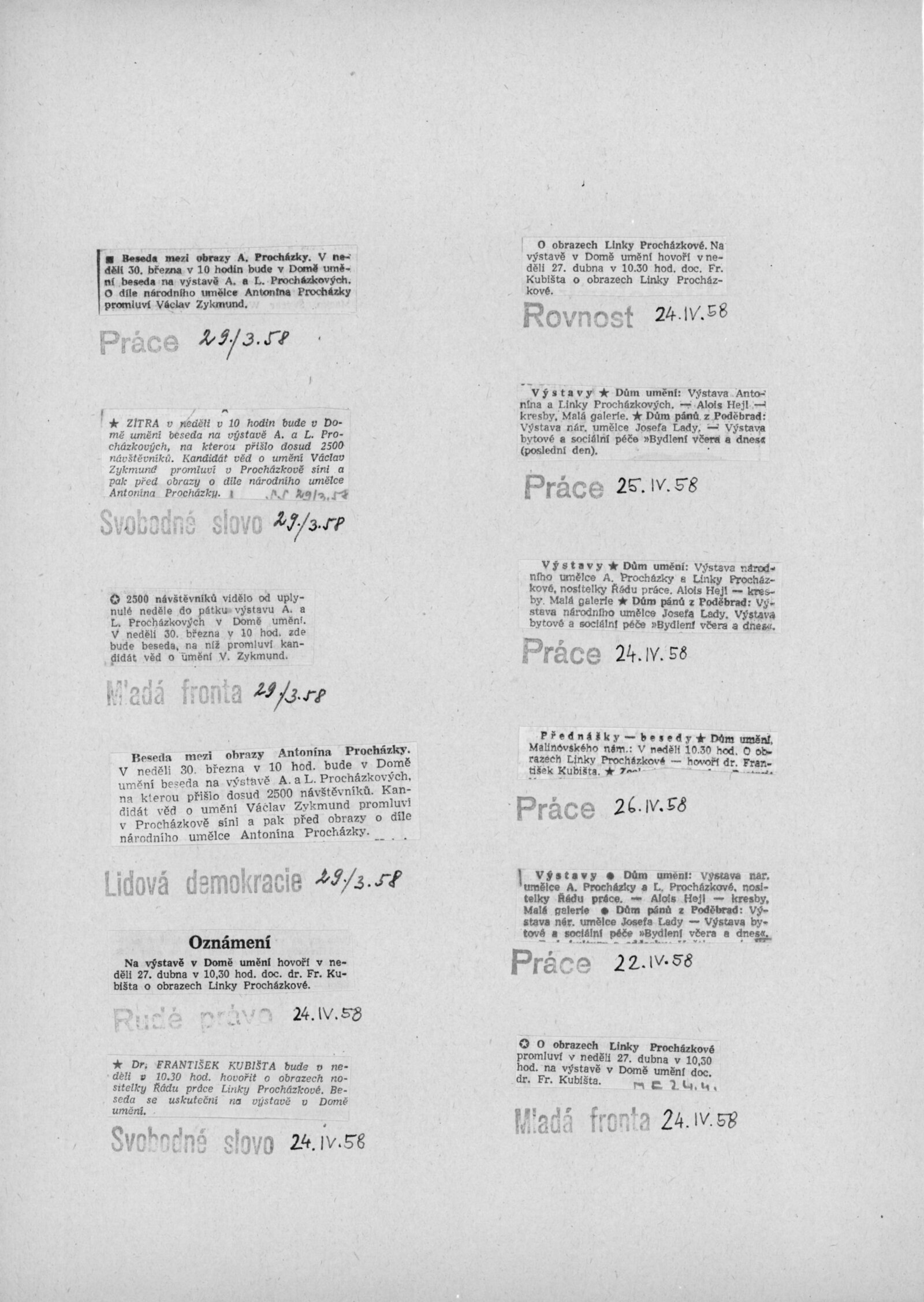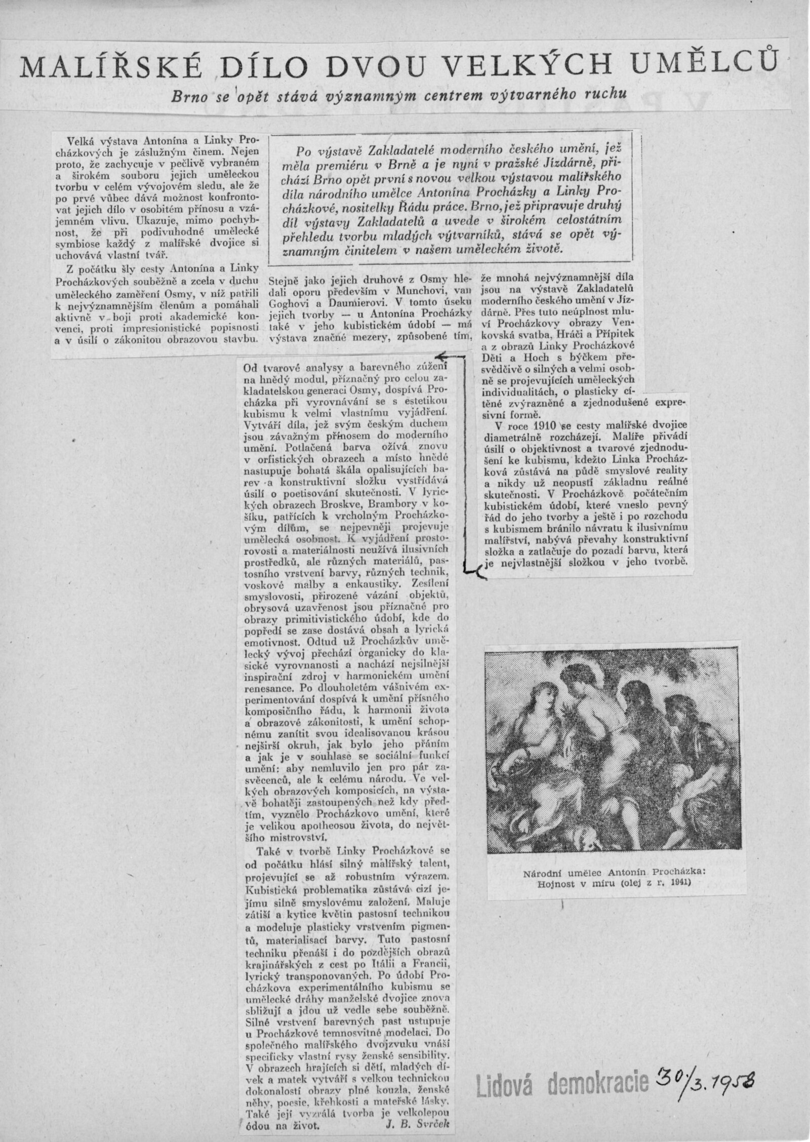 Výstava národního umělce Antonína Procházky, Linky Procházkové, nositelky Řádu práce: Dům umění města Brna, 23. 3. – 4. 5. 1958 / Text: Albert Kutal. – Brno: DUmB, 1958. – 25 s., 10 s. obr. příl., DU 307. – Kubíček 7932; MZK; MG; MMB