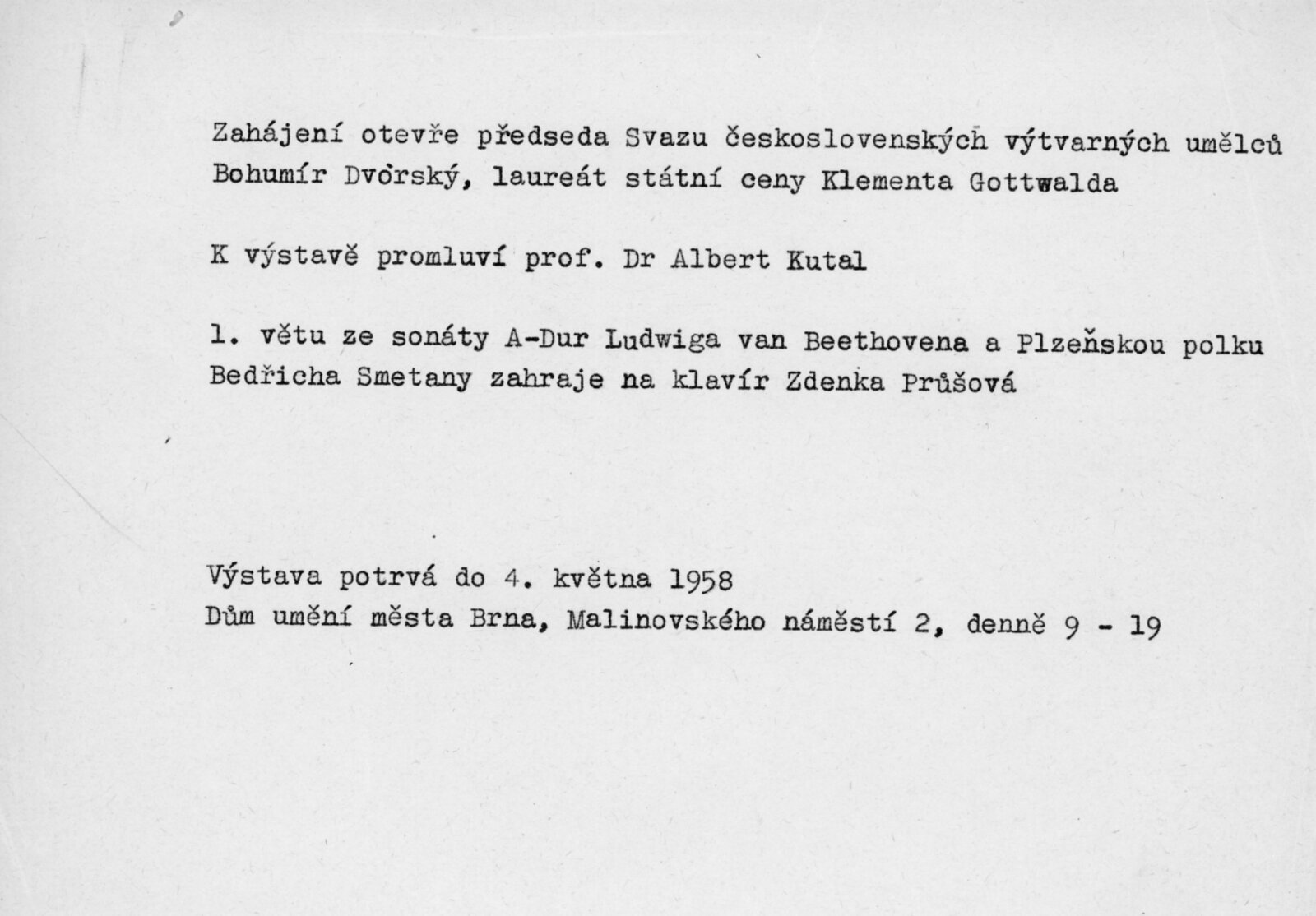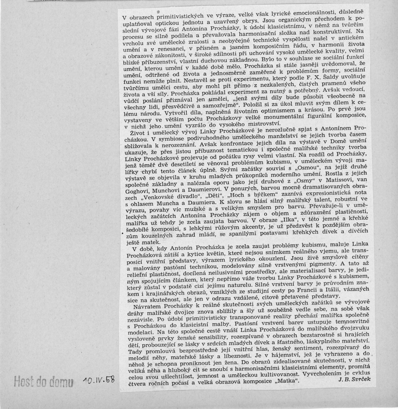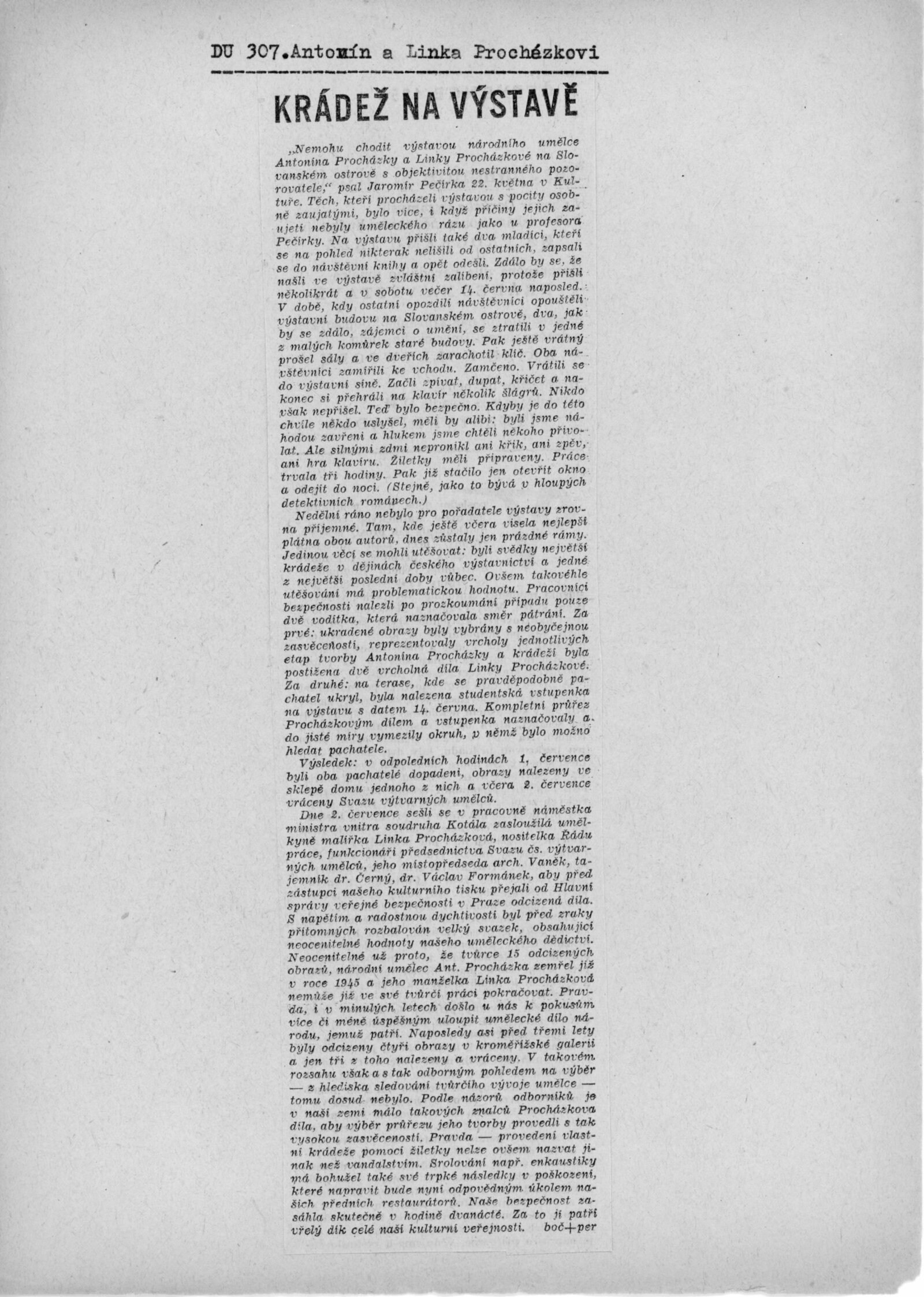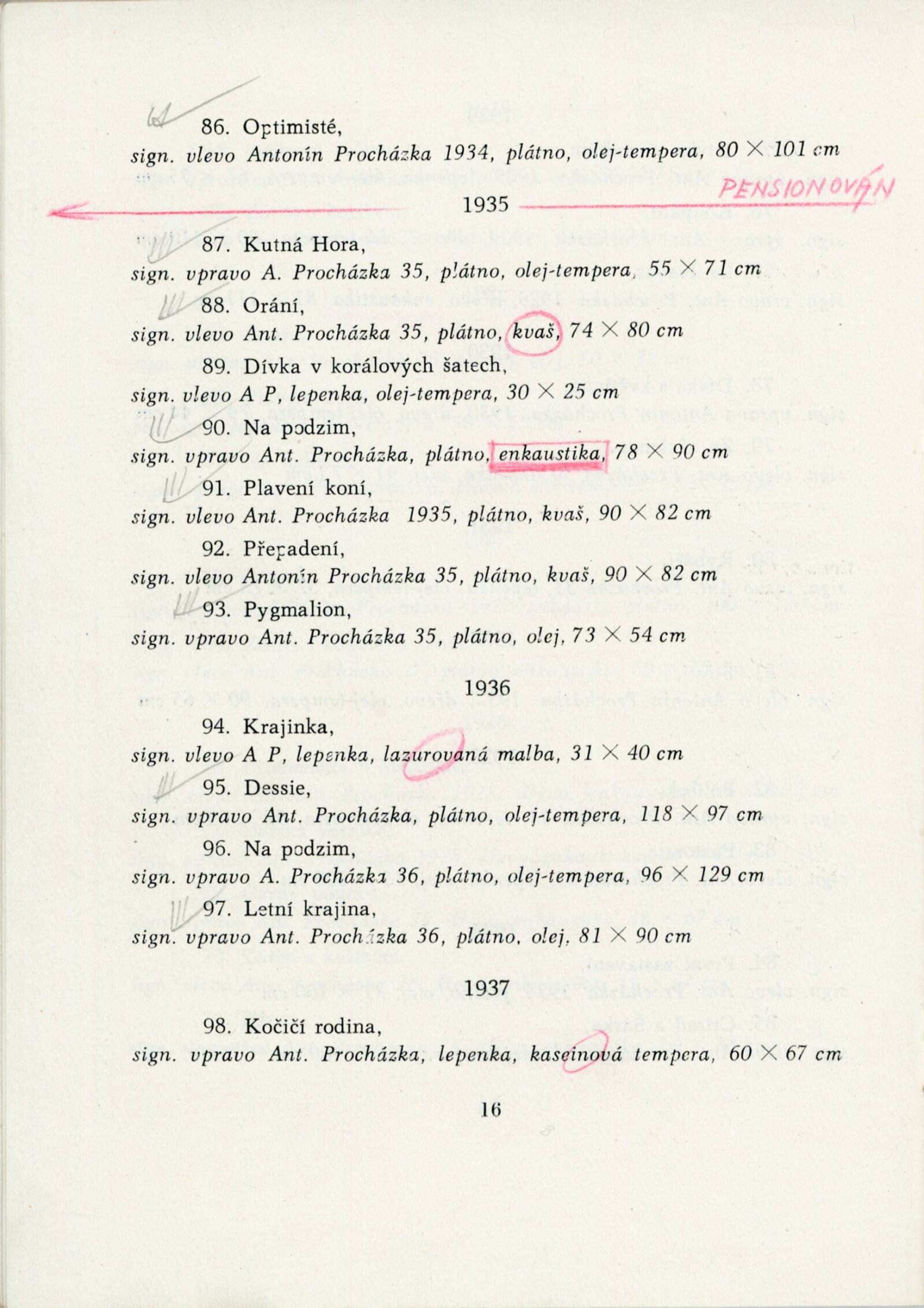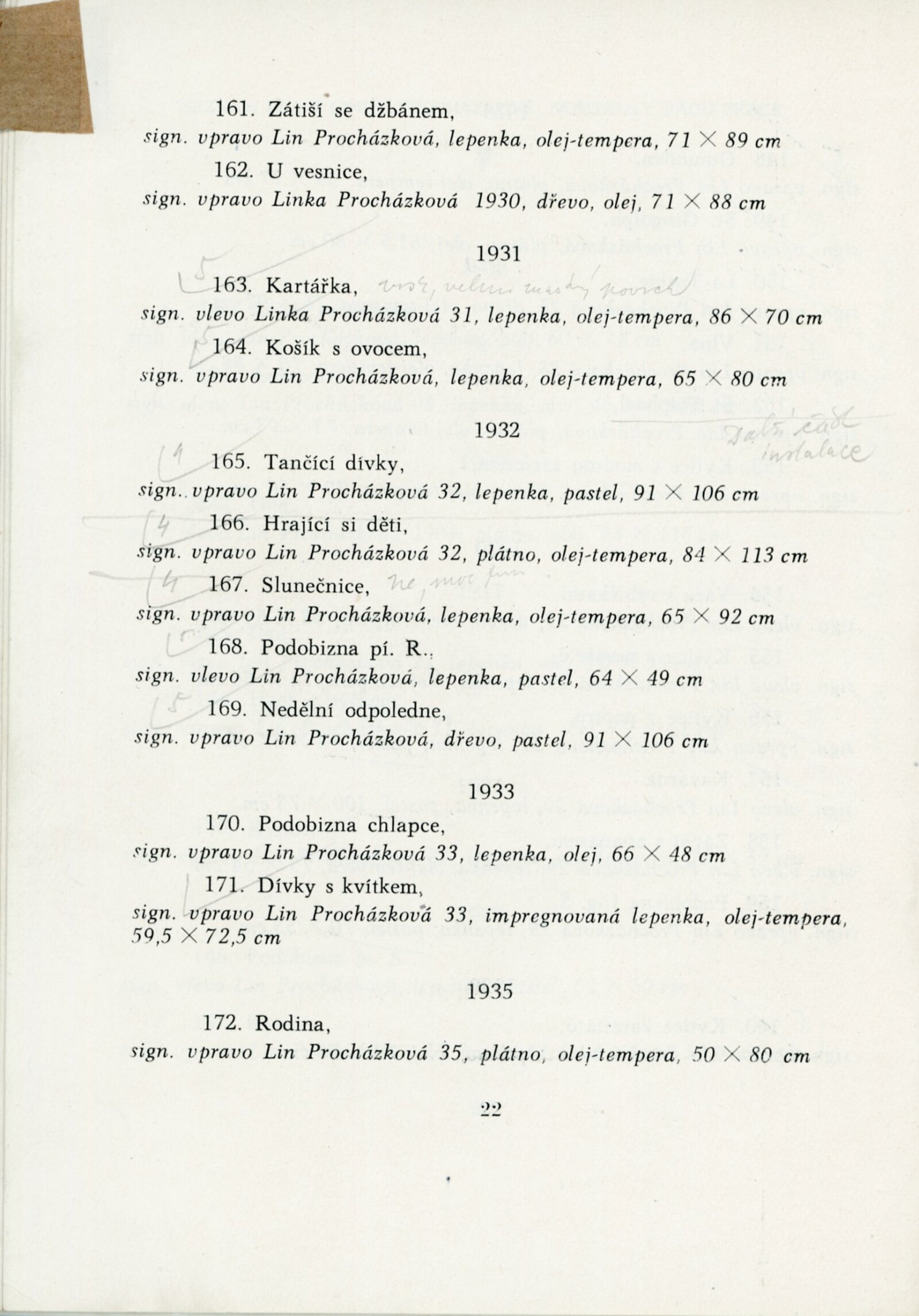 Výstava národního umělce Antonína Procházky, Linky Procházkové, nositelky Řádu práce: Dům umění města Brna, 23. 3. – 4. 5. 1958 / Text: Albert Kutal. – Brno: DUmB, 1958. – 25 s., 10 s. obr. příl., DU 307. – Kubíček 7932; MZK; MG; MMB